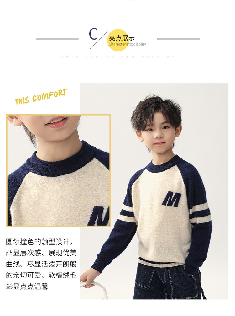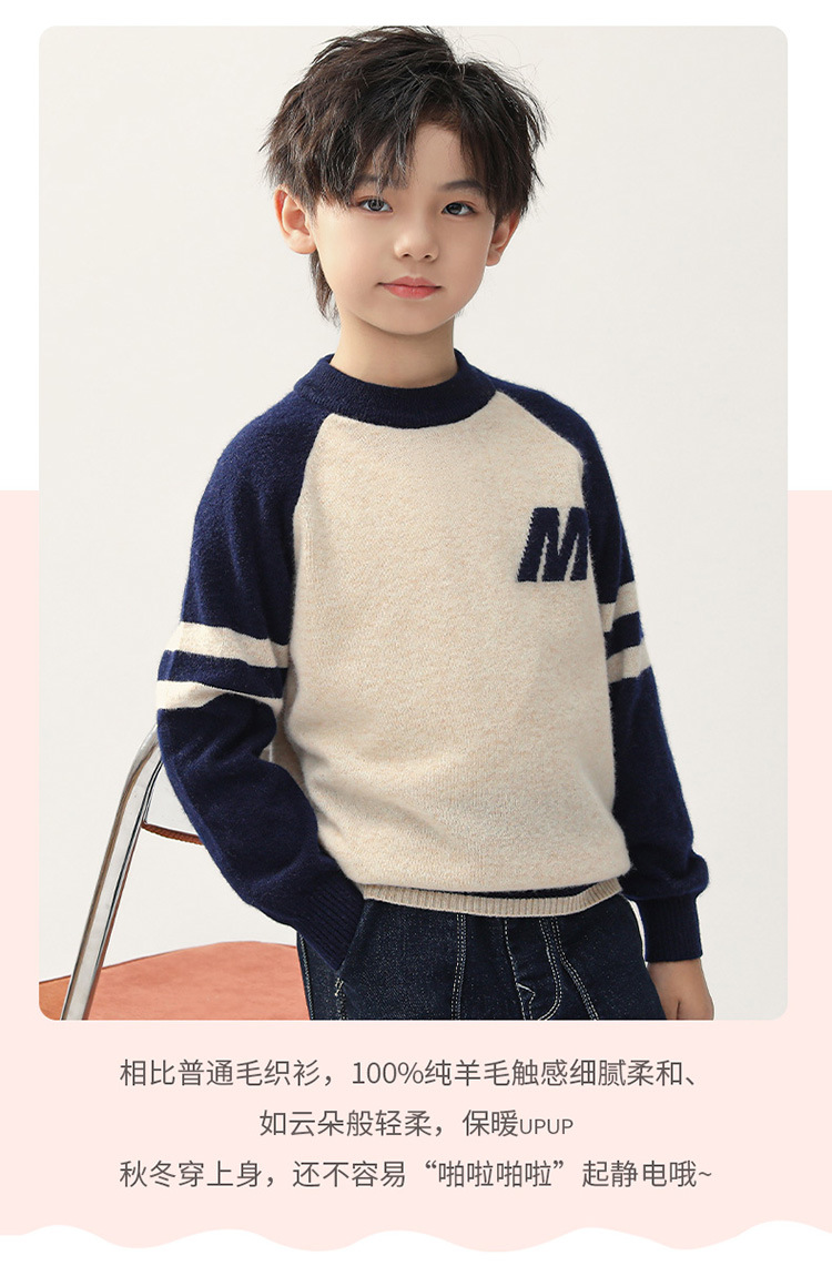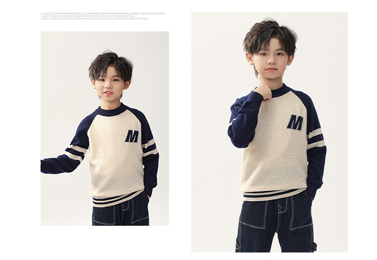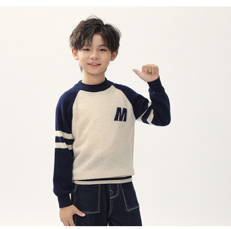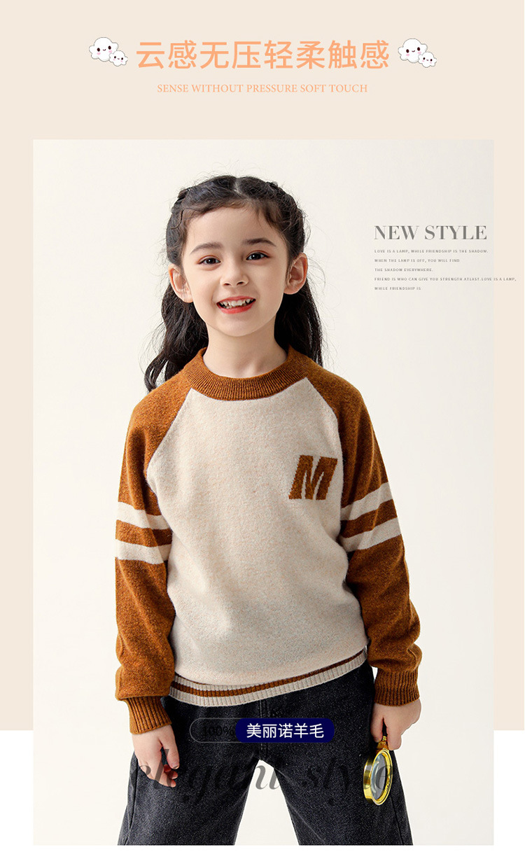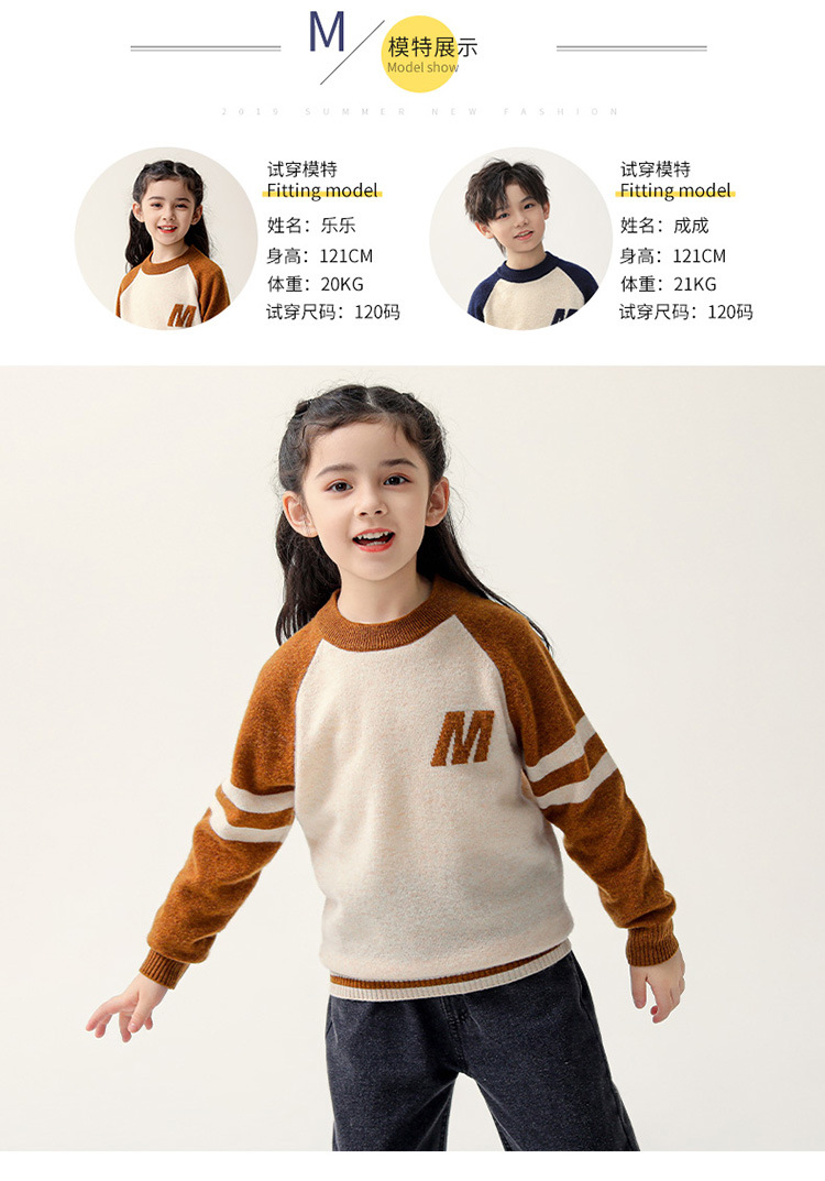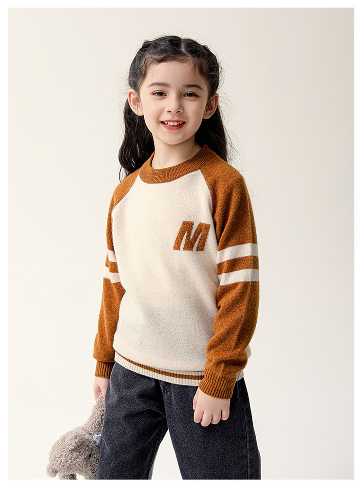 가을과 겨울을위한 새로운 싱글 스트랜드 퓨어 울 크루 넥 니트 셔츠 24 컬러 매칭 편지 자수 백 셔츠 소년 소녀를위한 셔츠 스웨터스토어 가기