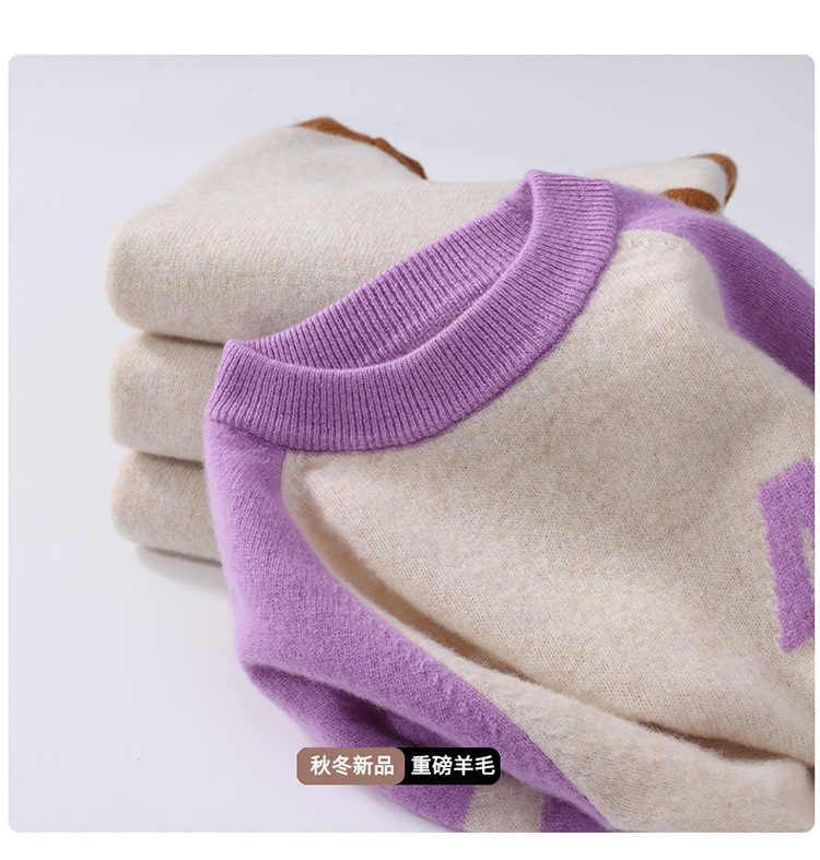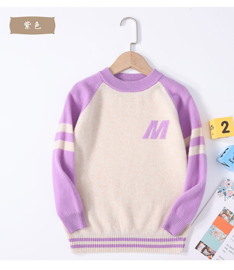 가을과 겨울을위한 새로운 싱글 스트랜드 퓨어 울 크루 넥 니트 셔츠 24 컬러 매칭 편지 자수 백 셔츠 소년 소녀를위한 셔츠 스웨터