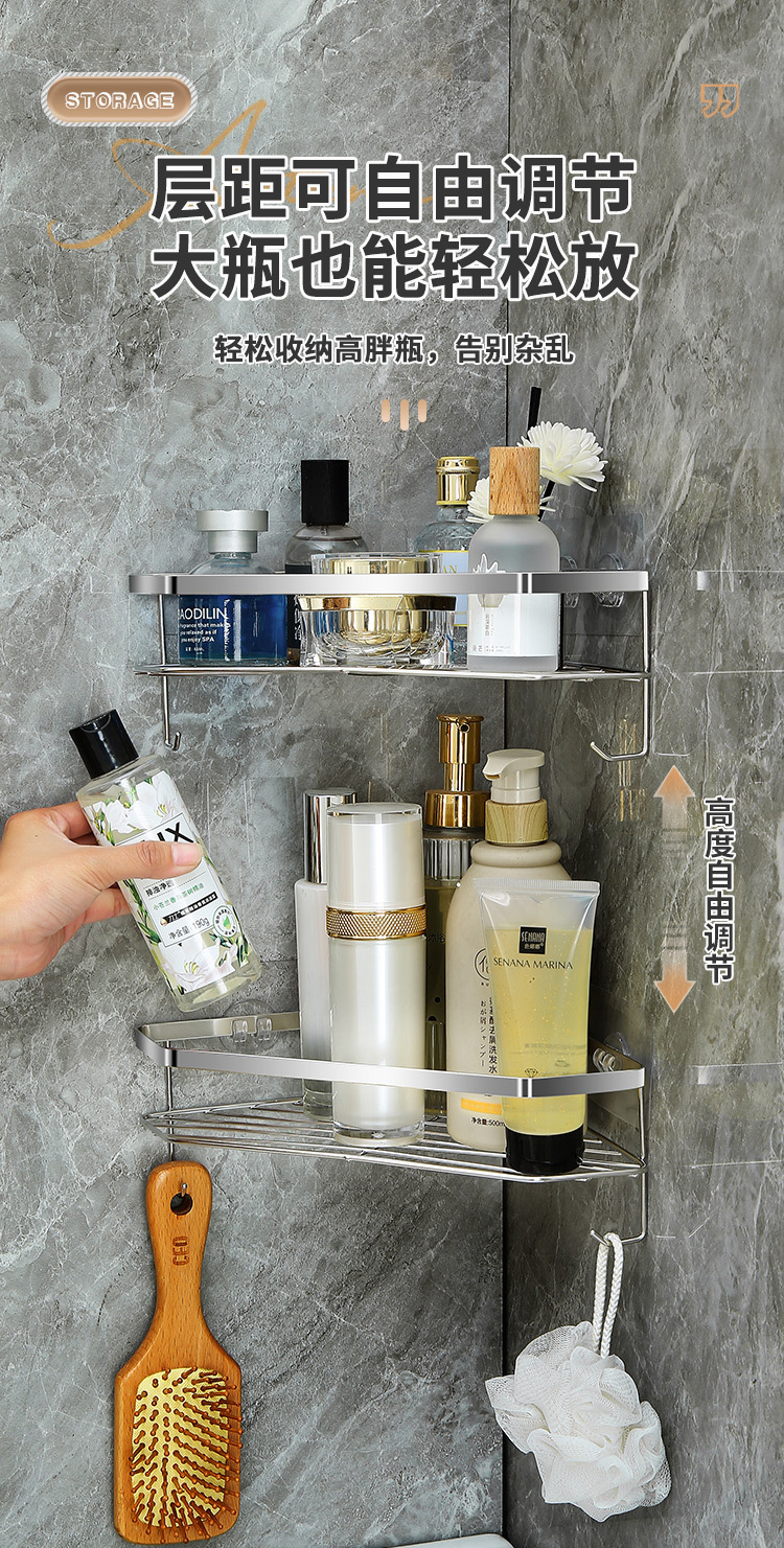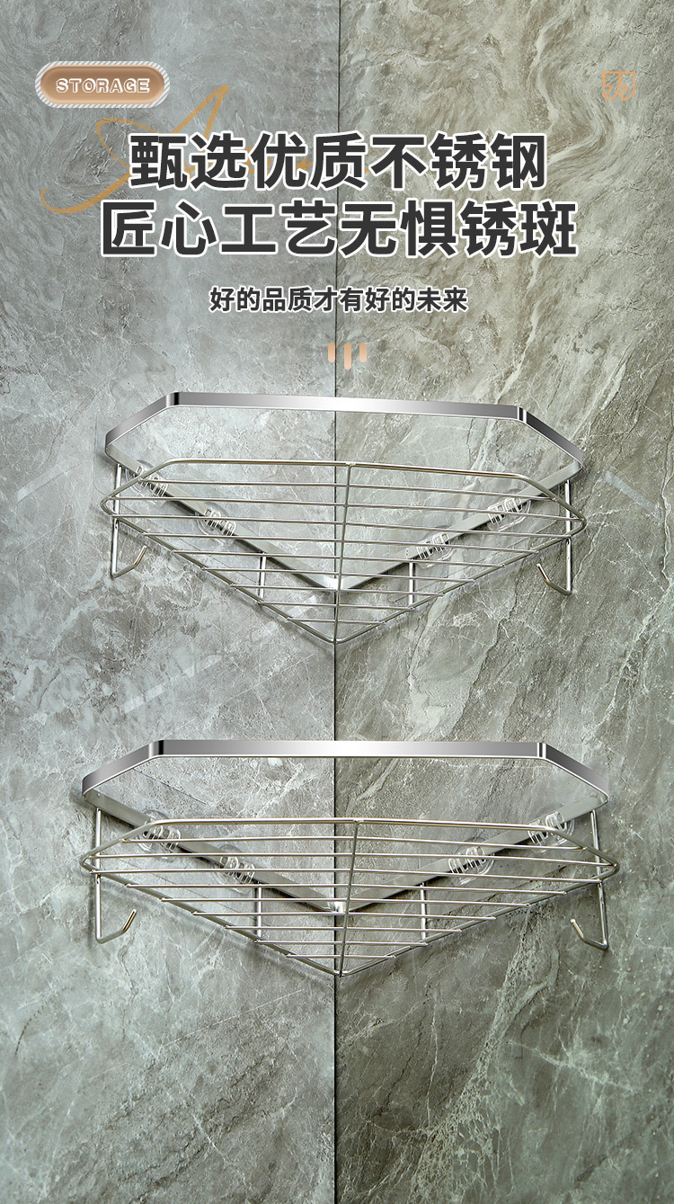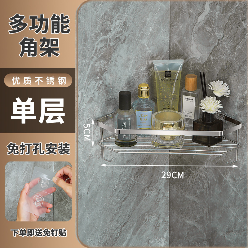 스테인리스 삼각형 수납 선반 욕실 무타공 수납 선반 화장실 벽걸이형 용품 정리 공간 절약스토어 가기