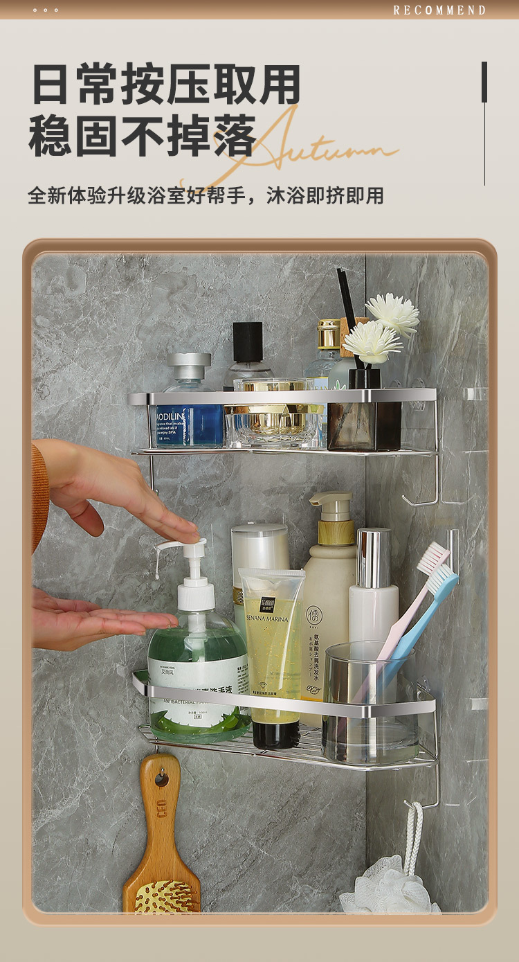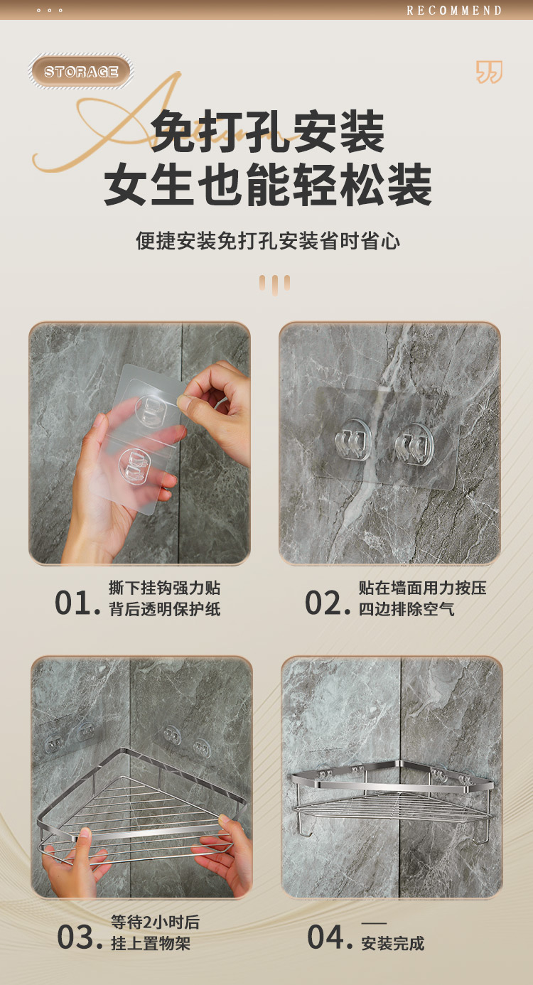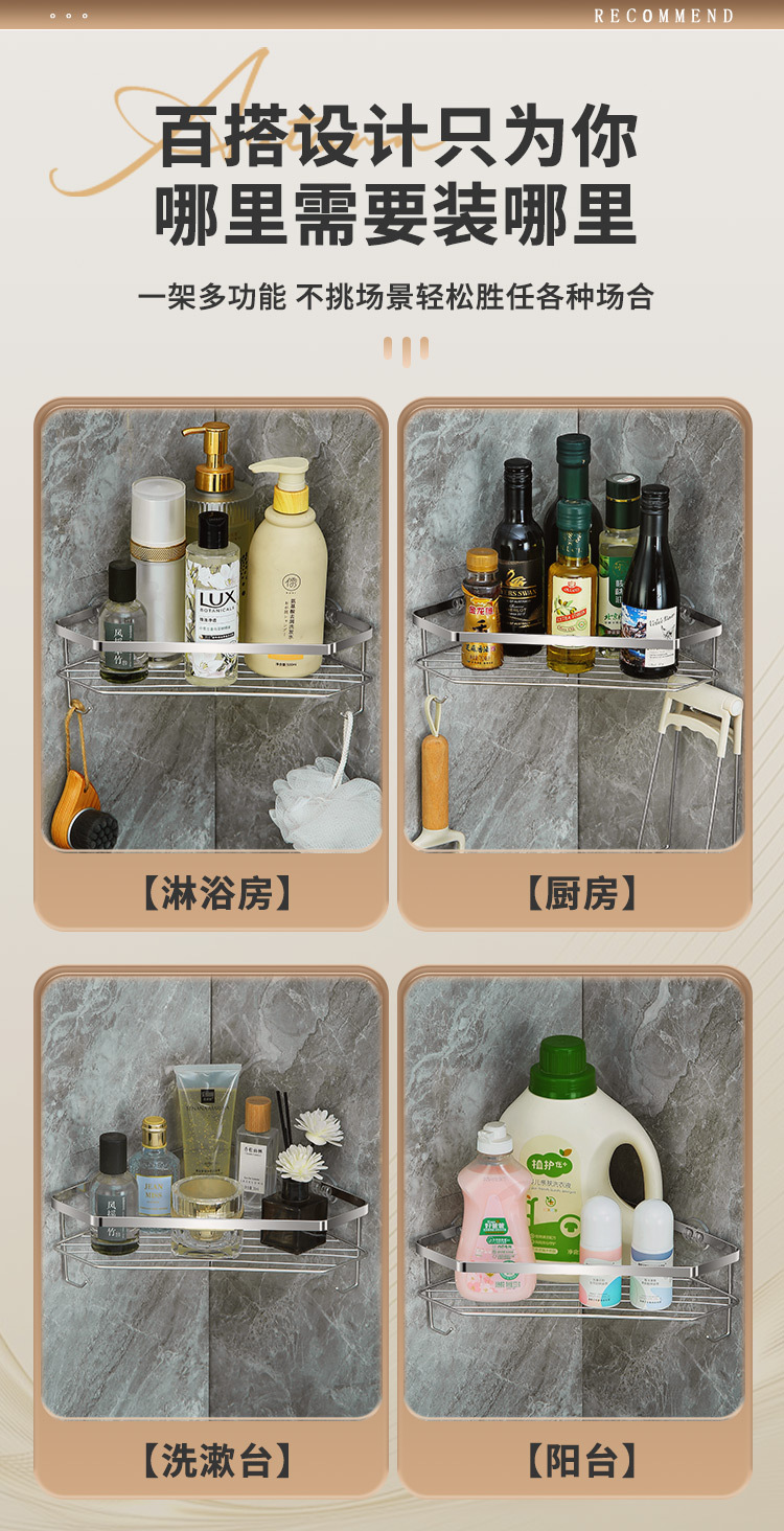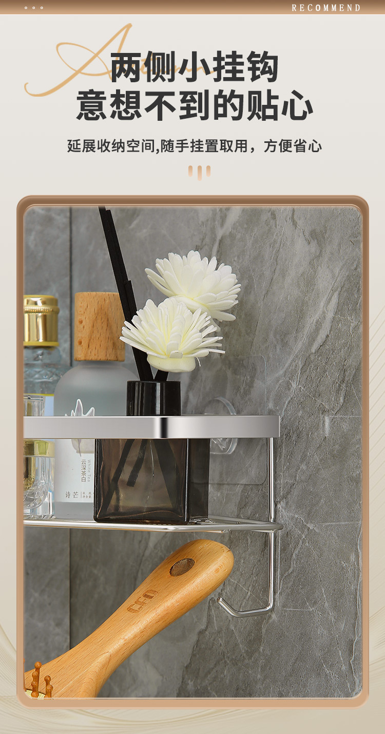 스테인리스 삼각형 수납 선반 욕실 무타공 수납 선반 화장실 벽걸이형 용품 정리 공간 절약