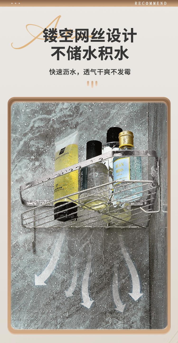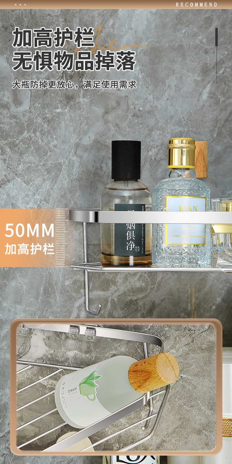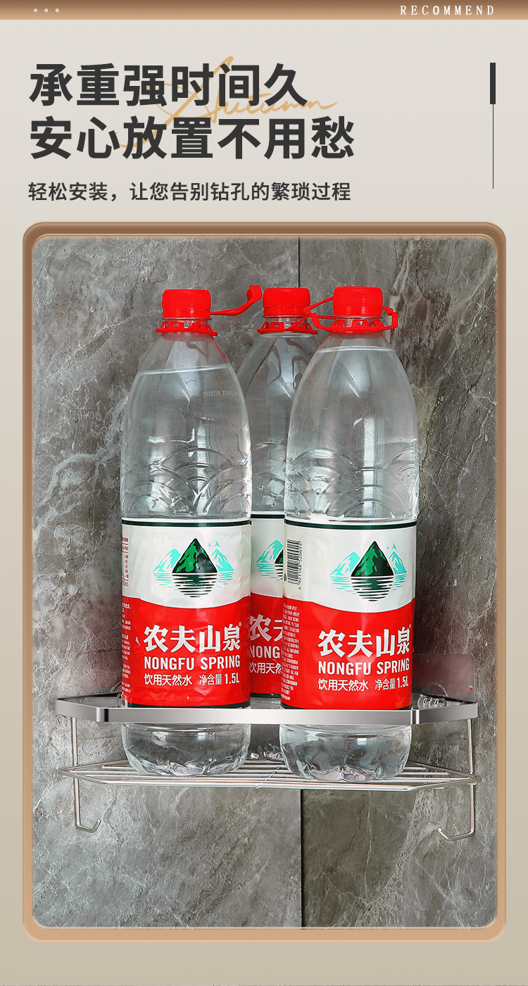 스테인리스 삼각형 수납 선반 욕실 무타공 수납 선반 화장실 벽걸이형 용품 정리 공간 절약