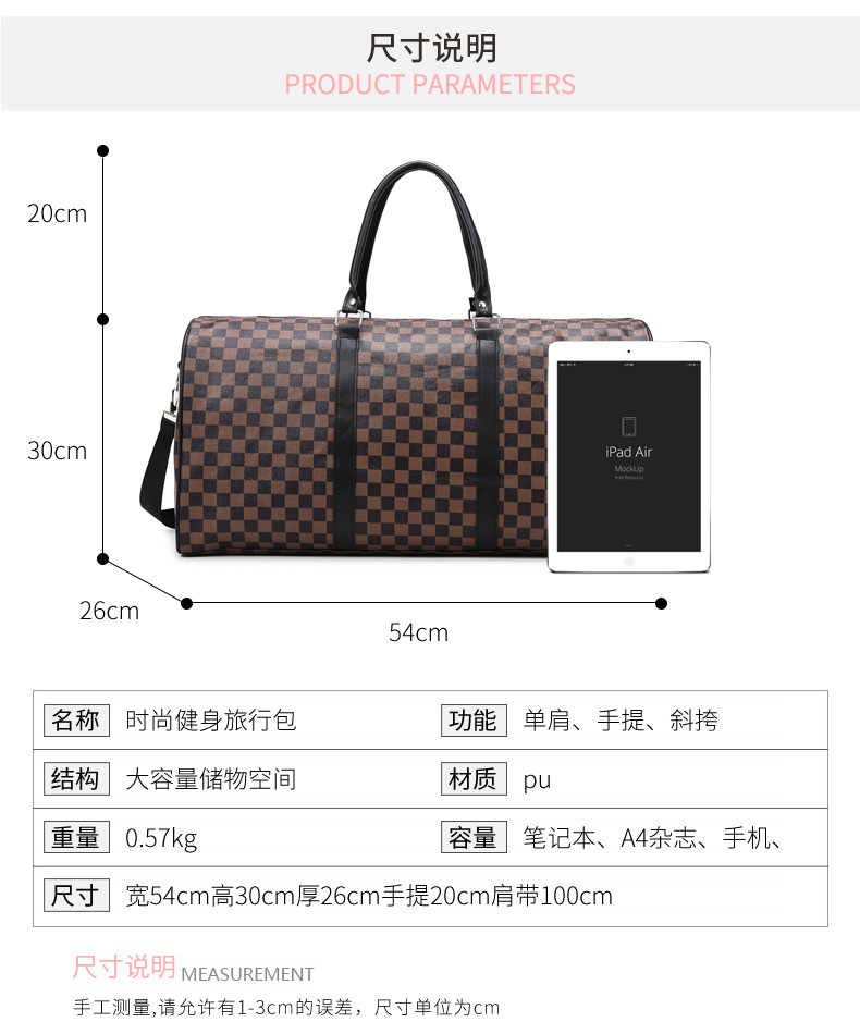 새로운 여행 가방 새로운 체스 판 격자 방수 대용량 여행 가방 보관 가방 수하물 가방 크로스 바디 핸드백