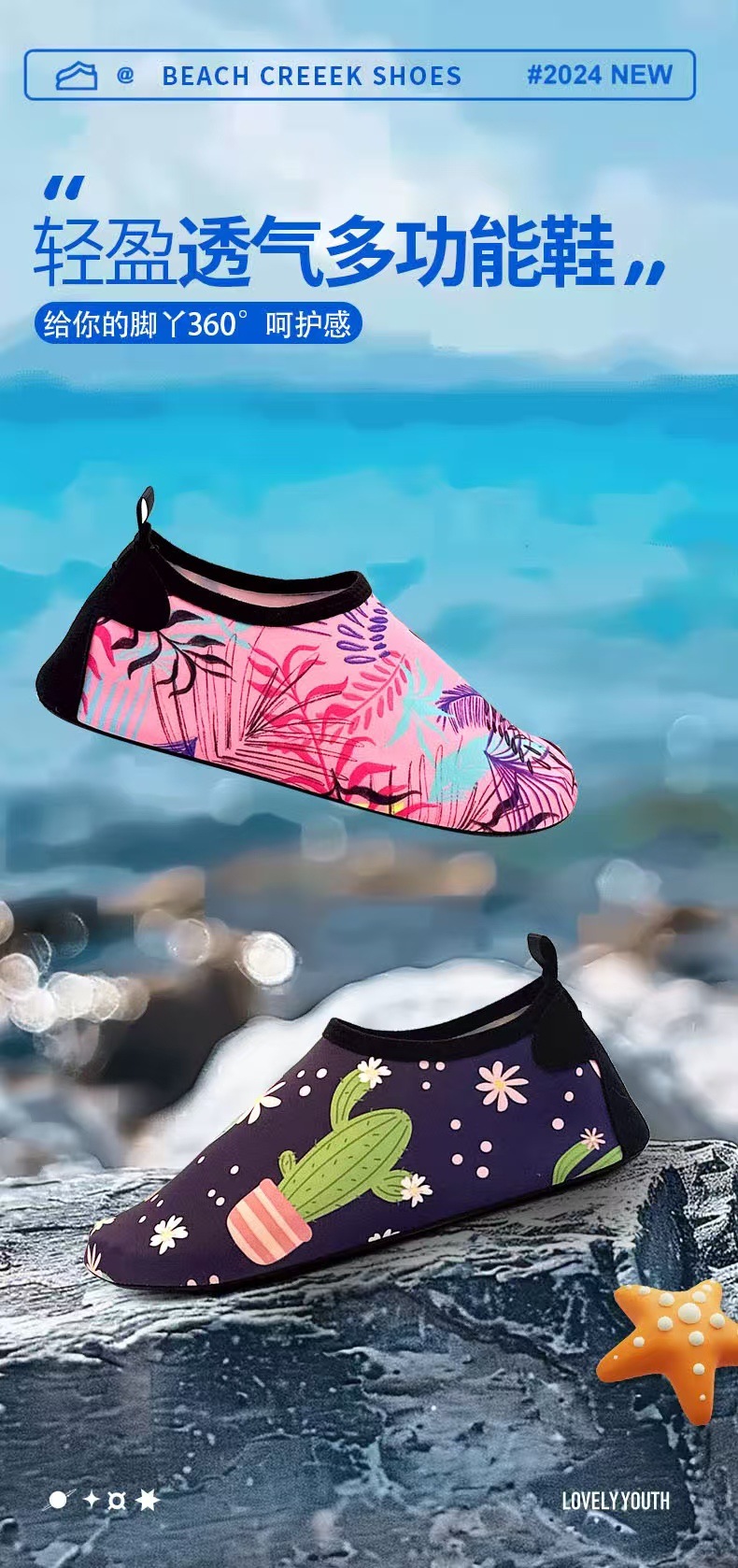국경 간 새로운 여성 비치 신발 미끄럼 방지 소프트 단독 야외 물놀이 신발 실내 피트니스 신발 바닥 양말 요가 신발스토어 가기