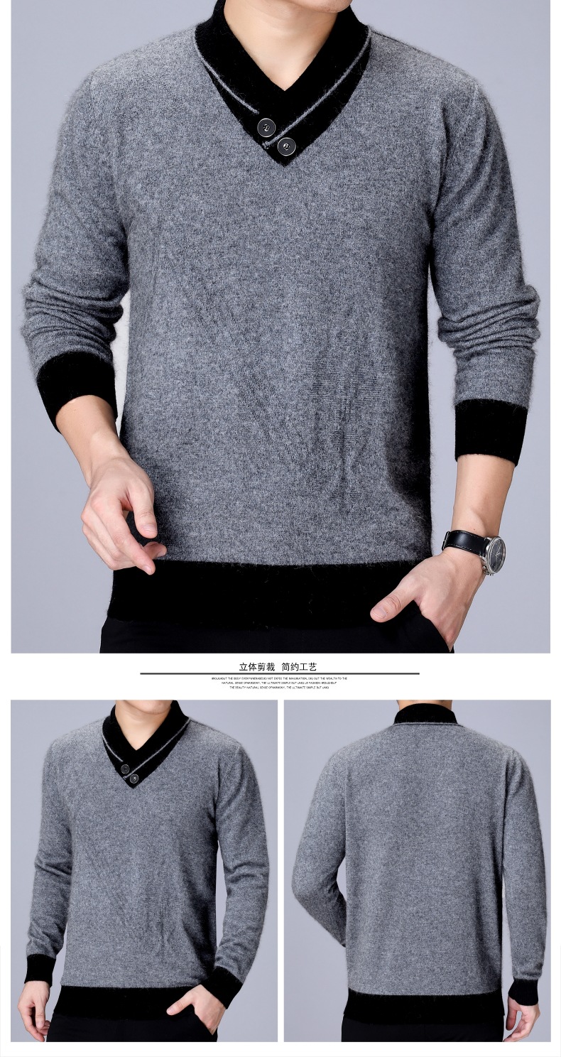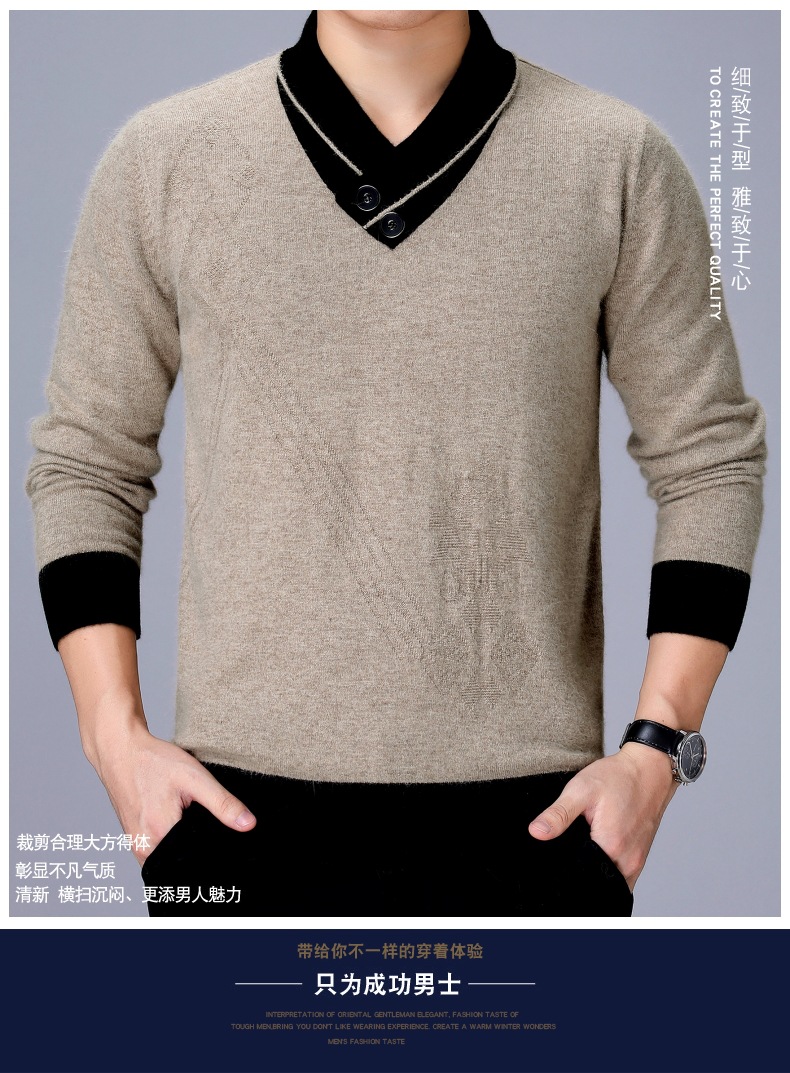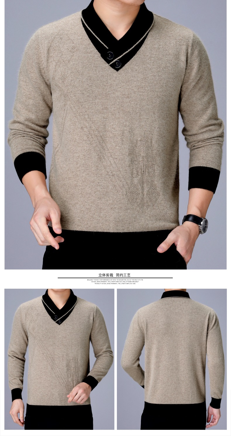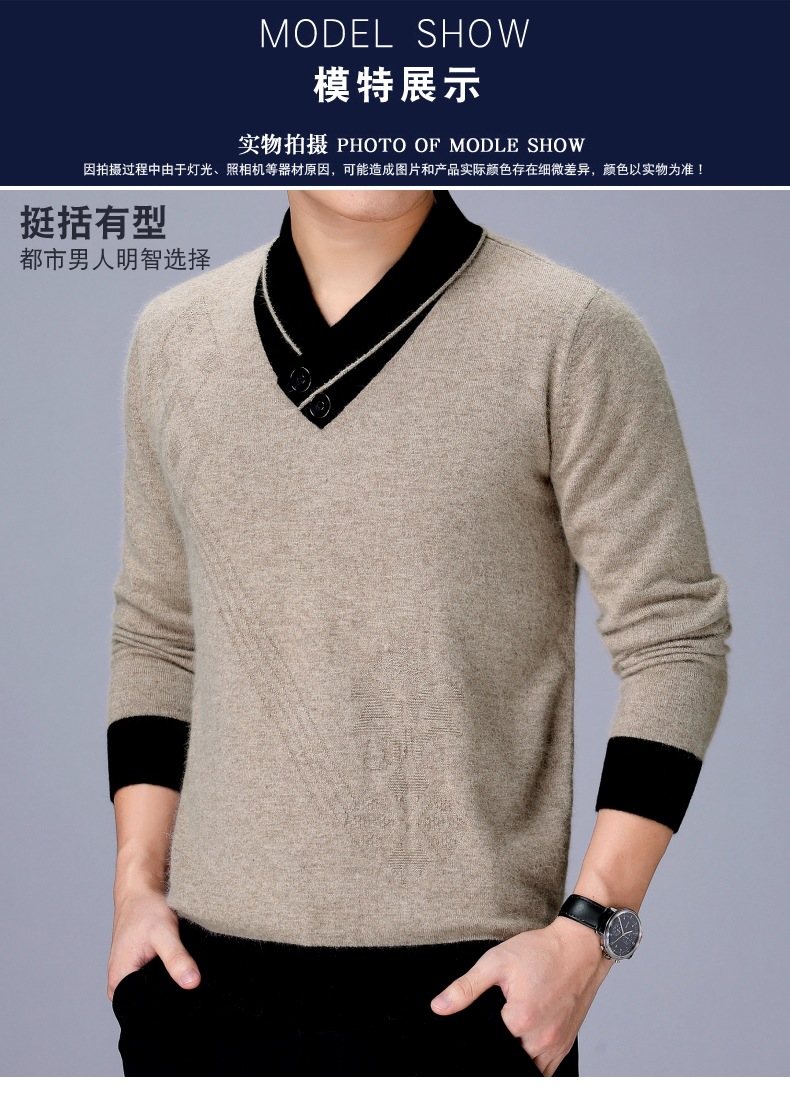 100% 순수 울 스웨터 남성용 두꺼운 V넥 스웨터 겨울 신상품 중년 남성용 베이스 레이어 풀오버 따뜻한 캐시미어 스웨터스토어 가기