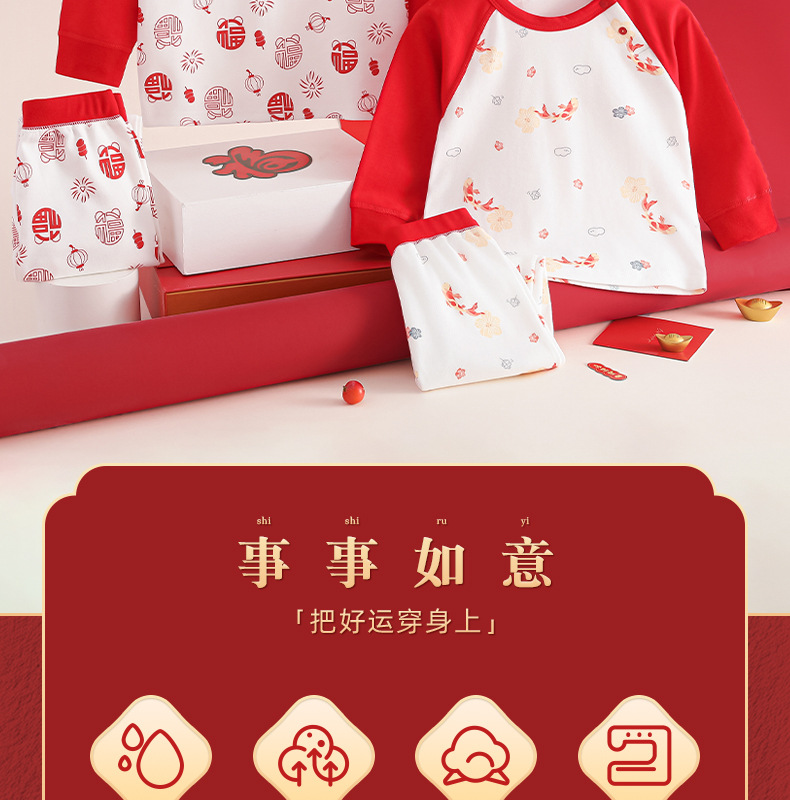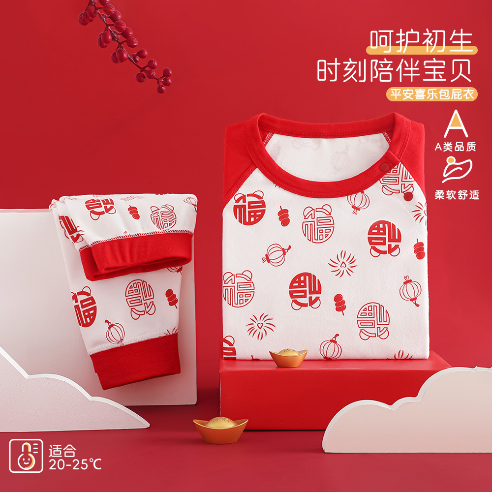 아기 가을옷 가을바지 순면 A급 유아 속옷 세트 생년월일 빨간색 분리형 남녀 어린이 홈웨어스토어 가기