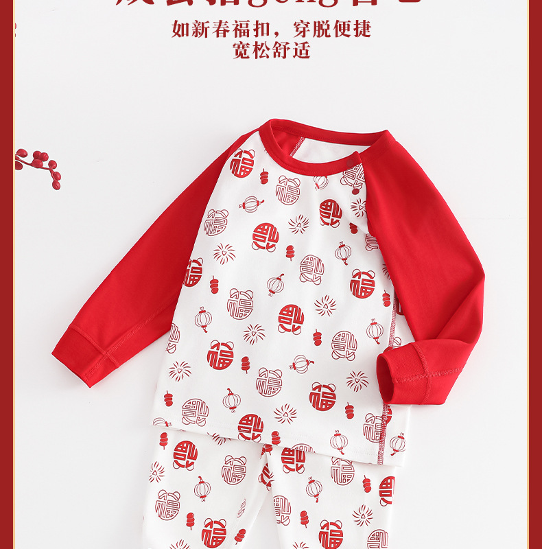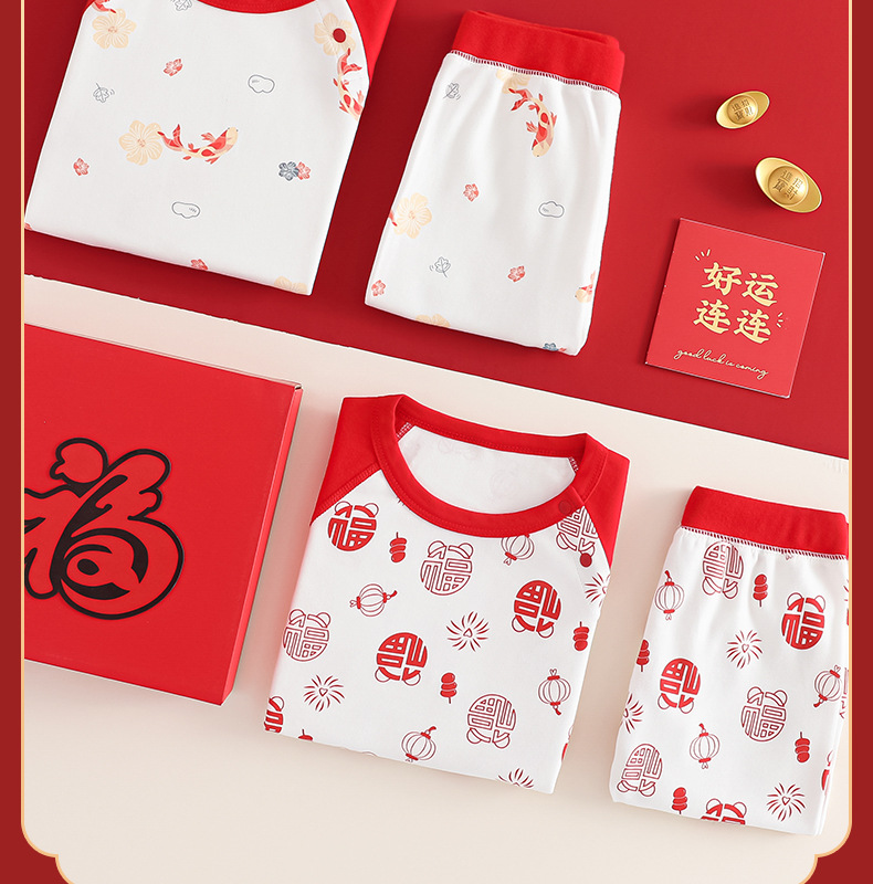 아기 가을옷 가을바지 순면 A급 유아 속옷 세트 생년월일 빨간색 분리형 남녀 어린이 홈웨어