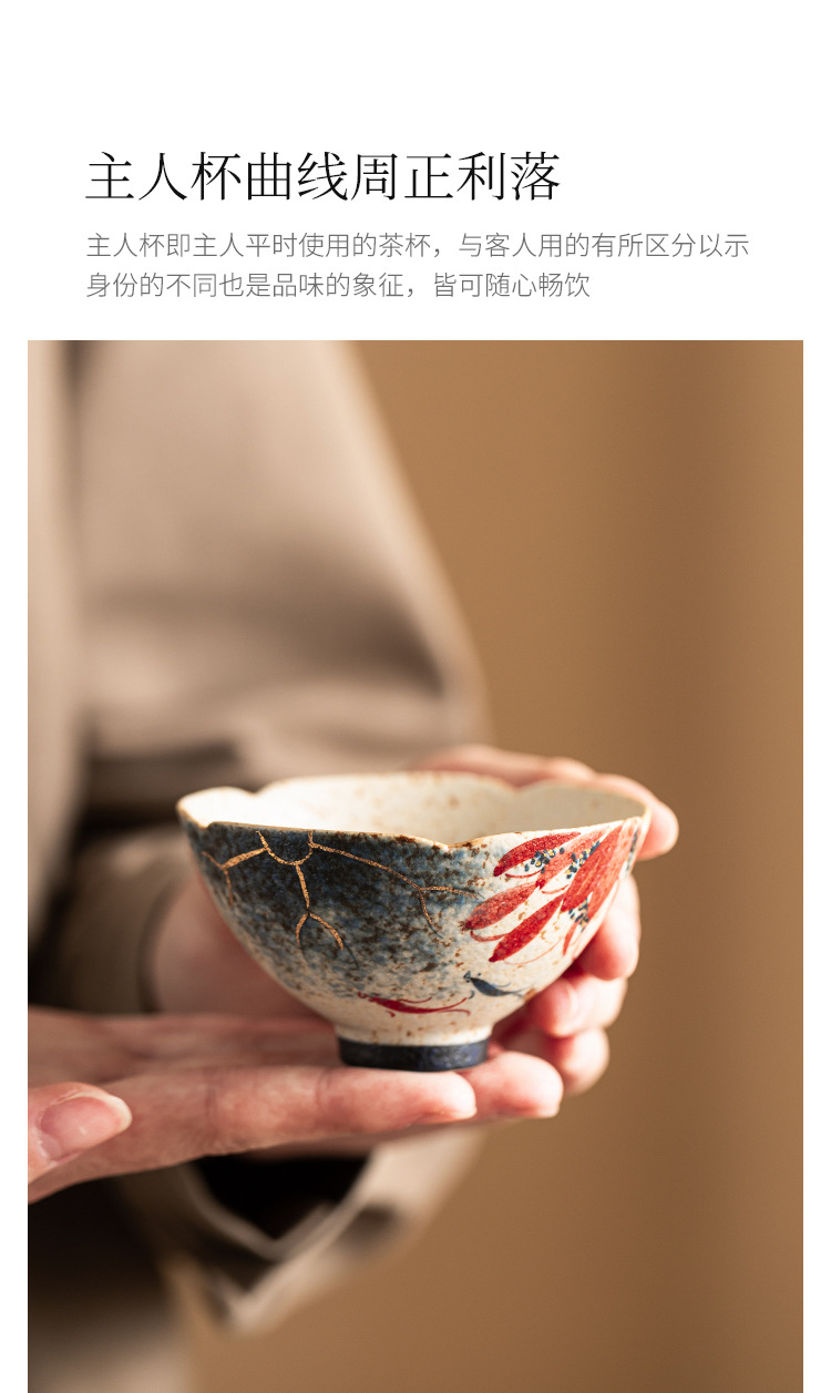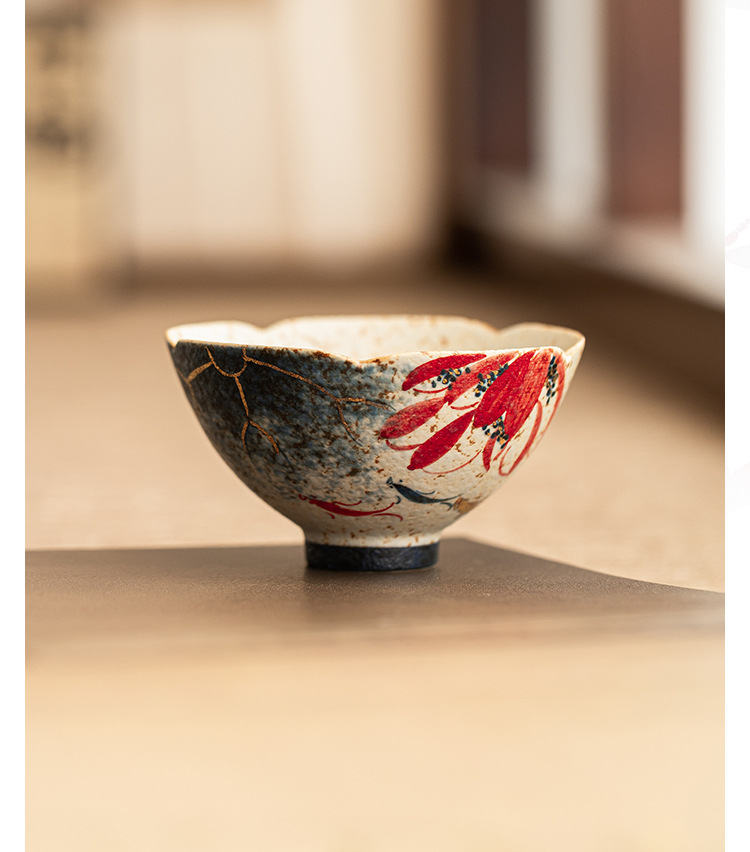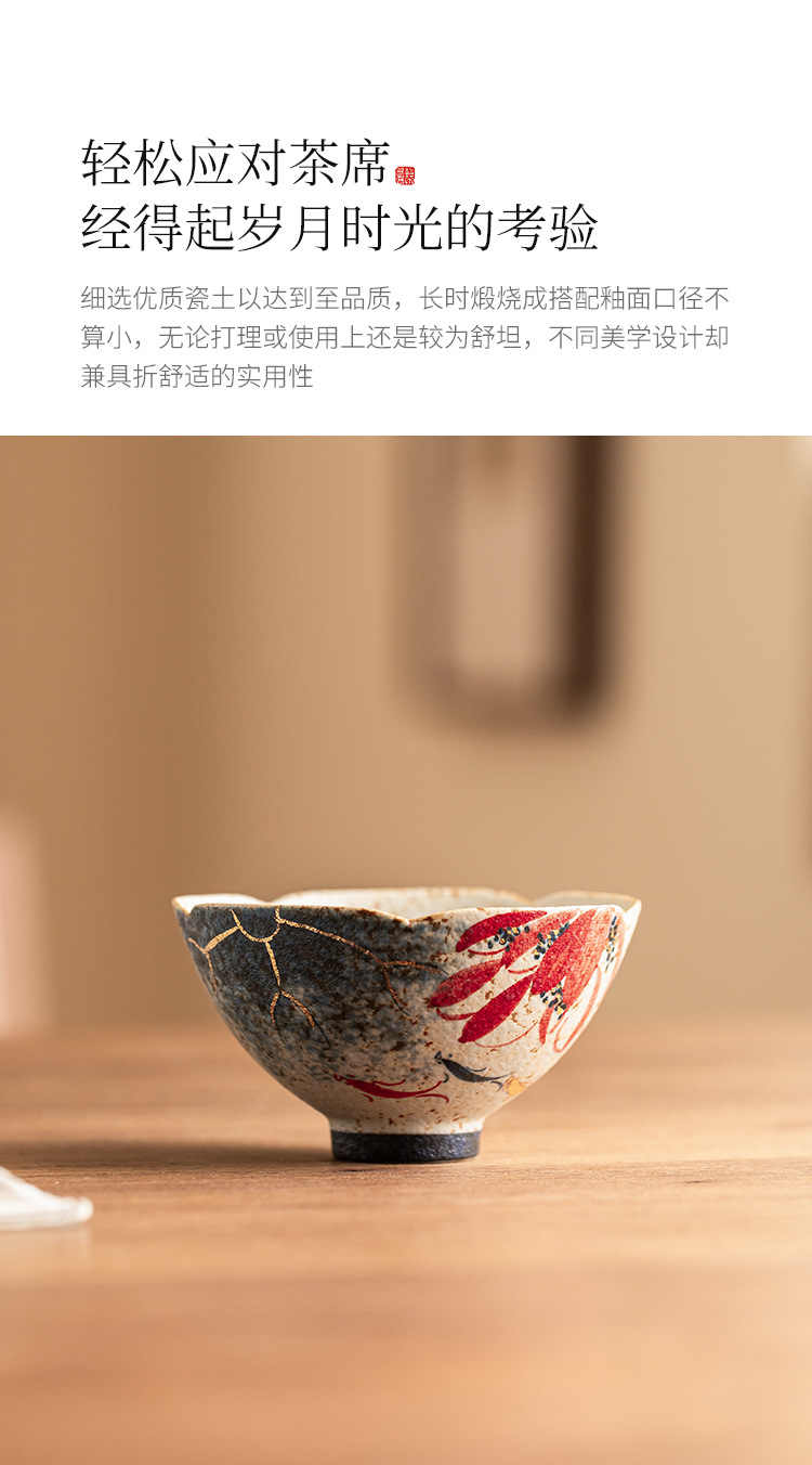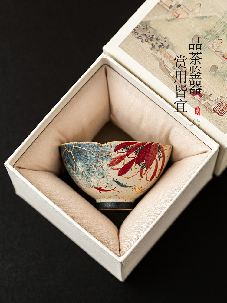 공장 파란색과 꽃 부싯돌 레드 세라믹 티 컵 그린 골드 손으로 그린 연꽃 운율 잉어 대나무 모자 콰이 입 컵 마스터 컵 차 시음 컵
