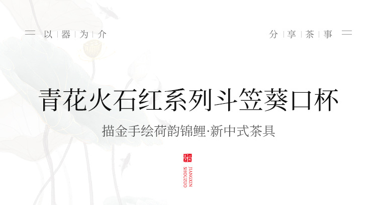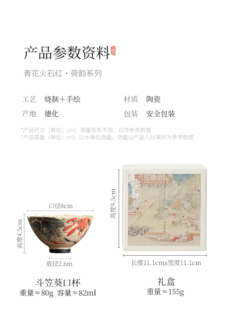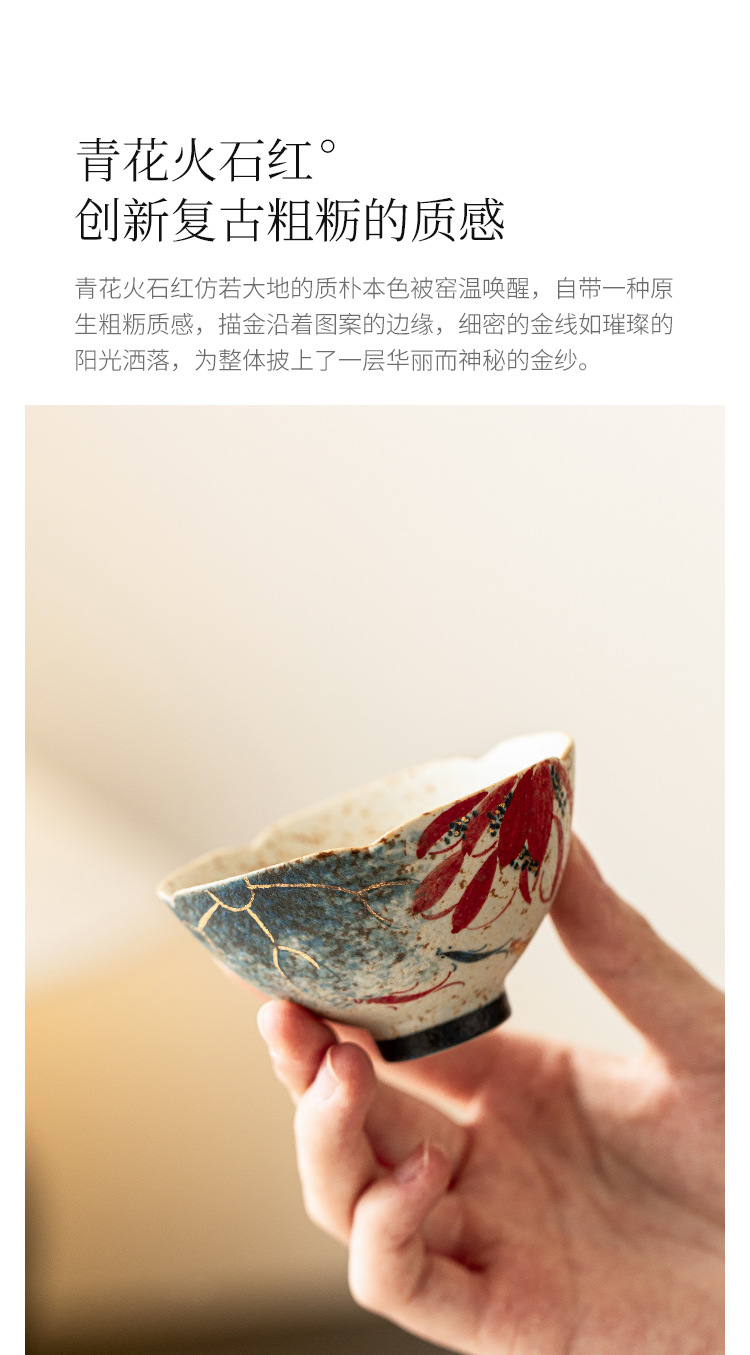 • 파란색과 흰색 부싯돌 붉은색과 금색 순수 손으로 그린 연꽃 매력_모자 해바라기 컵 [간단한 장식]