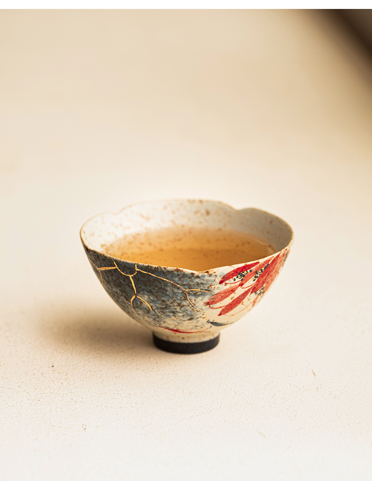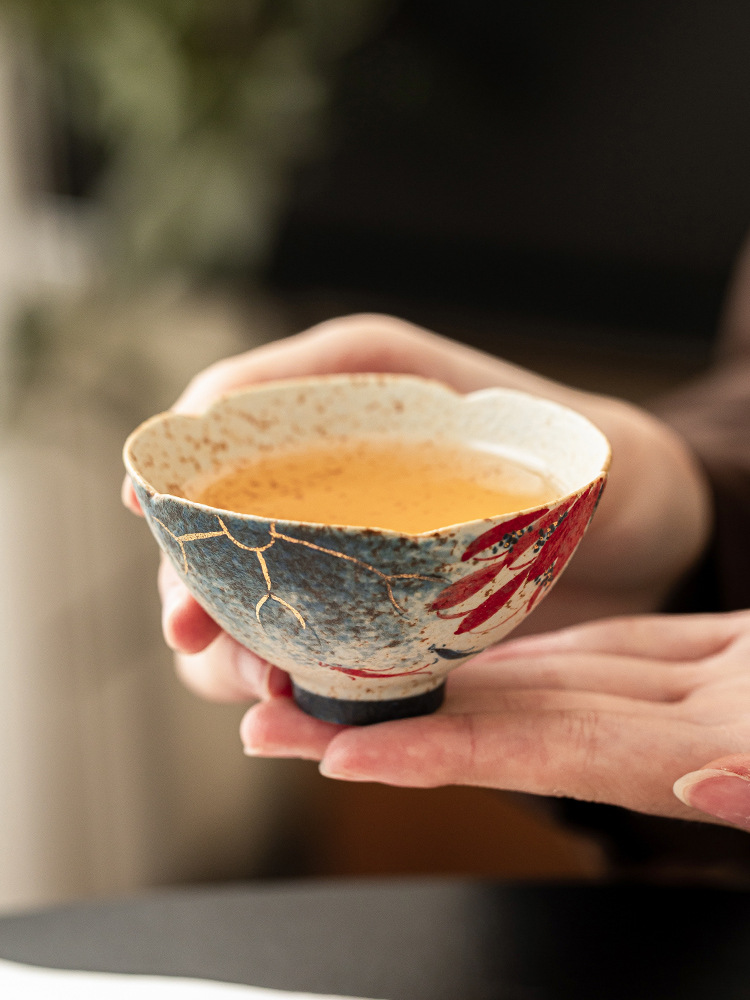 공장 파란색과 꽃 부싯돌 레드 세라믹 티 컵 그린 골드 손으로 그린 연꽃 운율 잉어 대나무 모자 콰이 입 컵 마스터 컵 차 시음 컵스토어 가기
