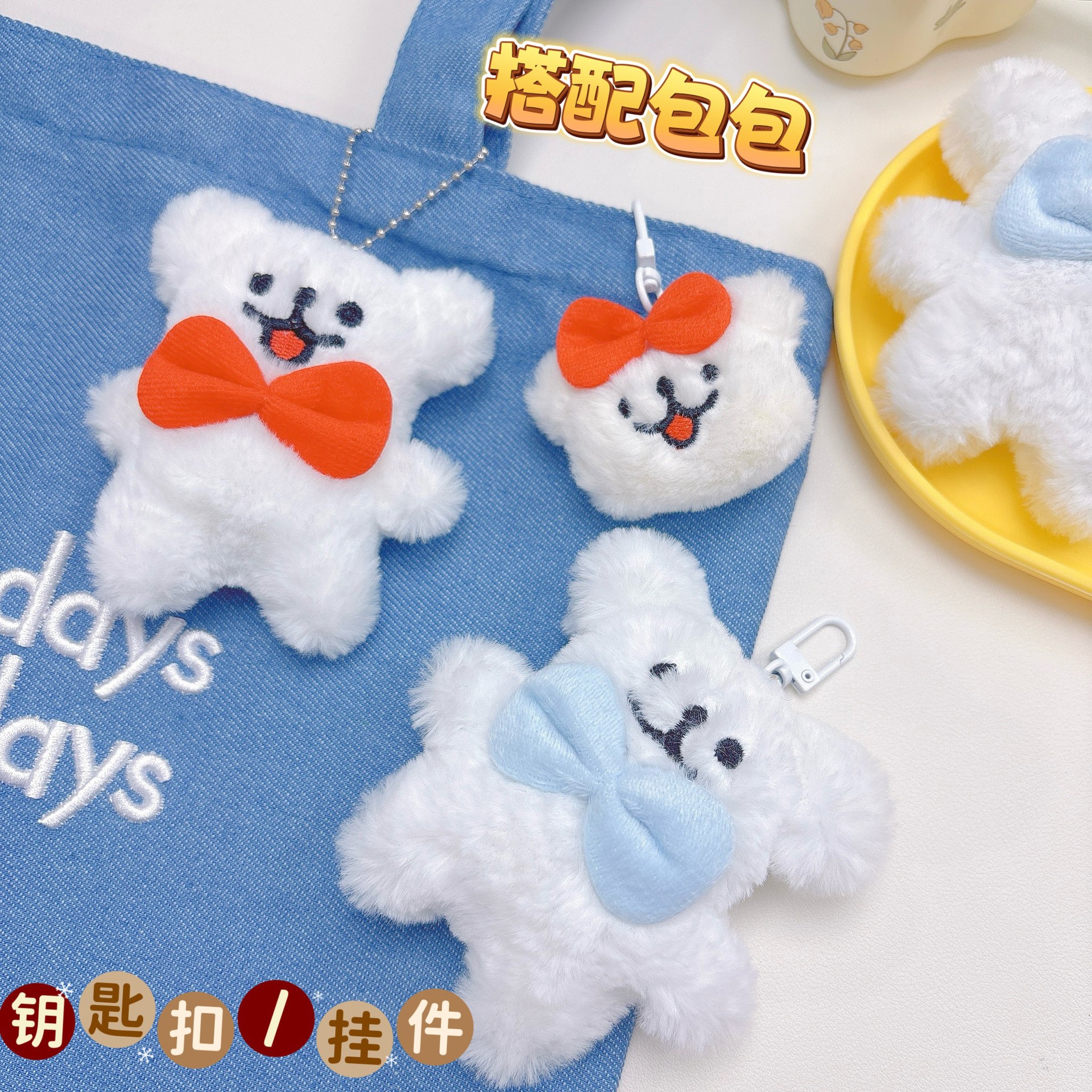 삐걱 거리는 만화 작은 동물 인형 봉제 펜던트 귀여운 라인 강아지 인형 키 체인 커플 펜던트스토어 가기