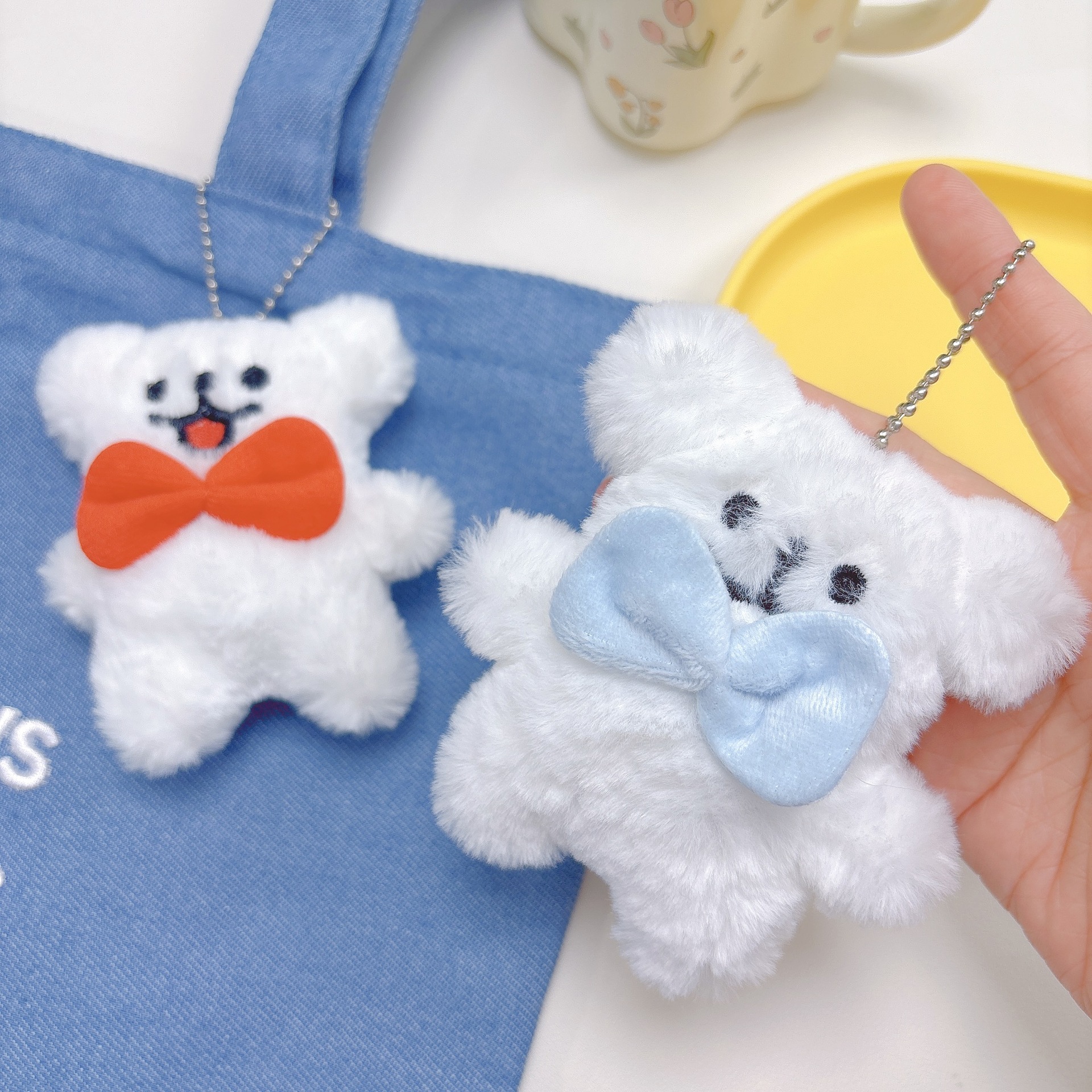 삐걱 거리는 만화 작은 동물 인형 봉제 펜던트 귀여운 라인 강아지 인형 키 체인 커플 펜던트