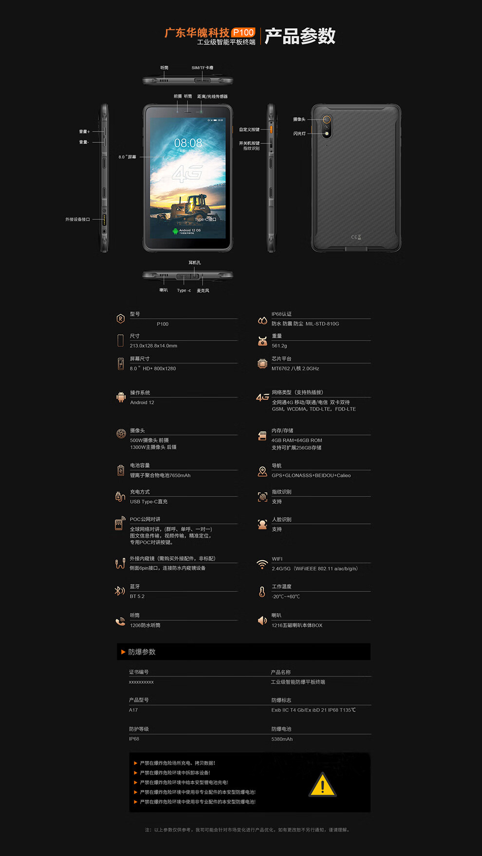 산업용 지능형 태블릿 터미널 본질적으로 안전한 폭발 방지 화학 석유 및 가스 POC 글로벌 공공 네트워크 인터콤