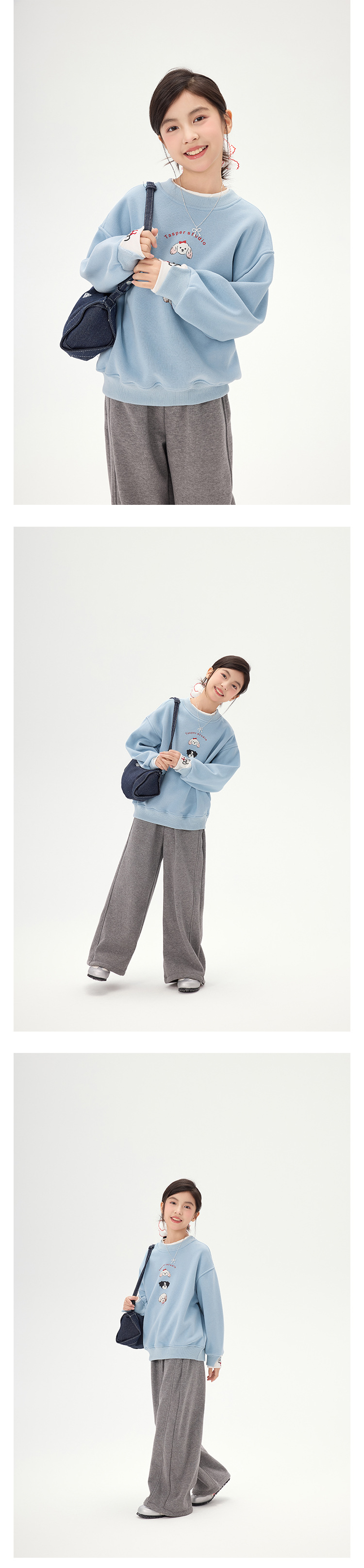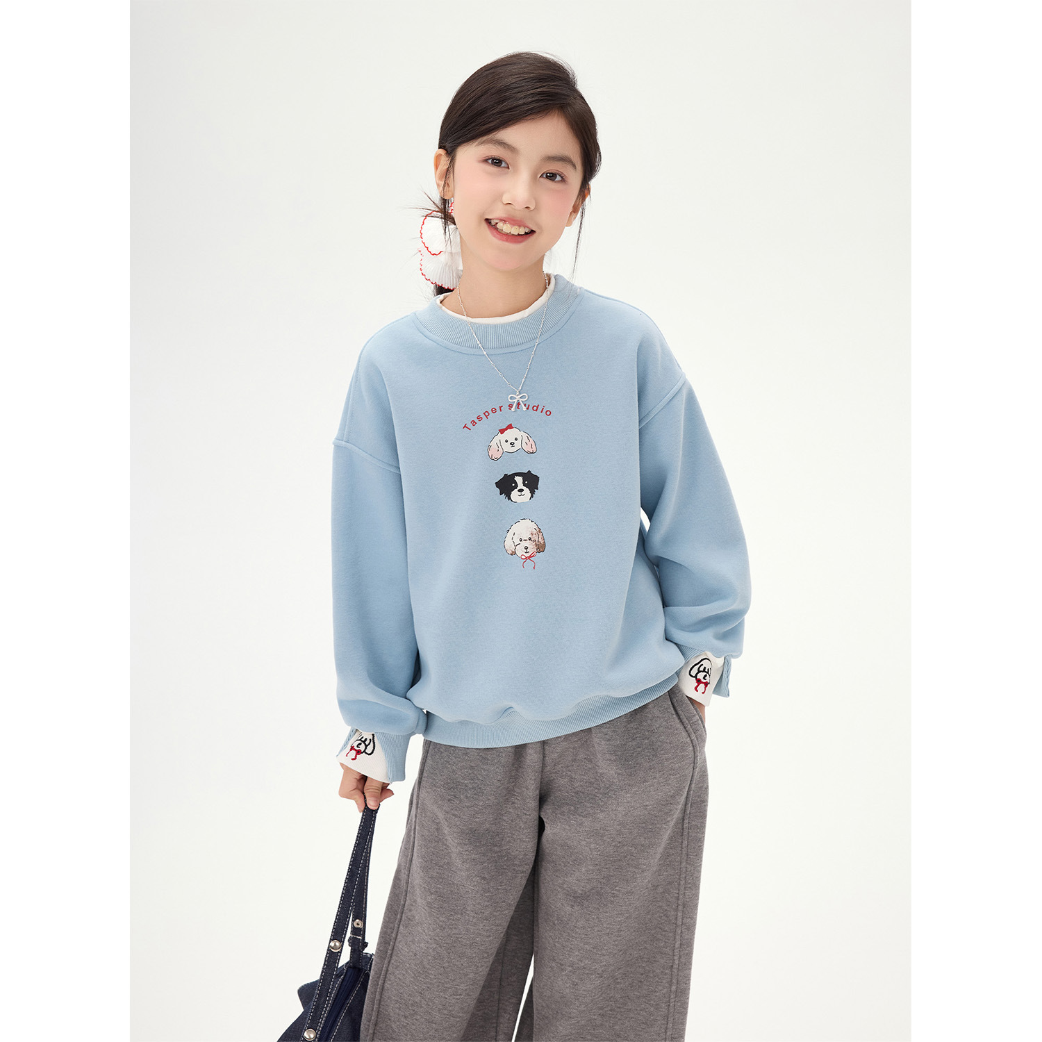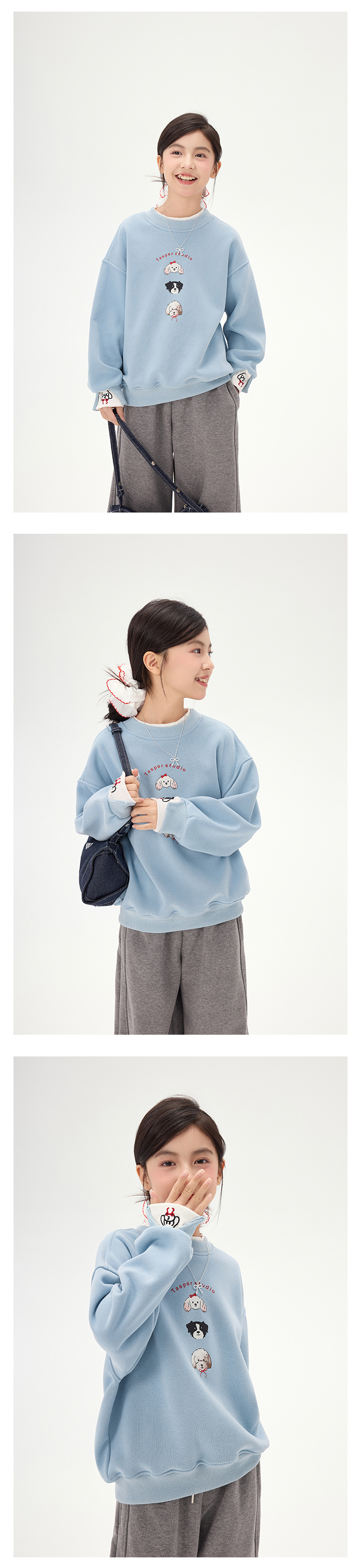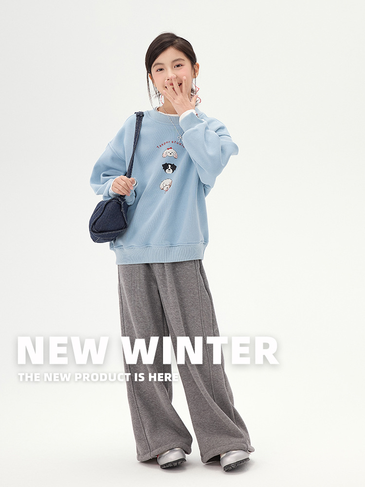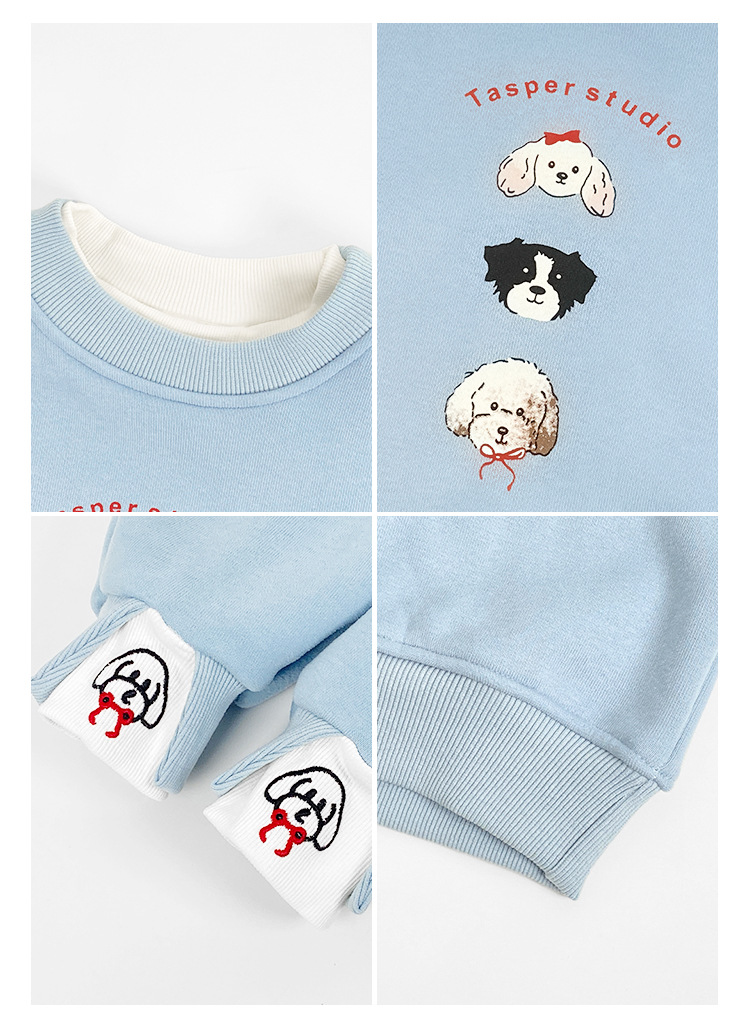 여아 만화 강아지 플리스 스웨트셔츠 2025 가을 겨울 신상 아동 한국 스타일 투피스 캐주얼 루즈핏 상의 트렌디스토어 가기