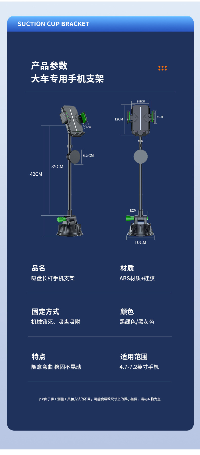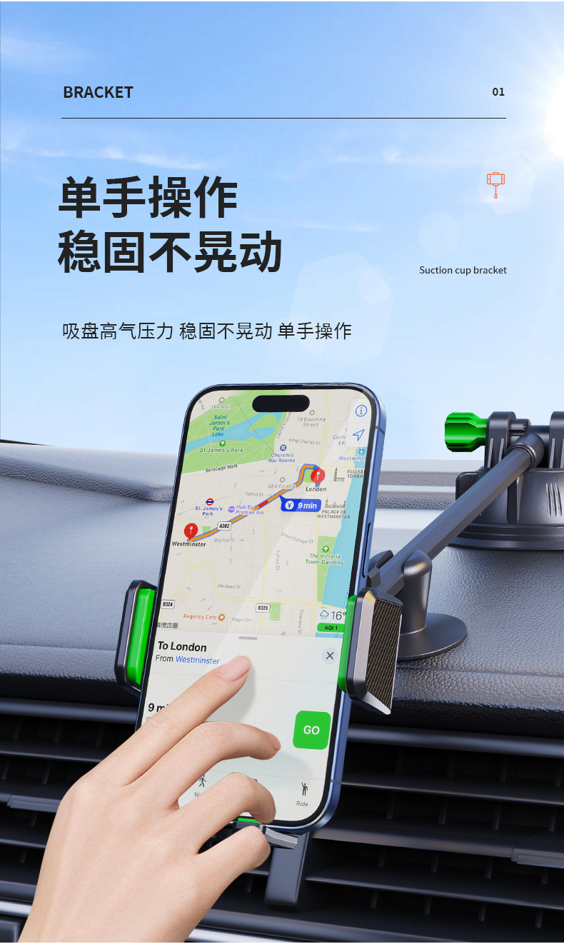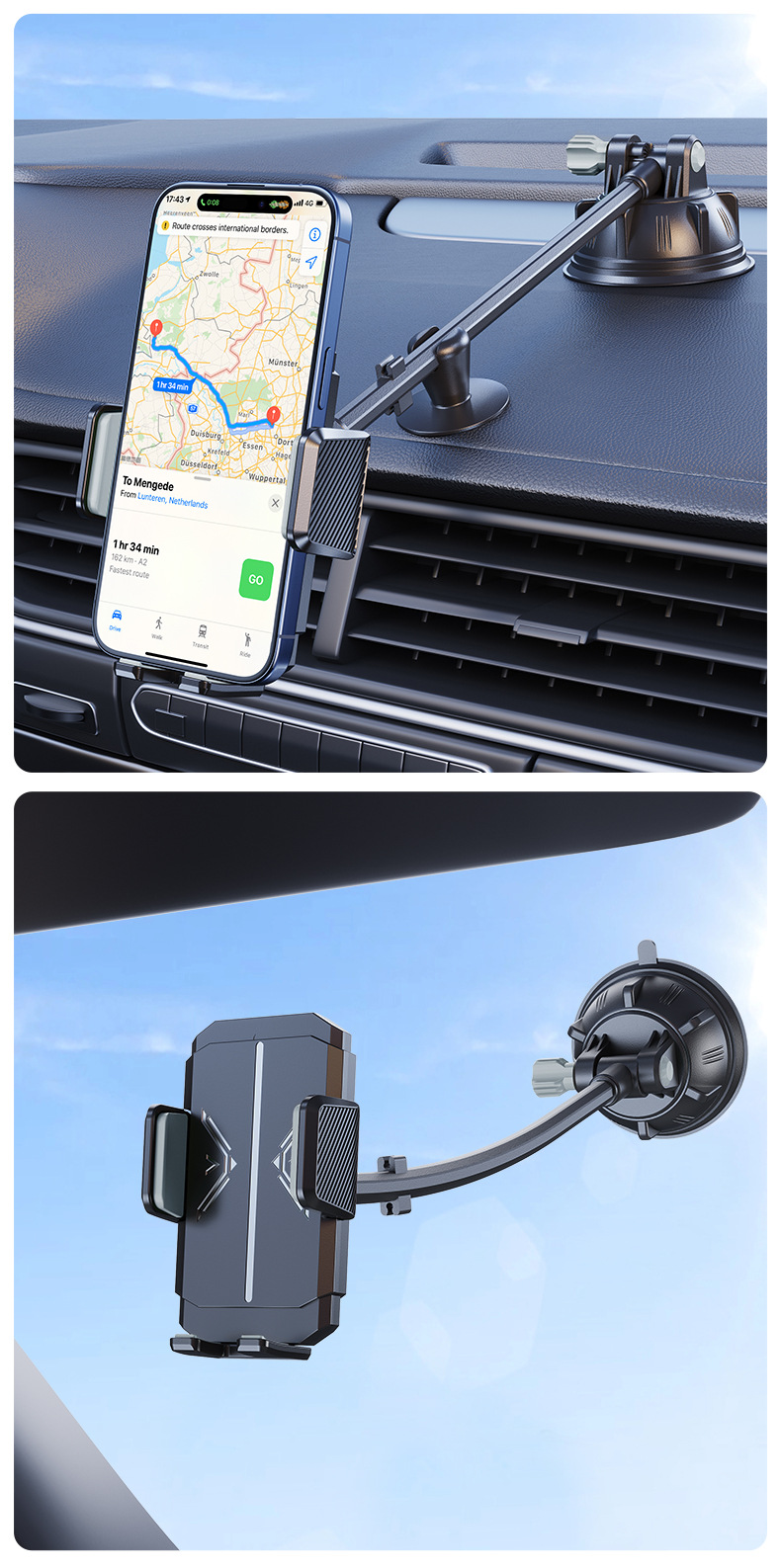 加长耐弯软管款跨境车载手机支架挡风玻璃仪表台大吸盘汽车用支架