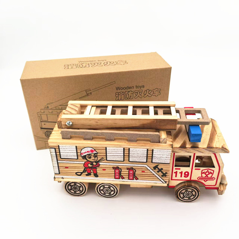 도매 나무 모델 컬러 소방차 기차 장식 화재 홍보 아름다운 뜨거운 판매 어린이 장난감