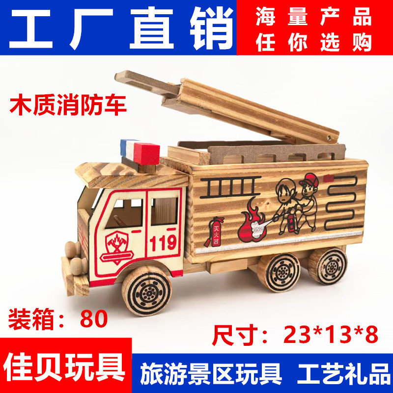 도매 나무 모델 컬러 소방차 기차 장식 화재 홍보 아름다운 뜨거운 판매 어린이 장난감스토어 가기