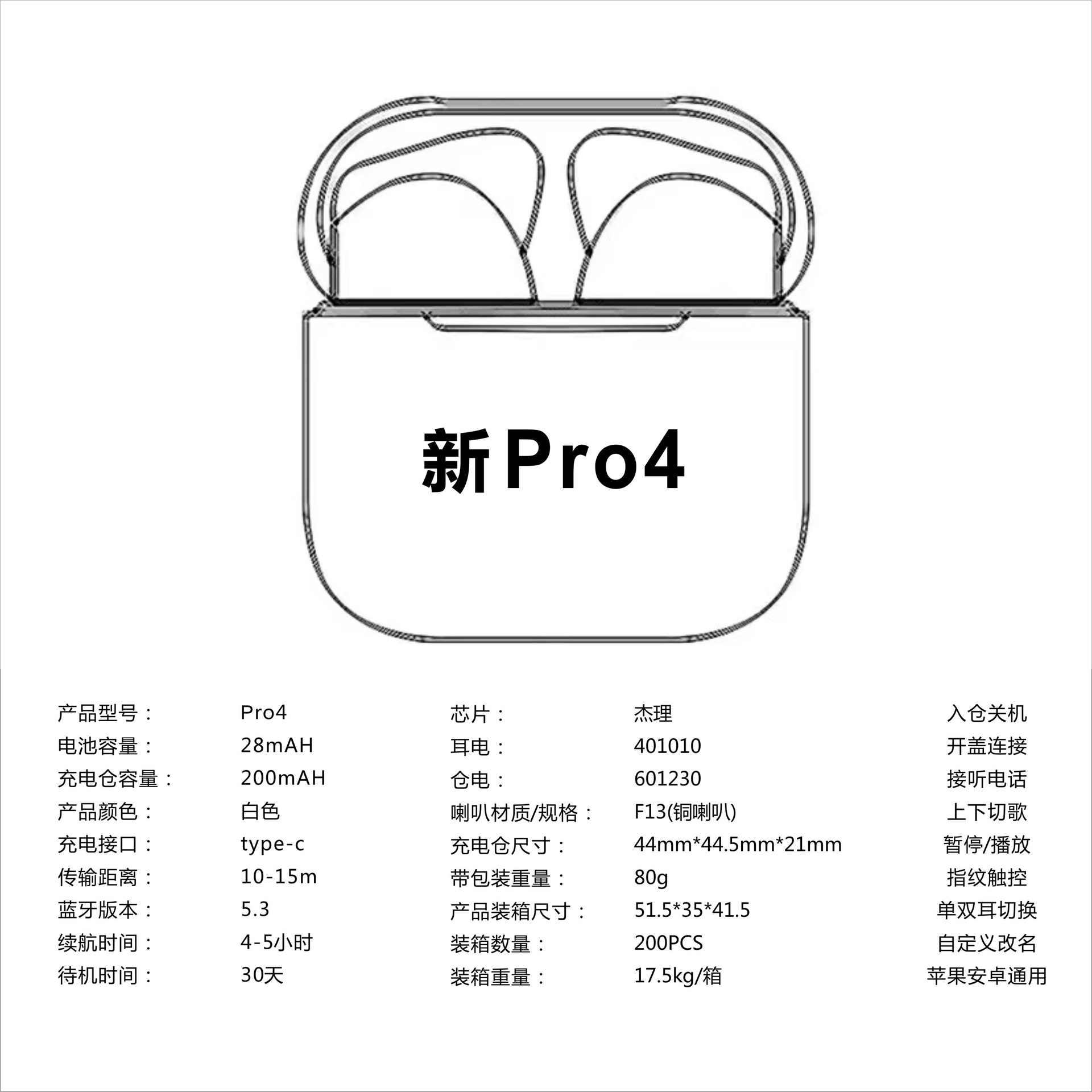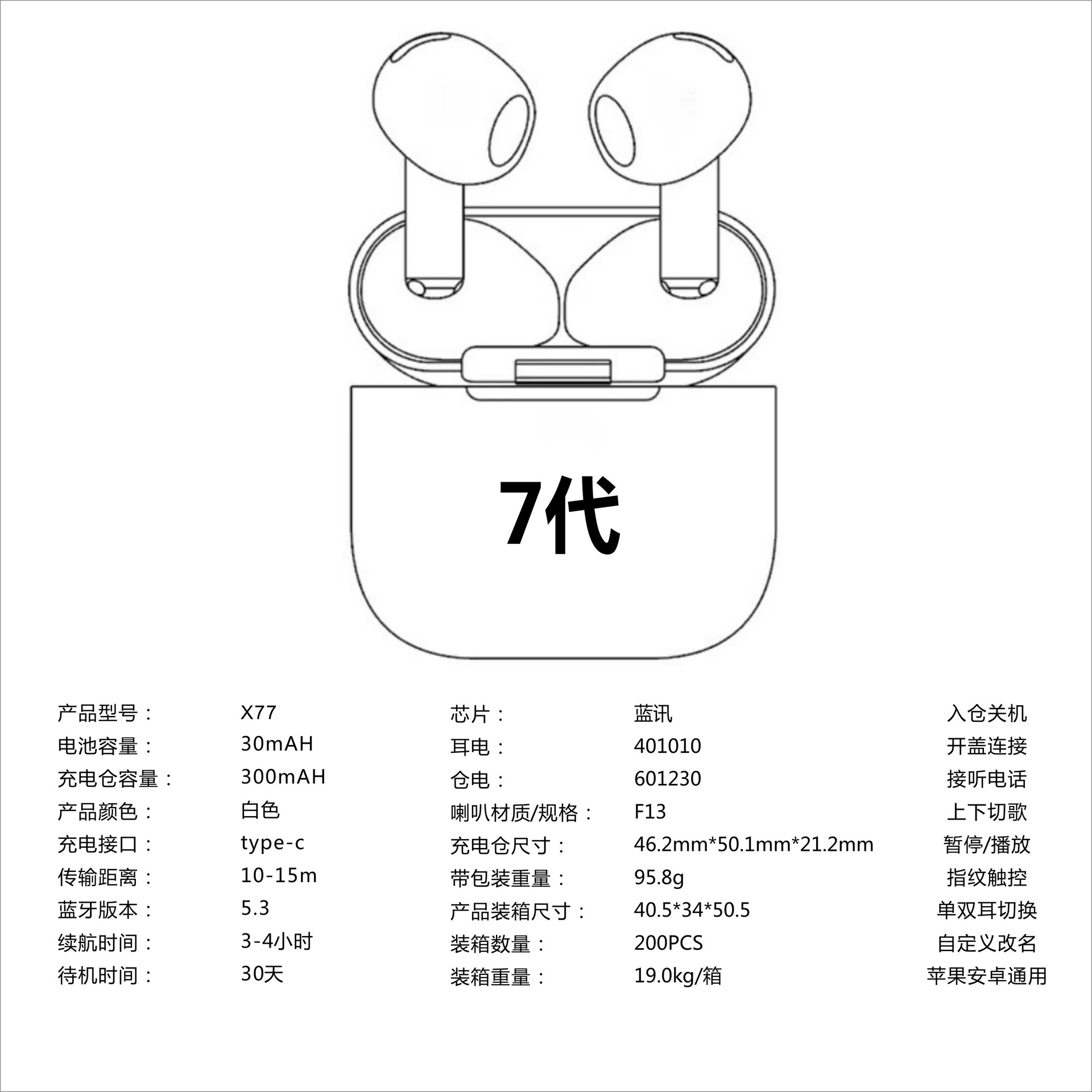 천나이 Zhizhen Huaqiangbei 차세대 7세대 5세대 4세대 Pro 시리즈 초장기 배터리 수명 크로스보더 블루투스 헤드셋 TWS