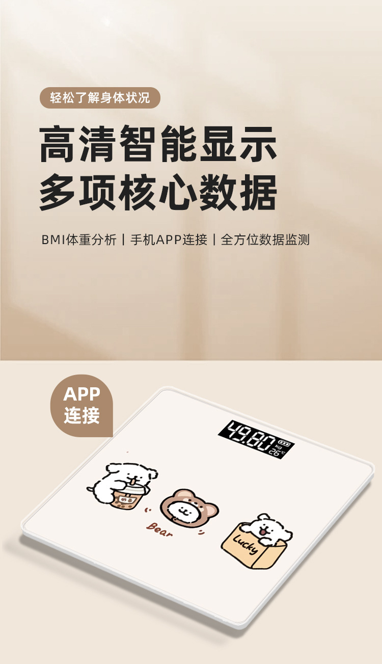 블루투스 체지방 규모 맞춤형 로고 국경 전자 규모 귀여운 만화 정밀 가정용 인체 건강 계량 규모스토어 가기