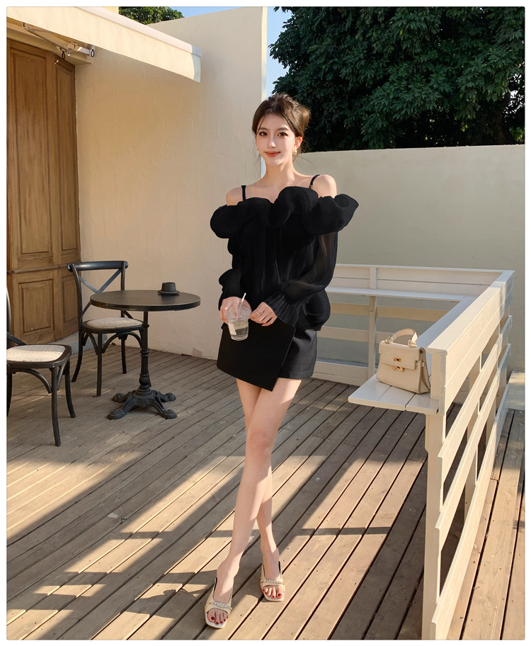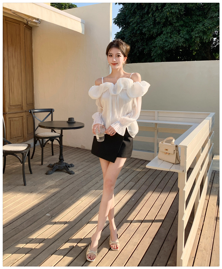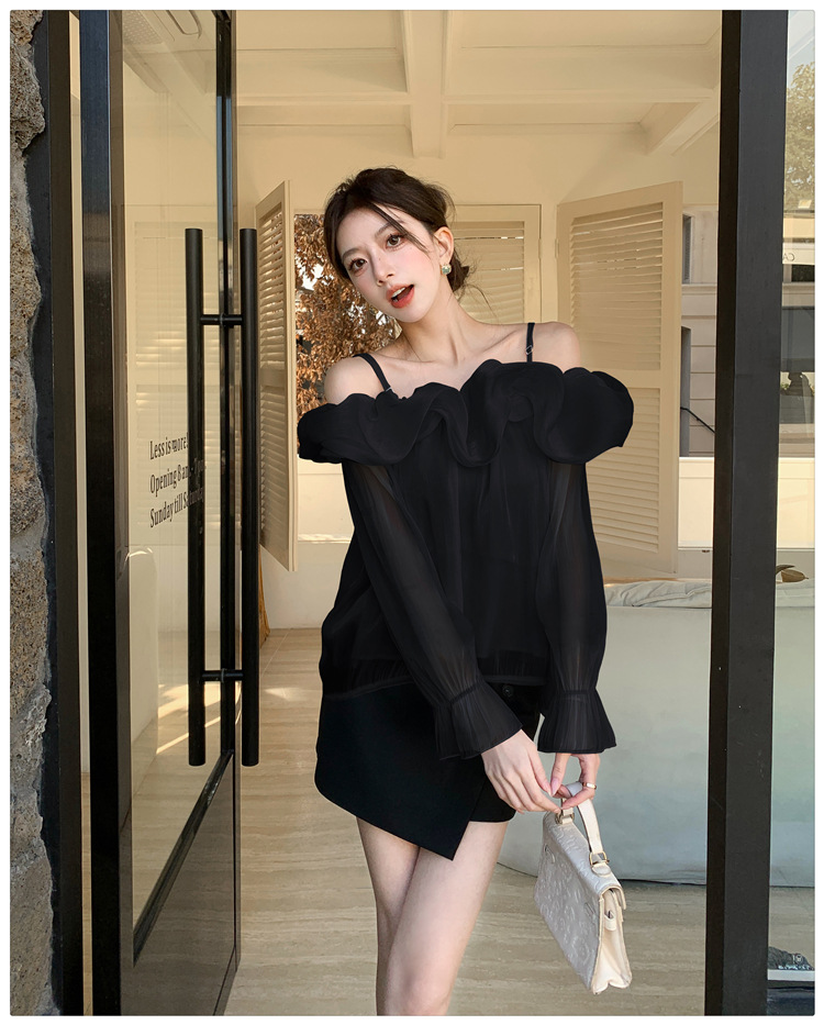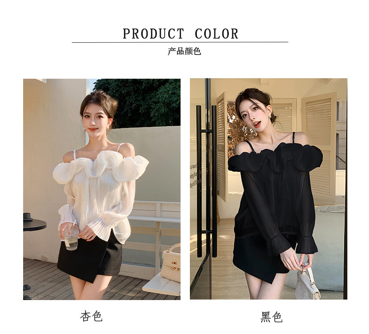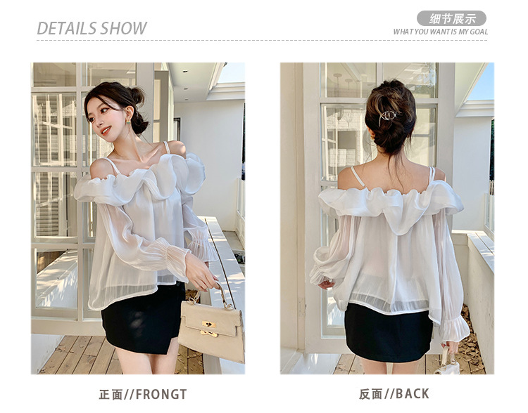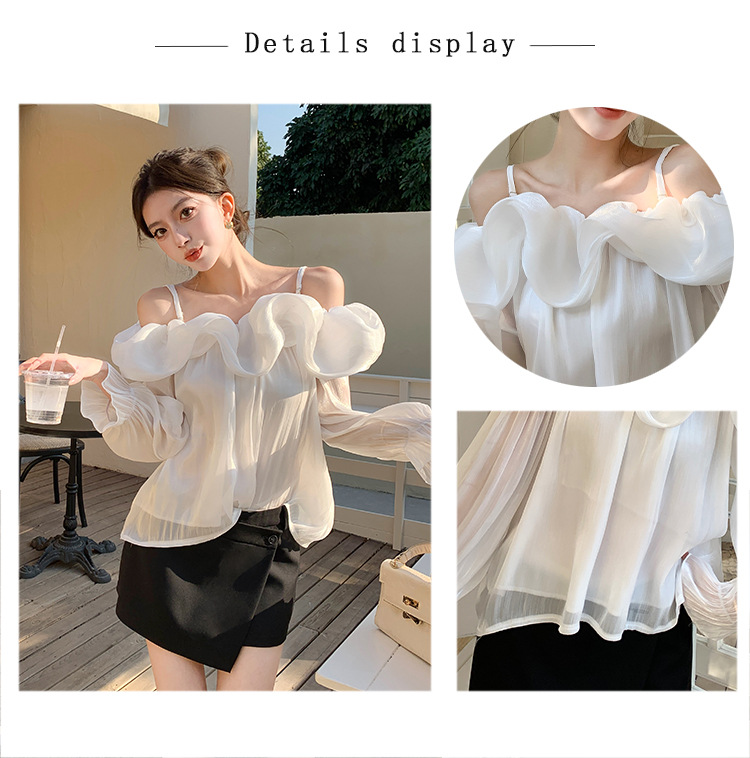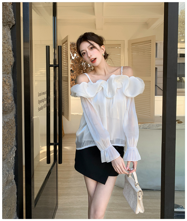 달콤한 우아한 러플 쉬폰 셔츠 2025 봄 새로운 아름다운 쇄골 어깨 슈퍼 페어리 러플 여성스토어 가기