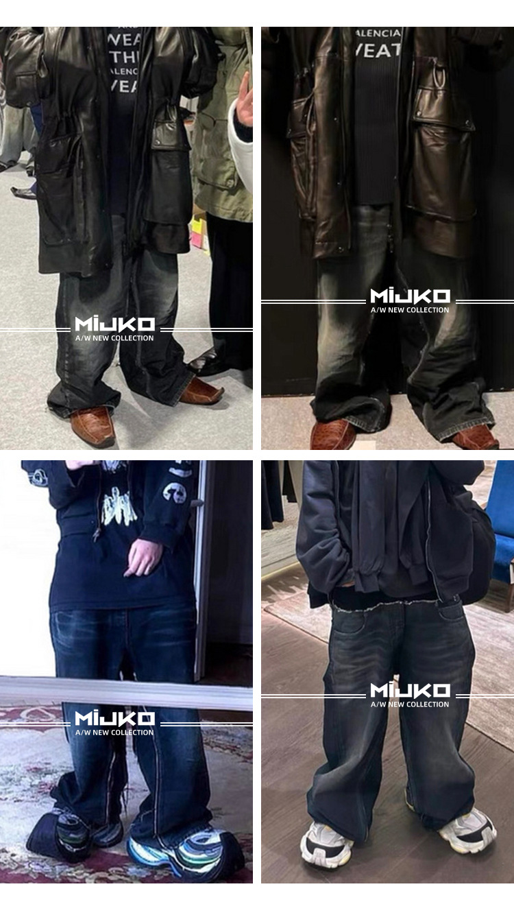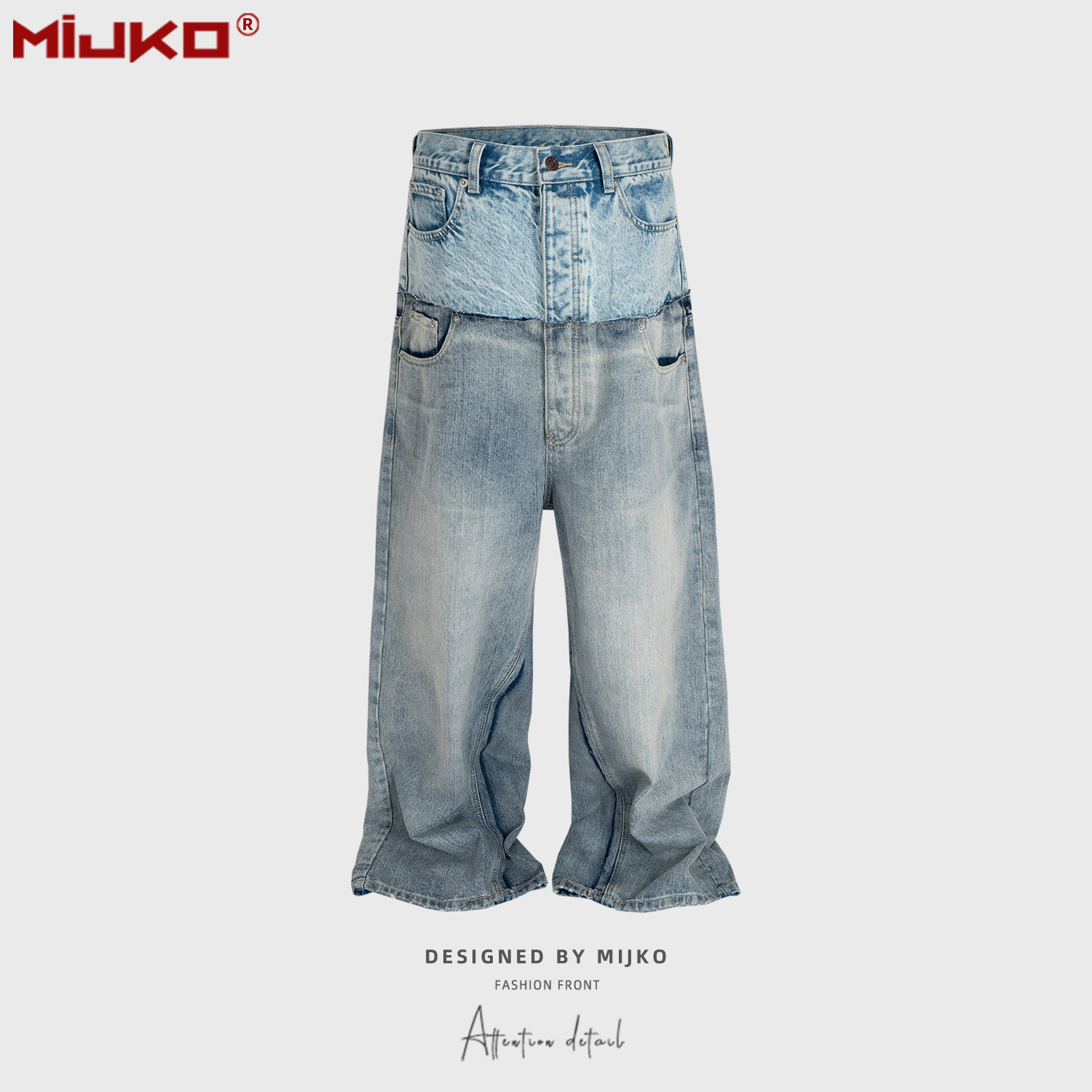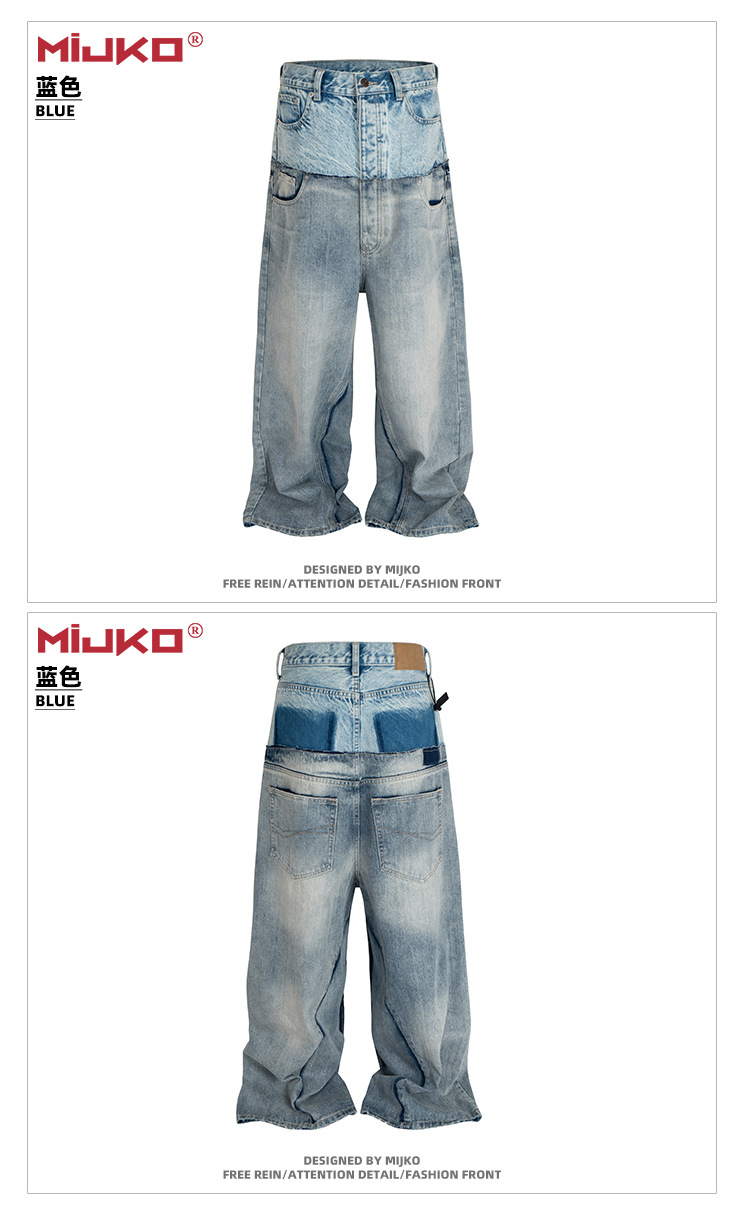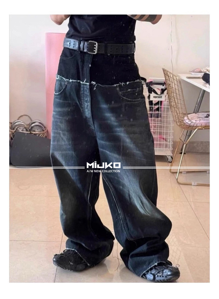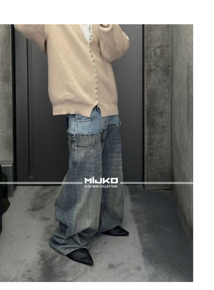 MIJKO 남자 여자 고양이는 바지를 파괴해야합니다. 남자와 여자의 컷 업 더블 허리 스티칭 헐렁한 청바지스토어 가기