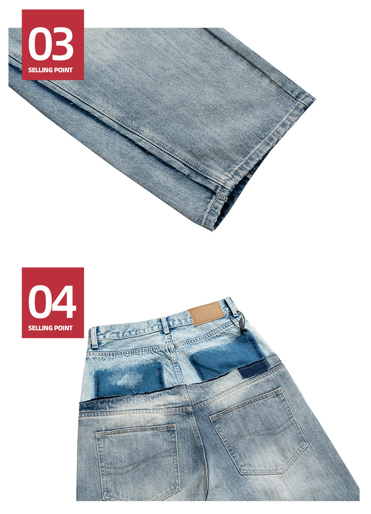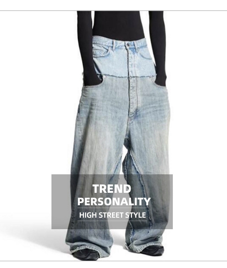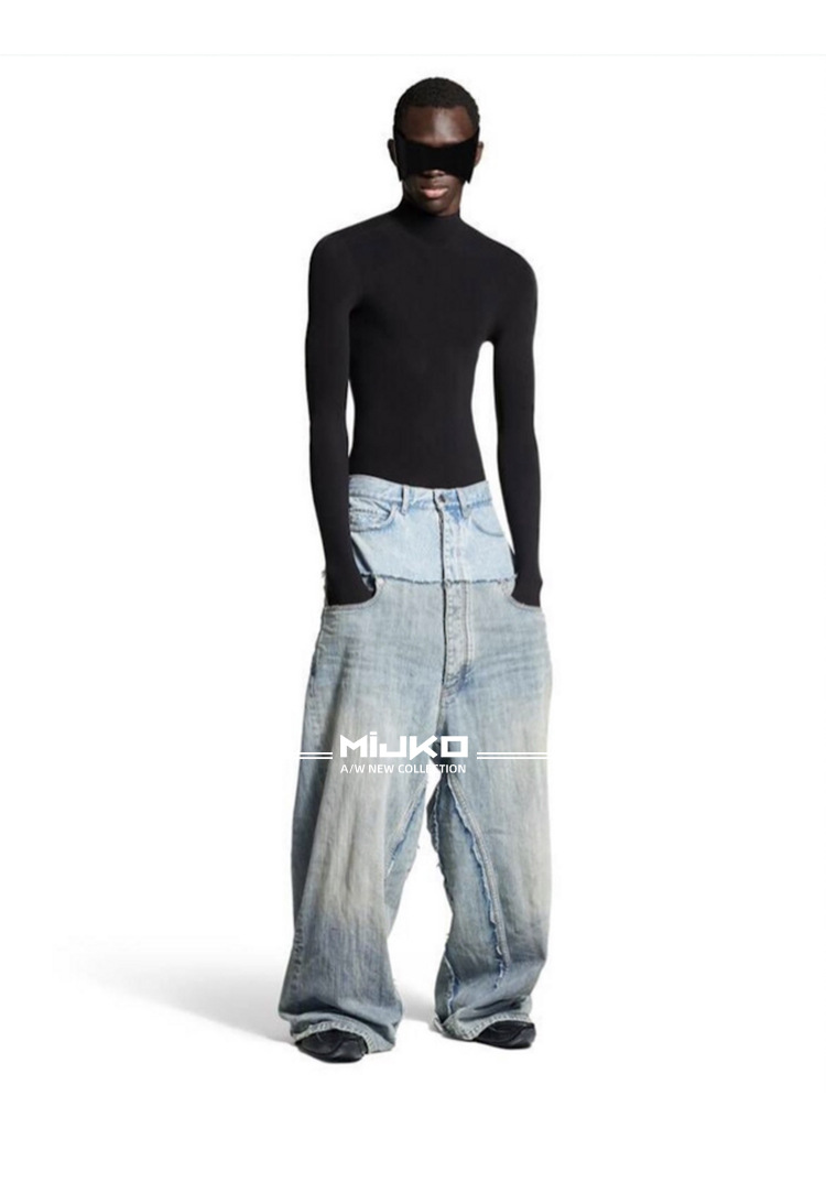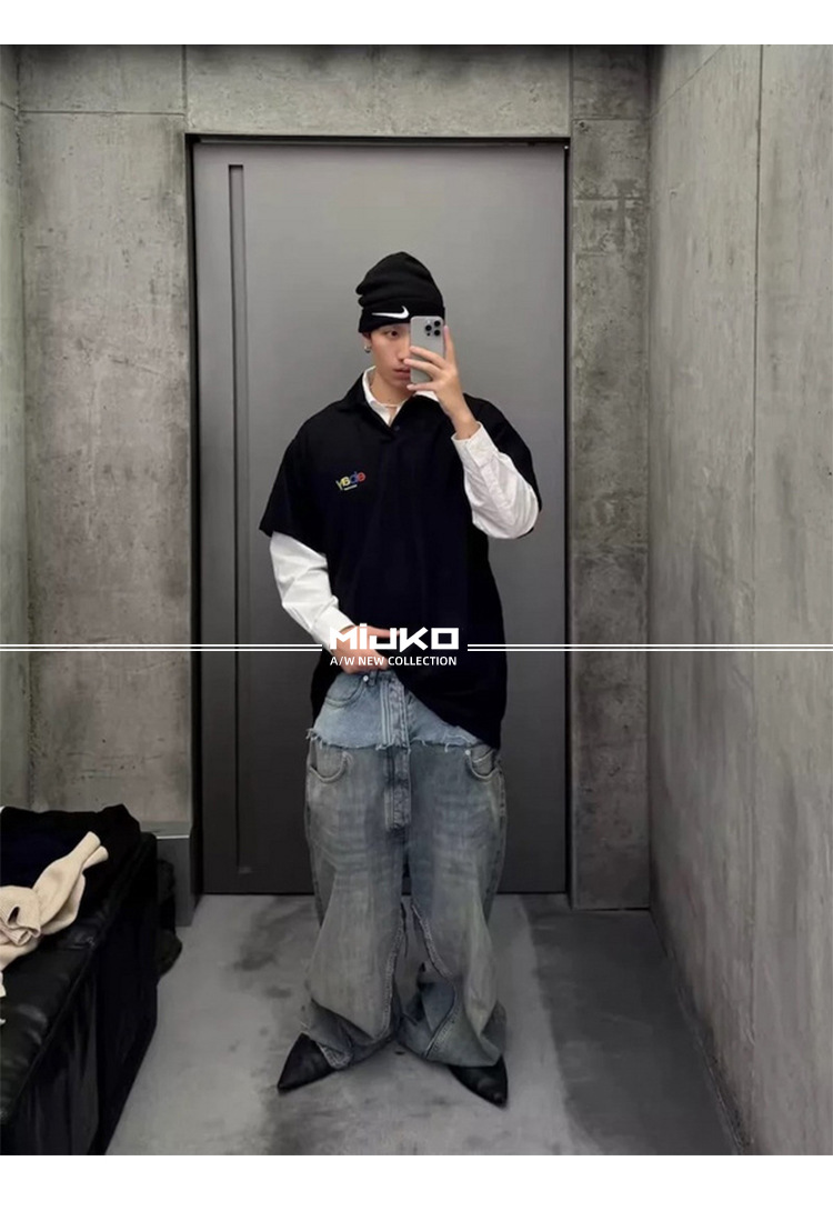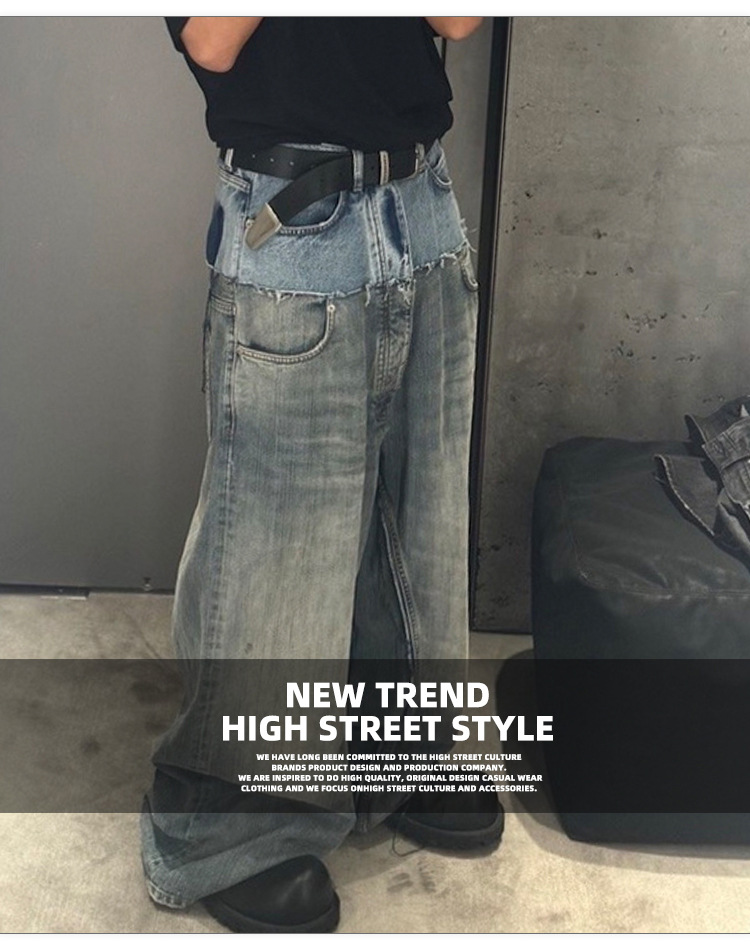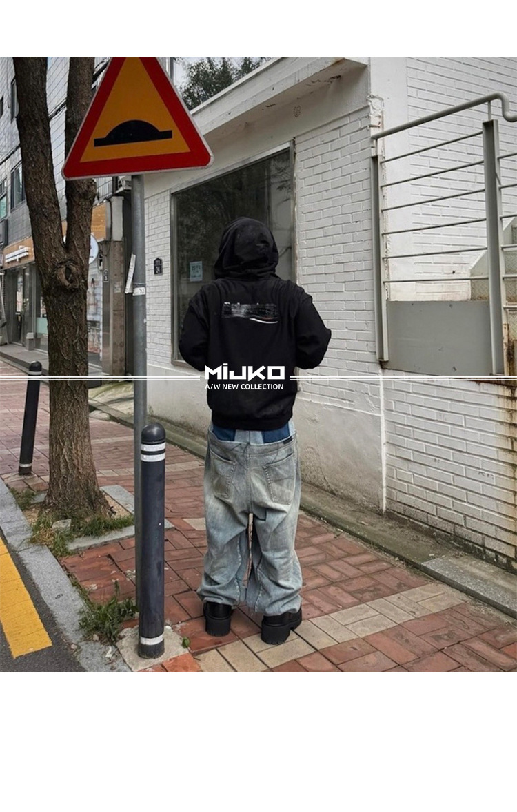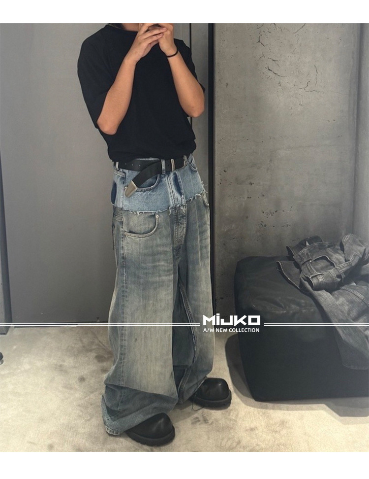 MIJKO 남자 여자 고양이는 바지를 파괴해야합니다. 남자와 여자의 컷 업 더블 허리 스티칭 헐렁한 청바지스토어 가기