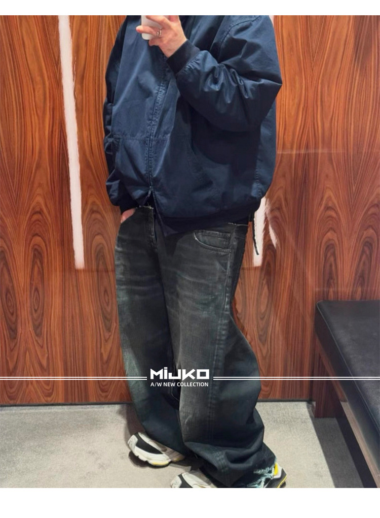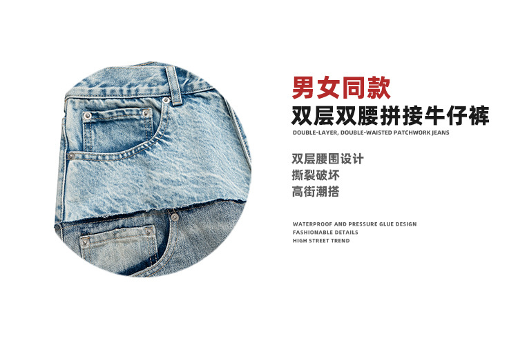 MIJKO 남자 여자 고양이는 바지를 파괴해야합니다. 남자와 여자의 컷 업 더블 허리 스티칭 헐렁한 청바지
