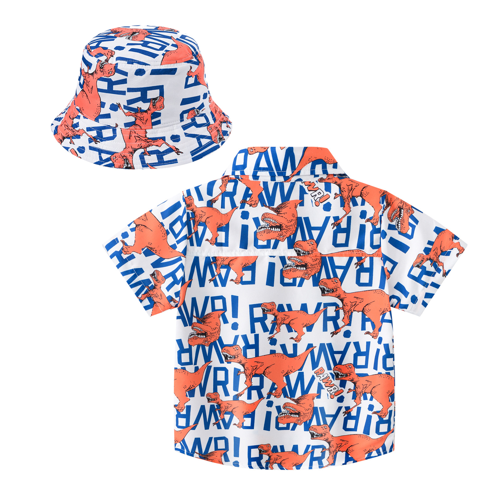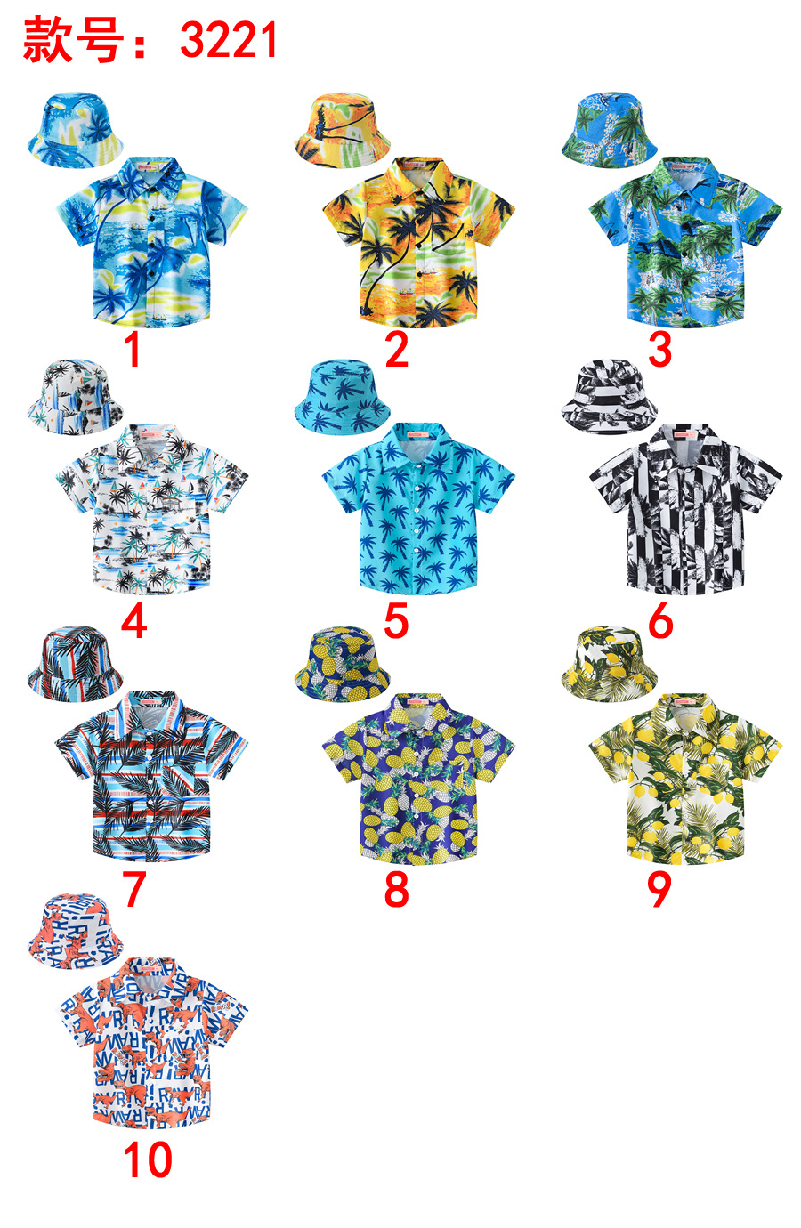 여름 새로운 주머니 비치 스타일 셔츠 컬러 모자 캐주얼 한국 인쇄 얇은 아동복 도매