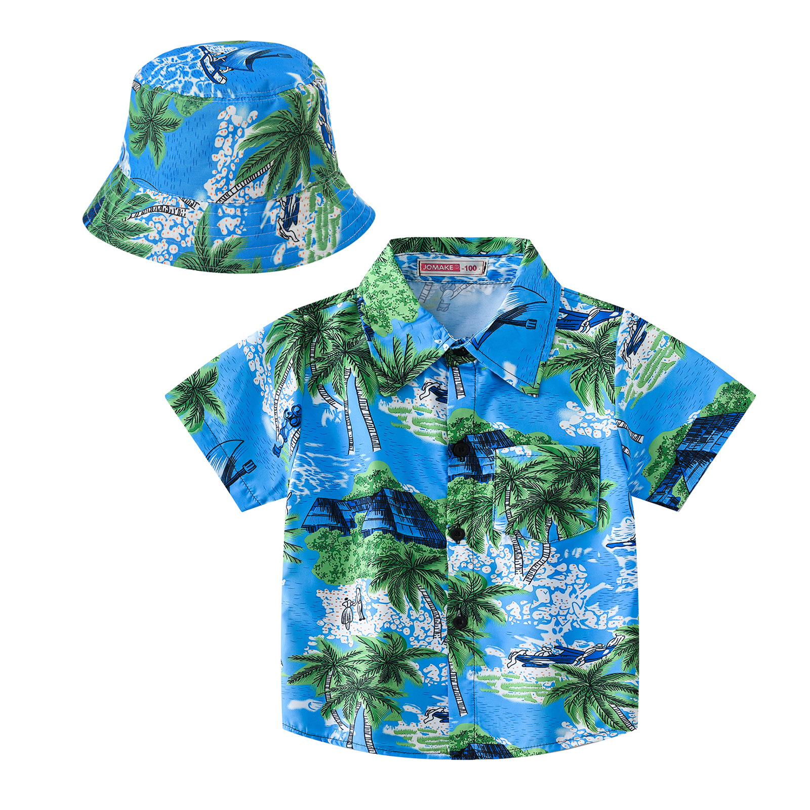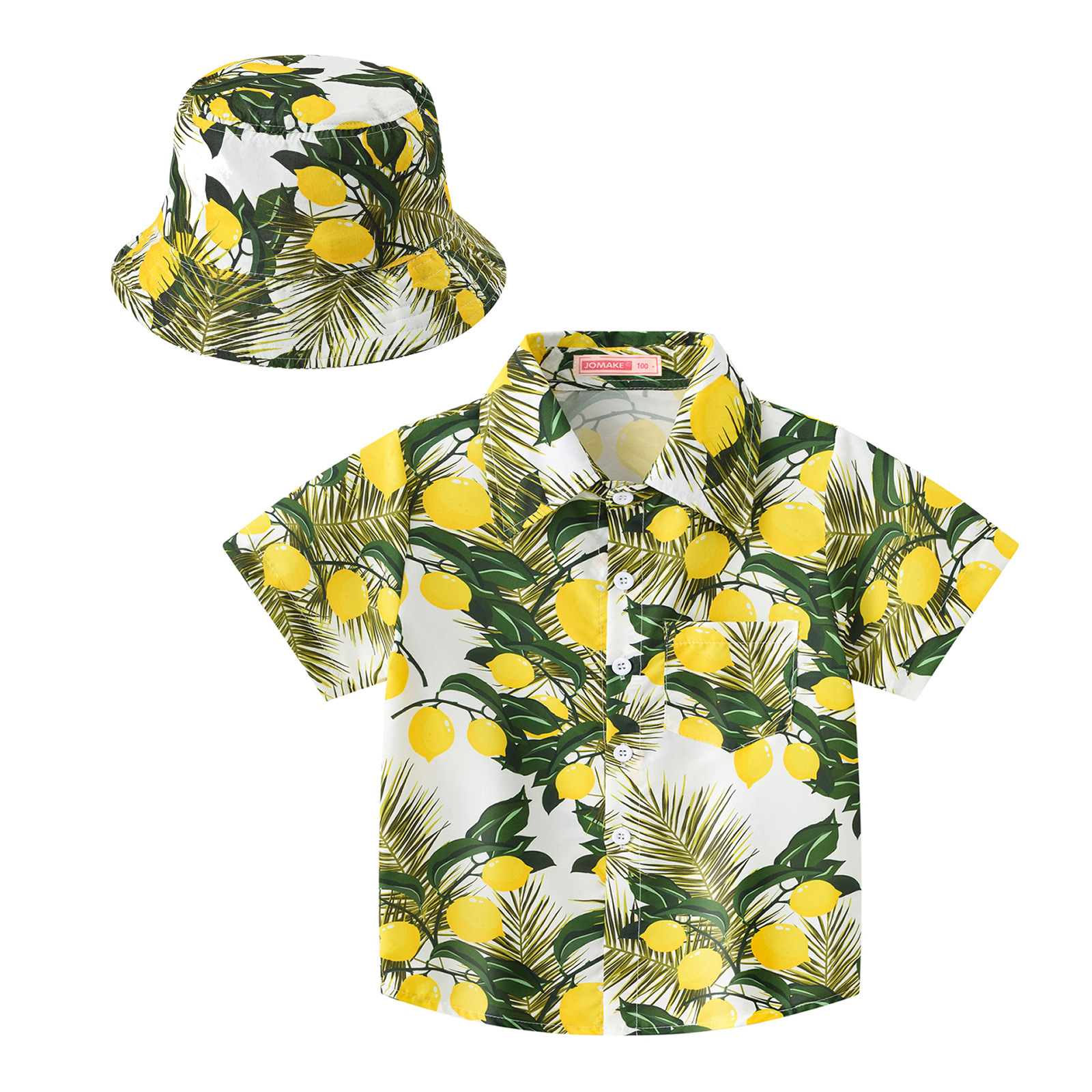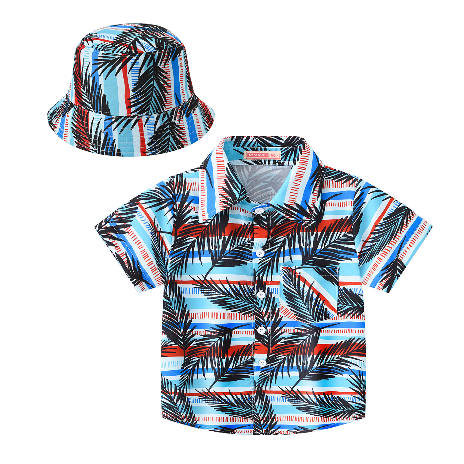 여름 새로운 주머니 비치 스타일 셔츠 컬러 모자 캐주얼 한국 인쇄 얇은 아동복 도매스토어 가기