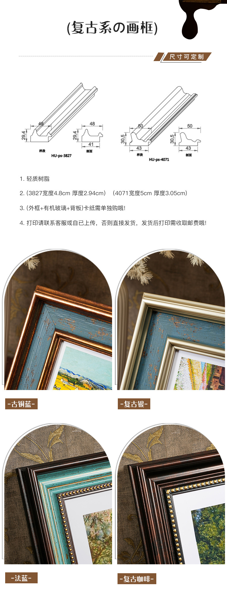 대형 액자 미국 복고풍 프레임 사진 프레임 벽 20 인치 16 인치 18 인치 4 8K A3 오일 액자 도매 장착스토어 가기