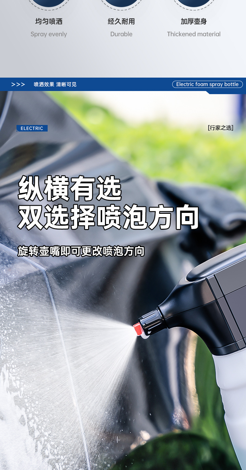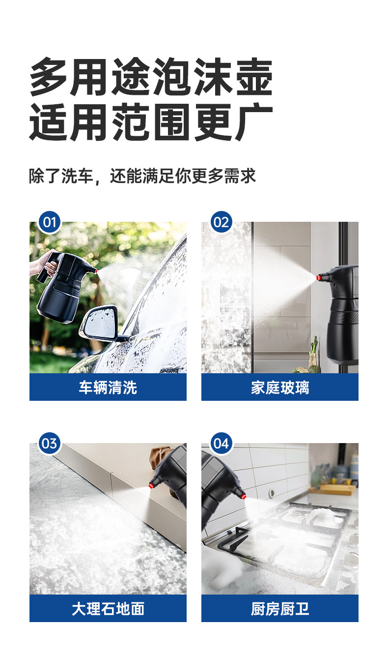 2.喷壶适用于家庭清洁和汽车清洁喷洒无腐蚀性液体。请勿用于喷洒酸液,酒精,汽油等强腐蚀性液体。
