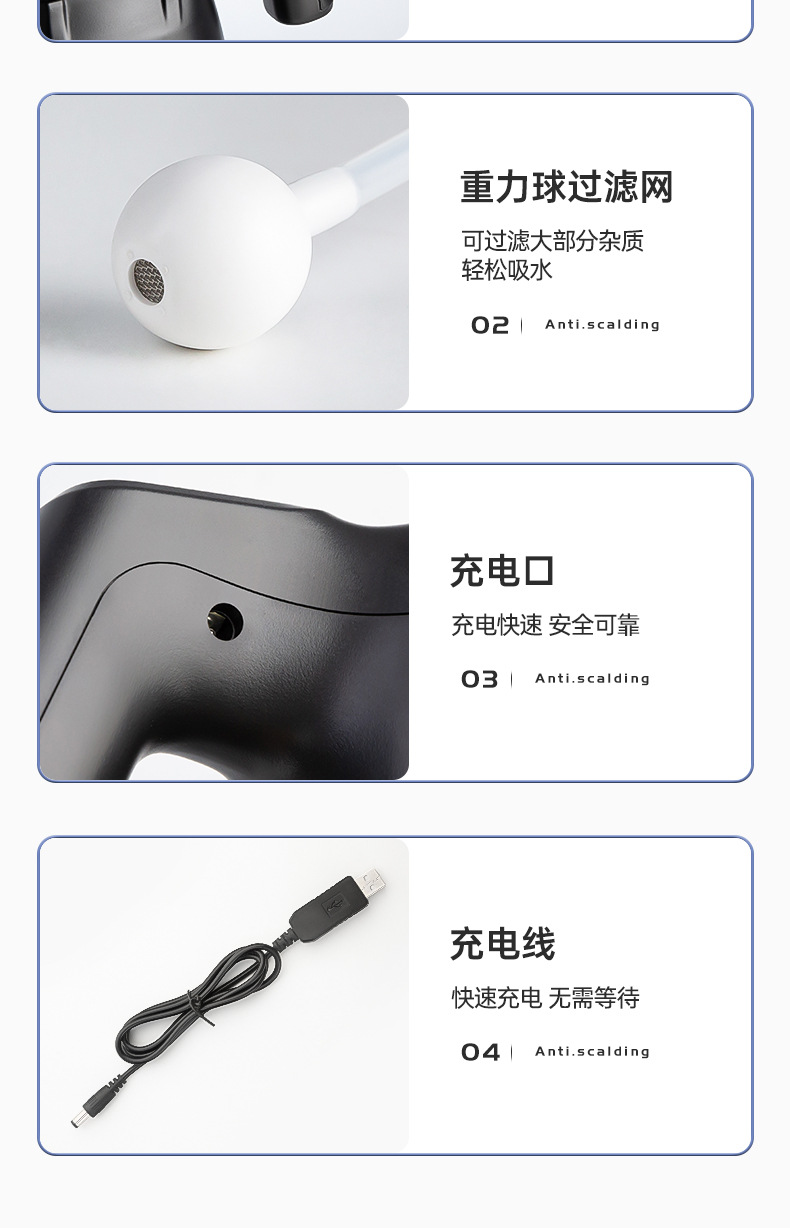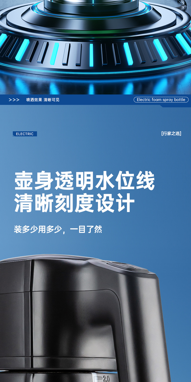 1.喷壶黑色上盖部分由电子元件组成,请勿水洗!!!