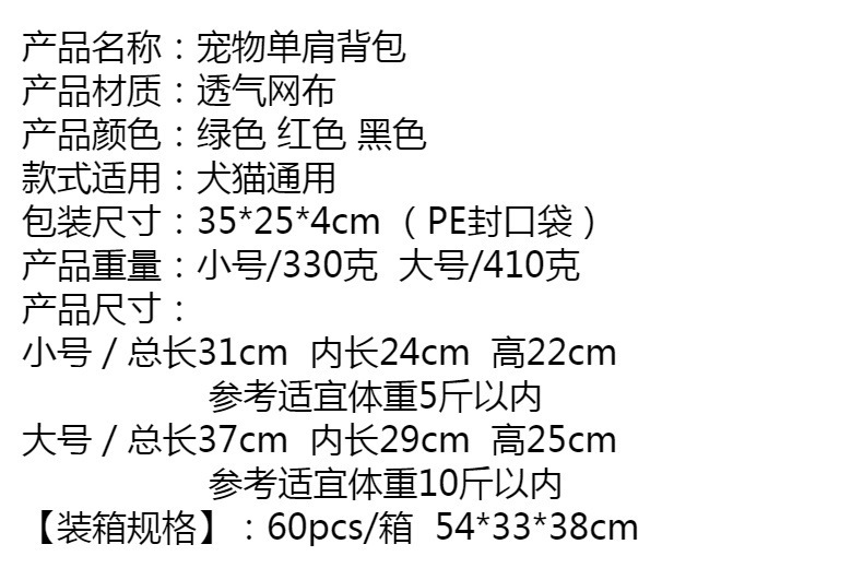 국경을 넘는 반려동물 숄더백, 소형 반려동물 배낭, 통기성 메쉬 강아지 배낭, 외출용 휴대용 크로스백 반려동물 가방