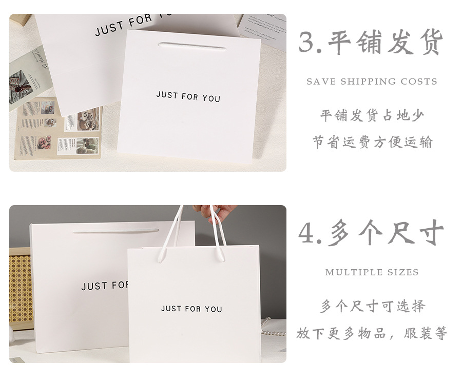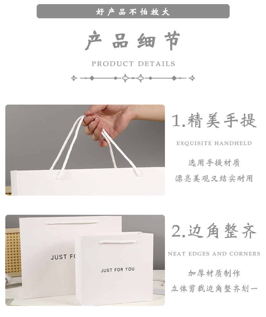 白卡纸:白卡纸坚挺厚实,有较高的挺度、耐破度和平滑度,纸面平整,常用的厚度是210-300克白卡纸,用的最多的是230白卡。用白卡纸印刷出来的纸袋,颜色饱满,纸的质感也非常好,是您定做的首选。