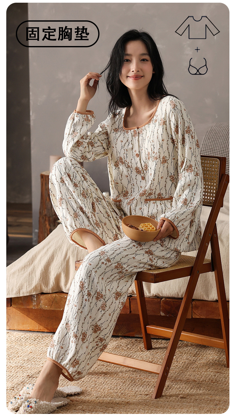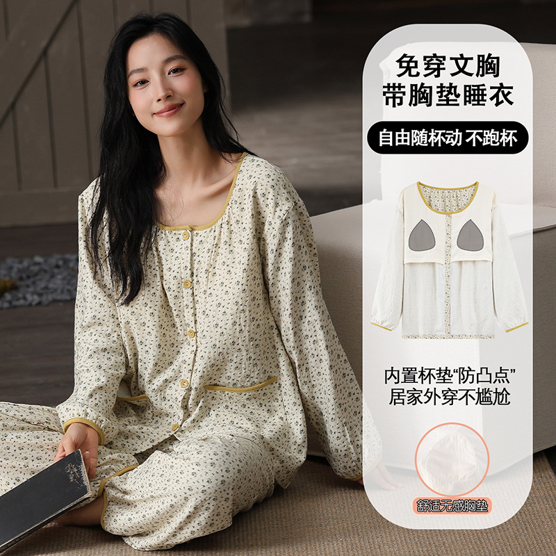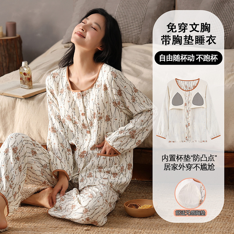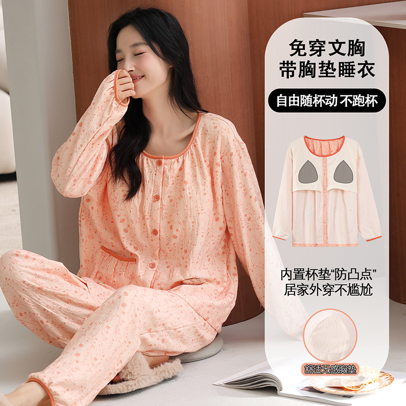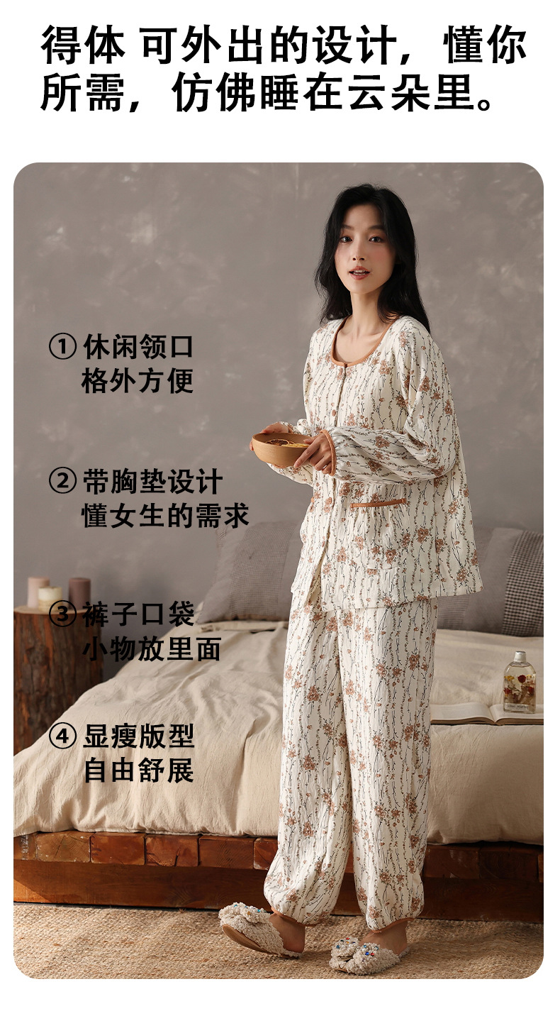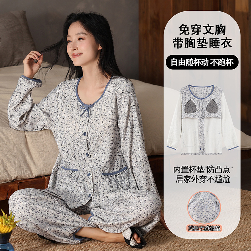 클라우드 코튼 봄과 가을 잠옷 여성용 카디건 홈 의류 집에서 외출 할 가슴이 달린 원피스 편리한 홈 의류 세트스토어 가기