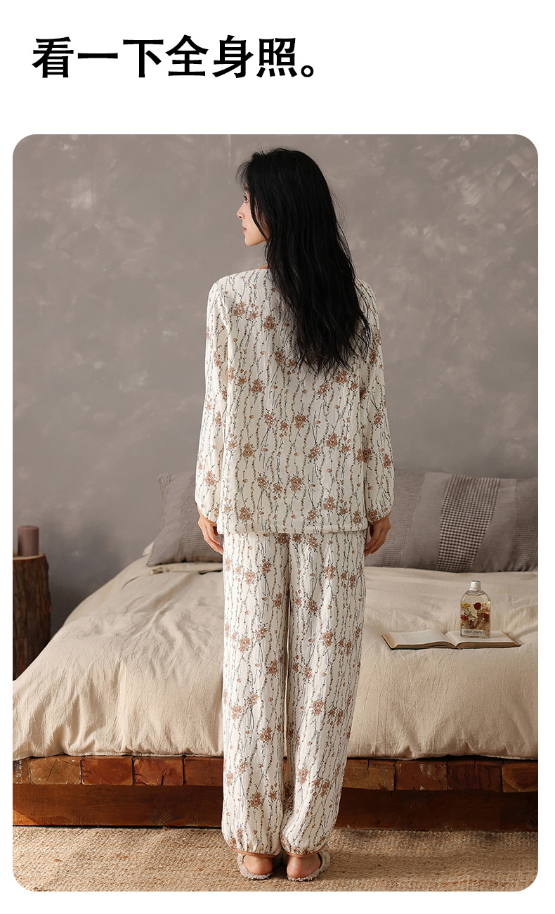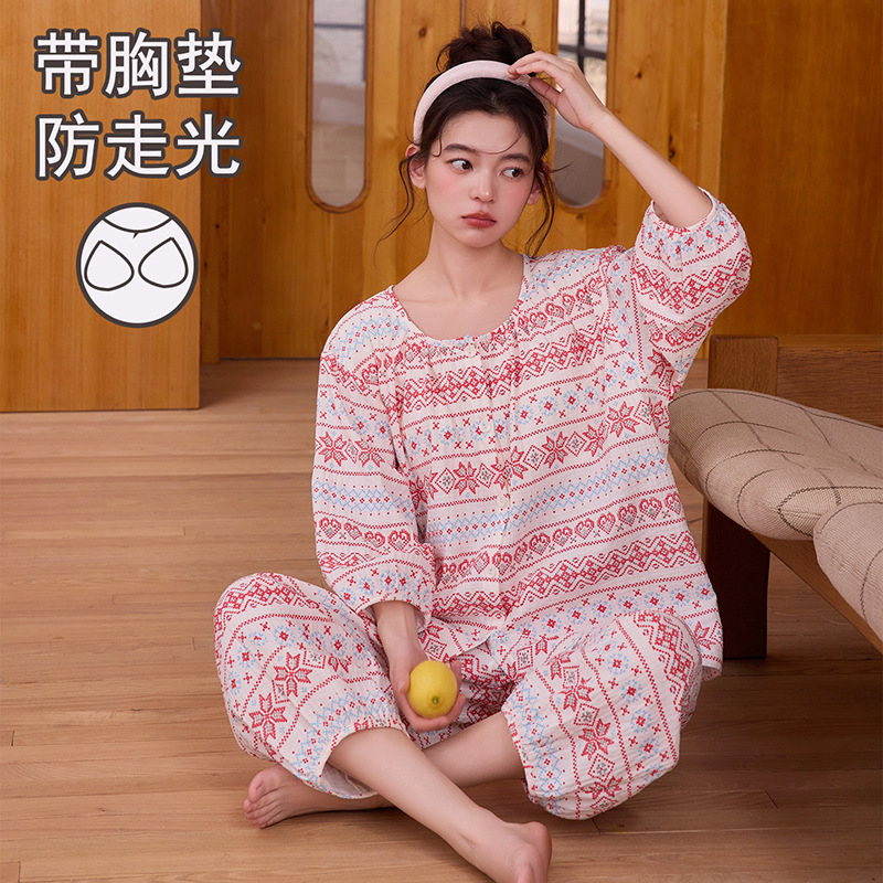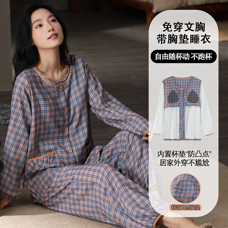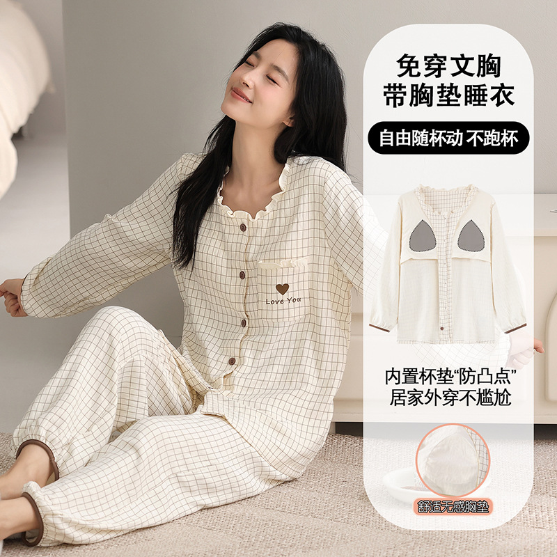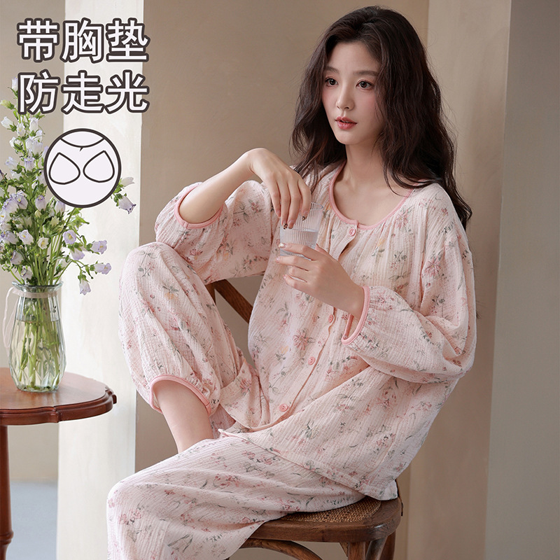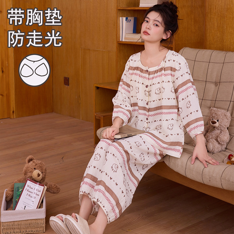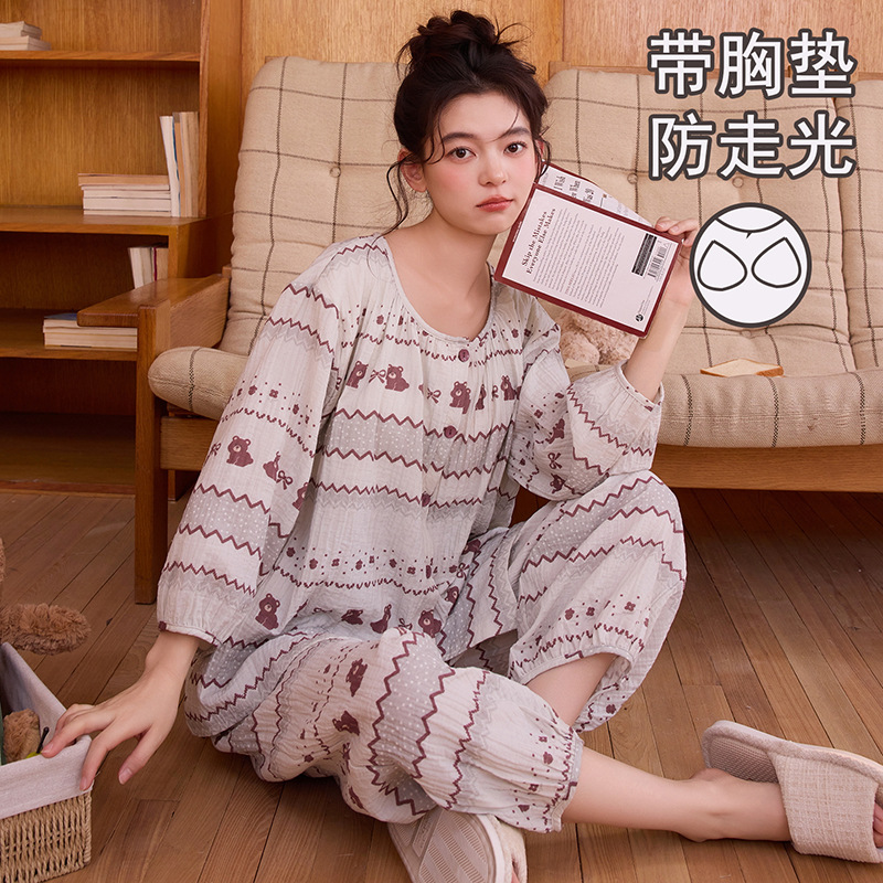 클라우드 코튼 봄과 가을 잠옷 여성용 카디건 홈 의류 집에서 외출 할 가슴이 달린 원피스 편리한 홈 의류 세트스토어 가기