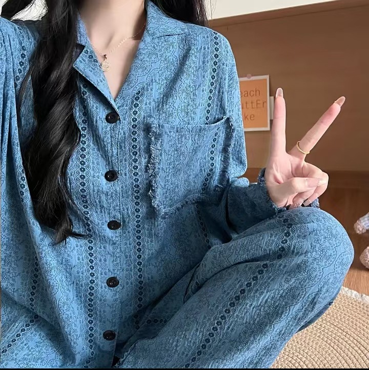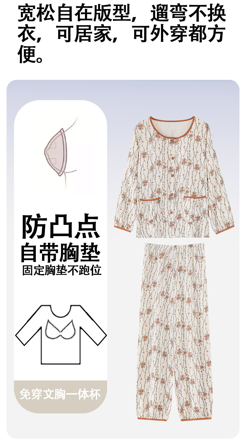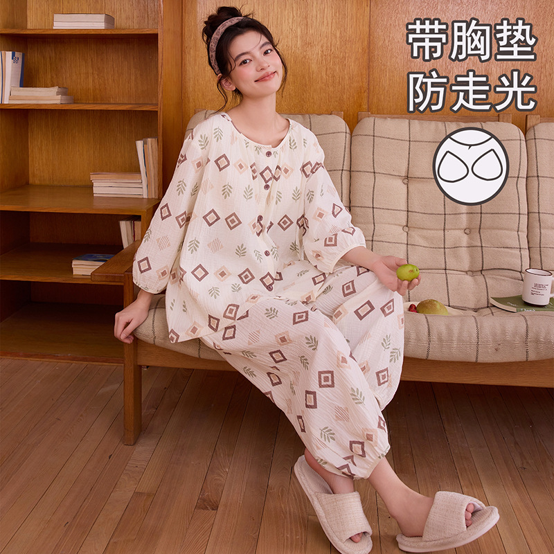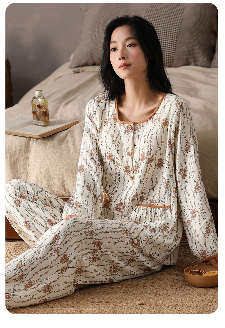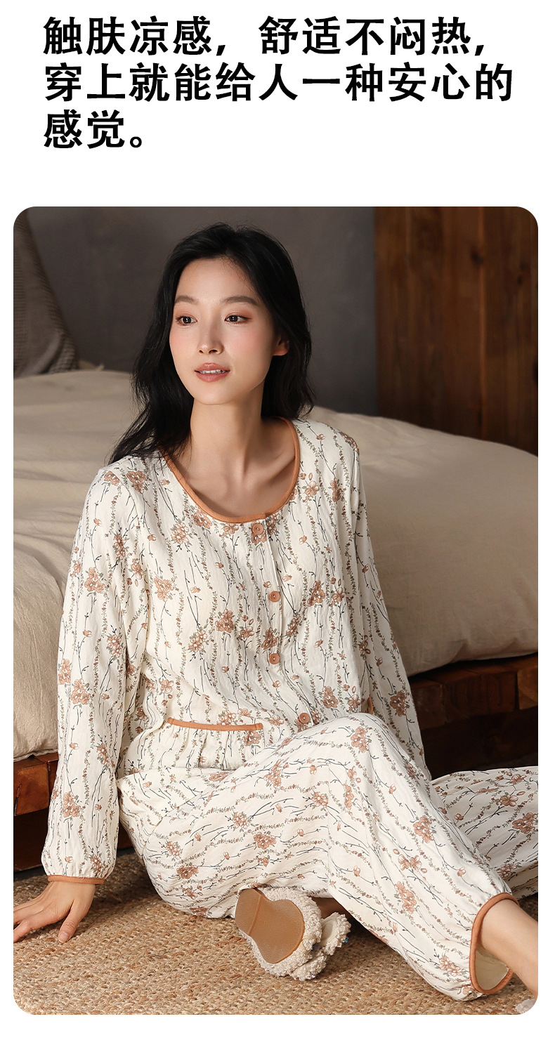클라우드 코튼 봄과 가을 잠옷 여성용 카디건 홈 의류 집에서 외출 할 가슴이 달린 원피스 편리한 홈 의류 세트스토어 가기