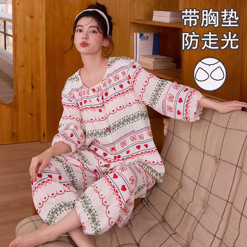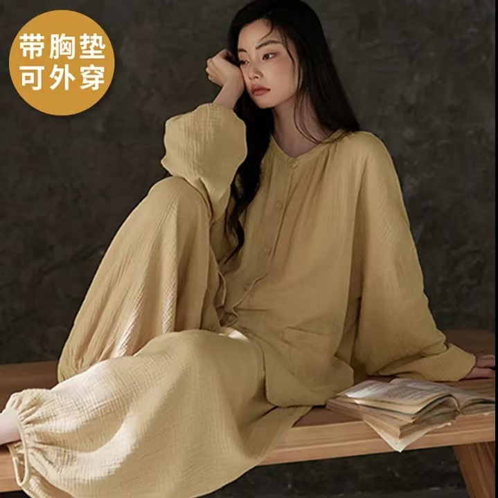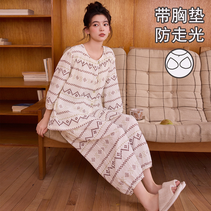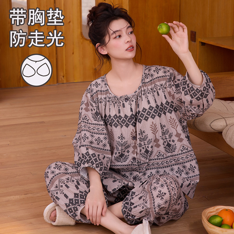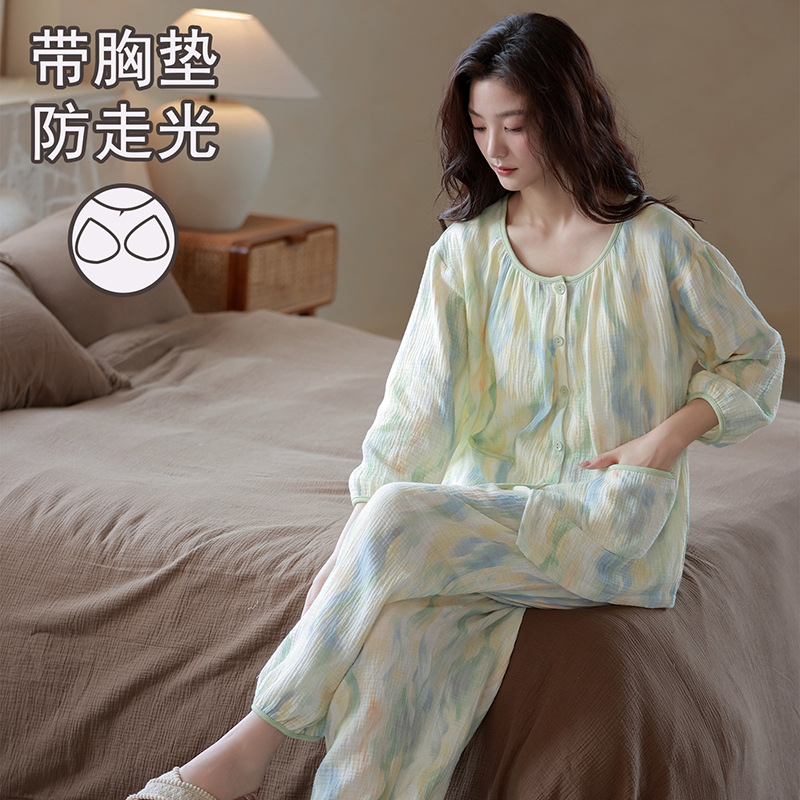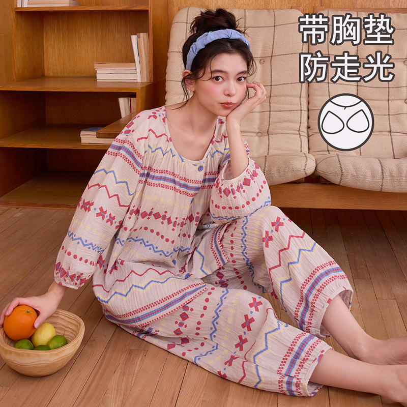 클라우드 코튼 봄과 가을 잠옷 여성용 카디건 홈 의류 집에서 외출 할 가슴이 달린 원피스 편리한 홈 의류 세트