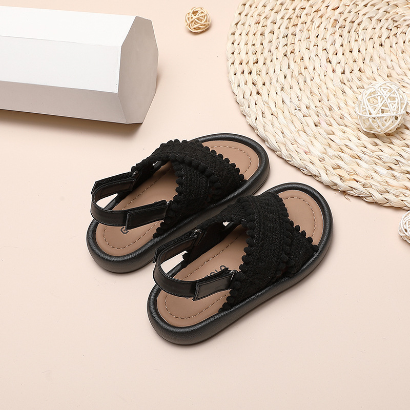소녀 샌들 2024 여름 중소 어린이 및 큰 어린이를위한 새로운 캐주얼 소프트 솔 학생 복고풍 편안한 윈드 비치
