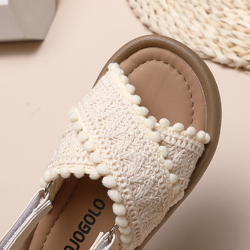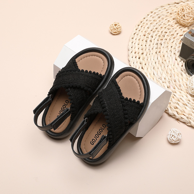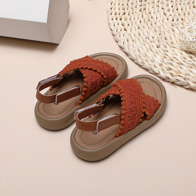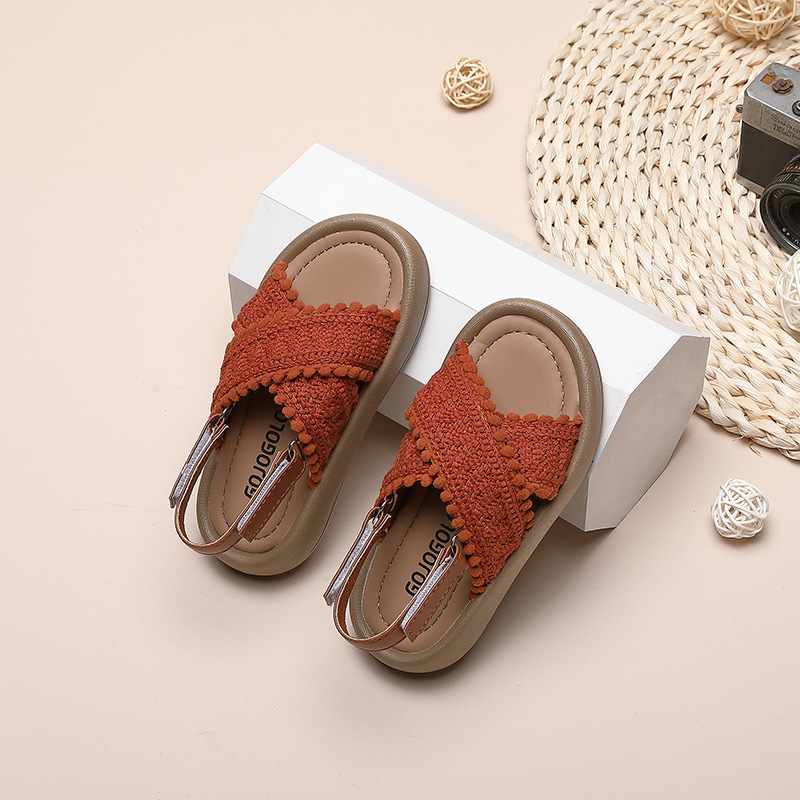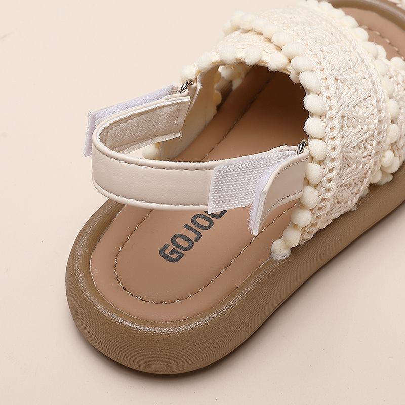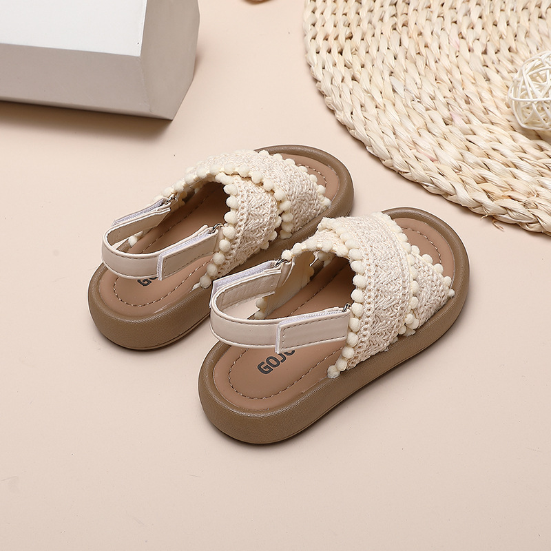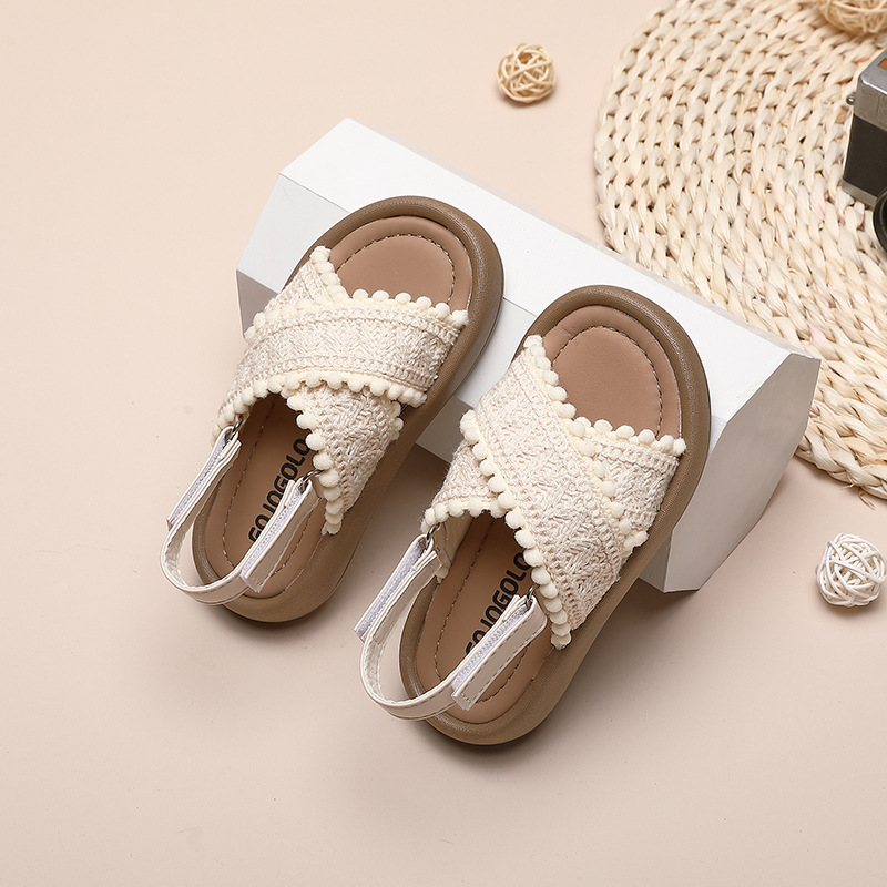소녀 샌들 2024 여름 중소 어린이 및 큰 어린이를위한 새로운 캐주얼 소프트 솔 학생 복고풍 편안한 윈드 비치스토어 가기