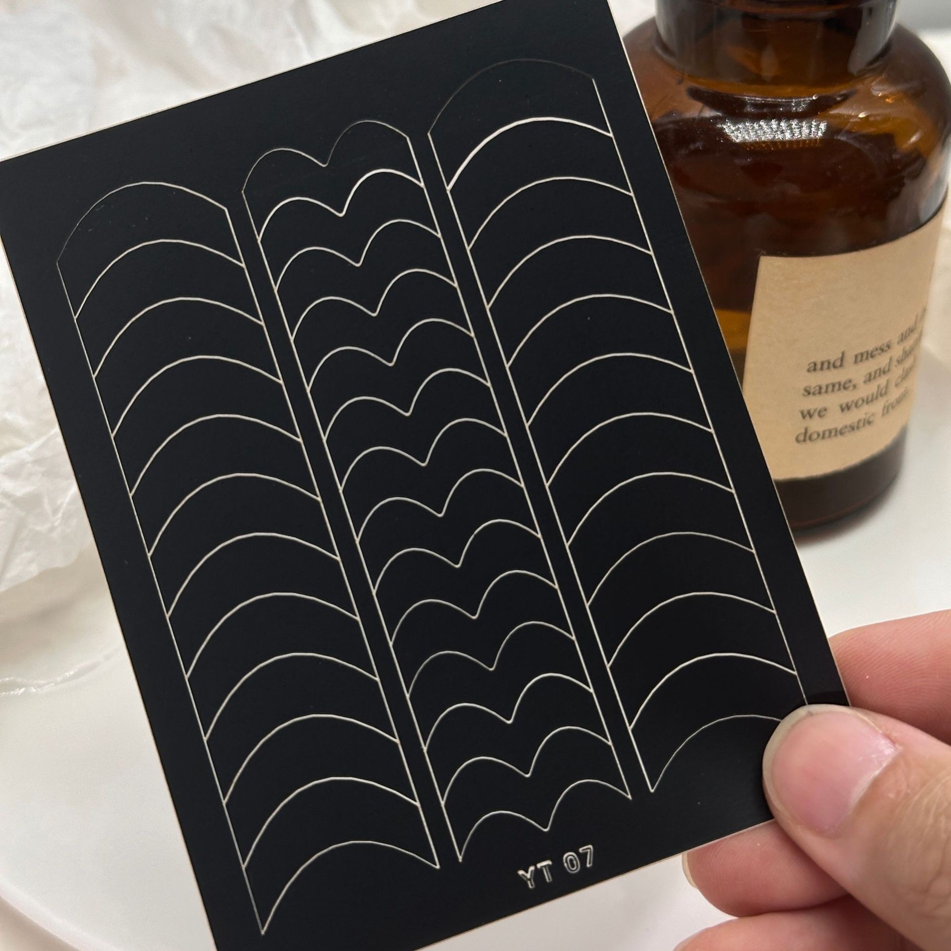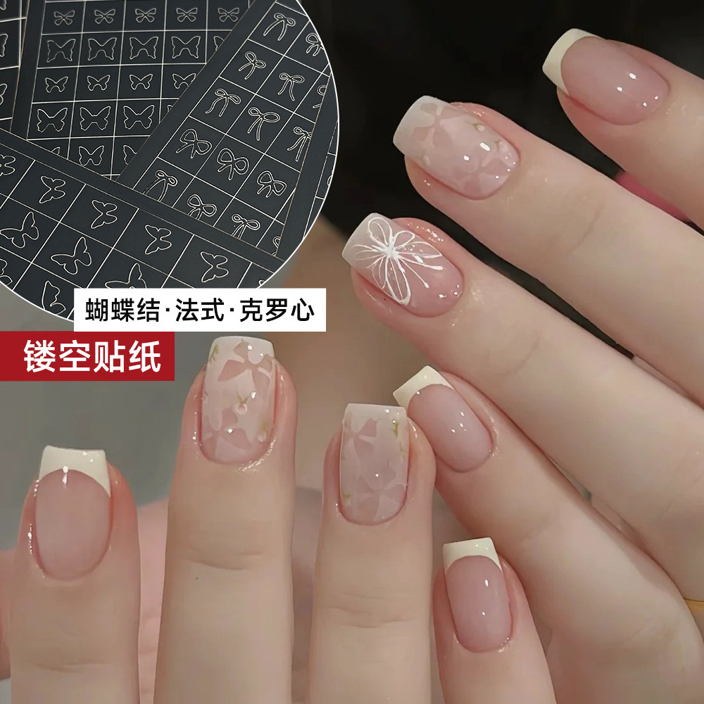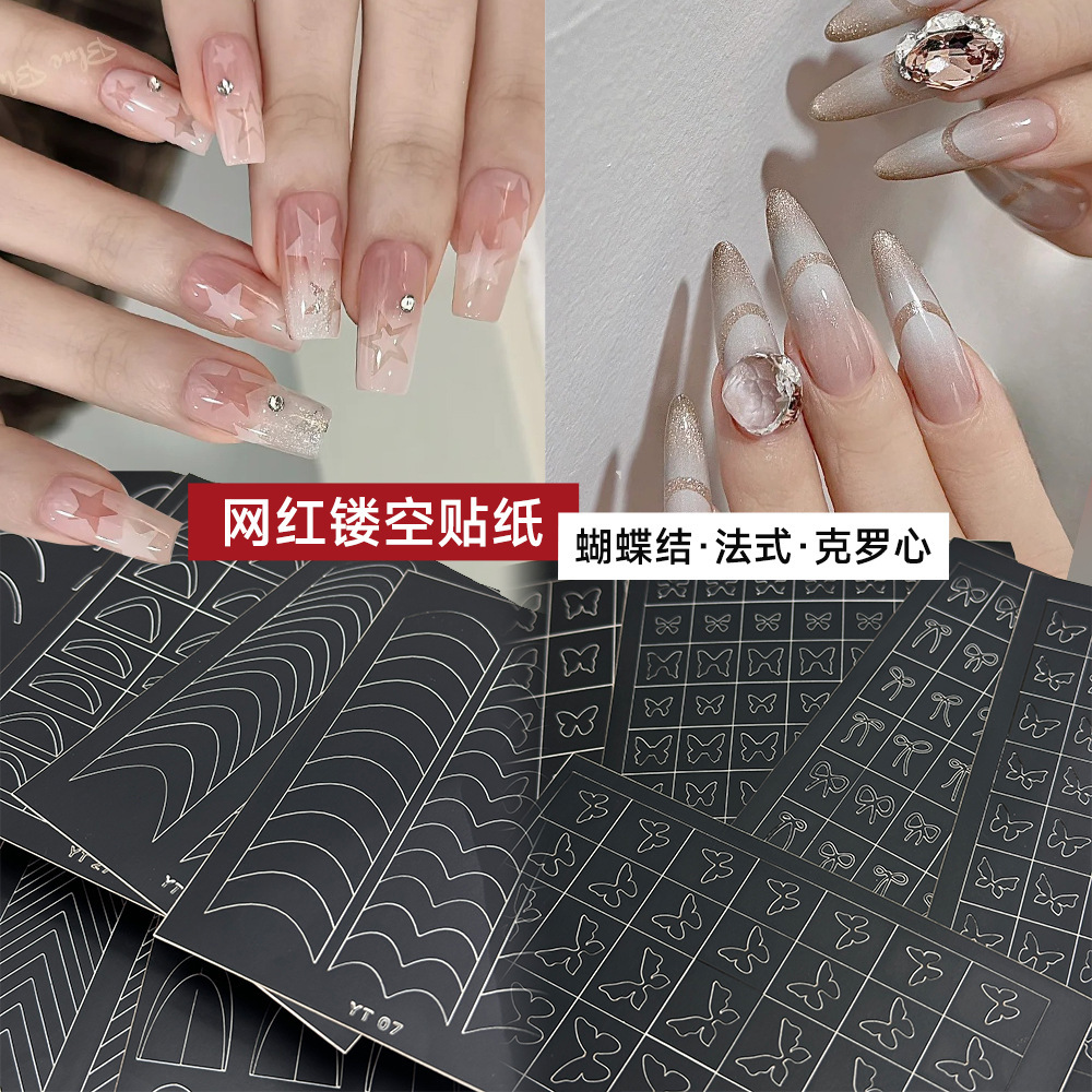 새로운 중공 프랑스 네일 아트 스티커 스프레이 페인팅 템플릿 그라디언트 스폰지 보조 스티커 스마일 스트라이프 착용 네일 스티커