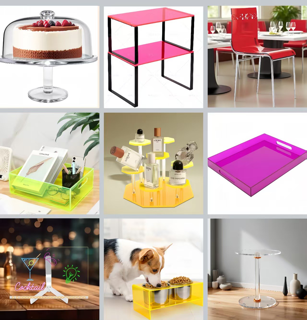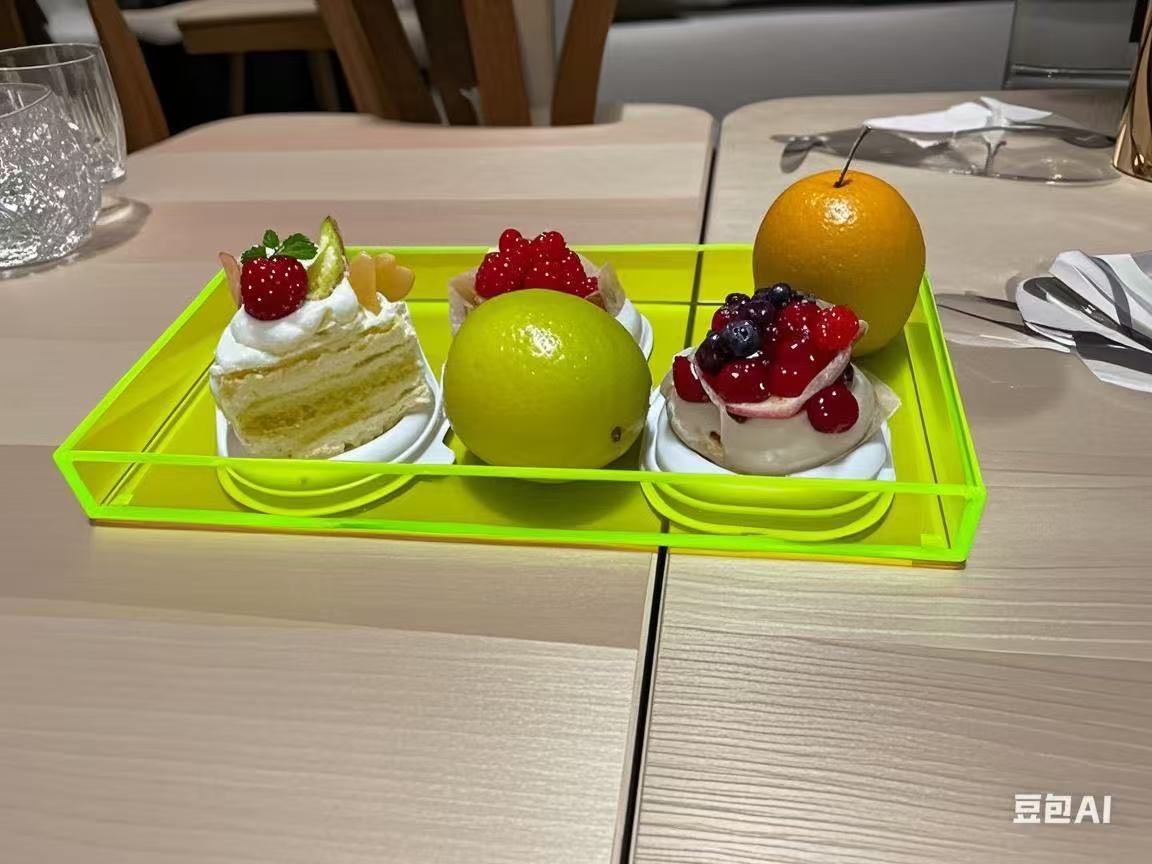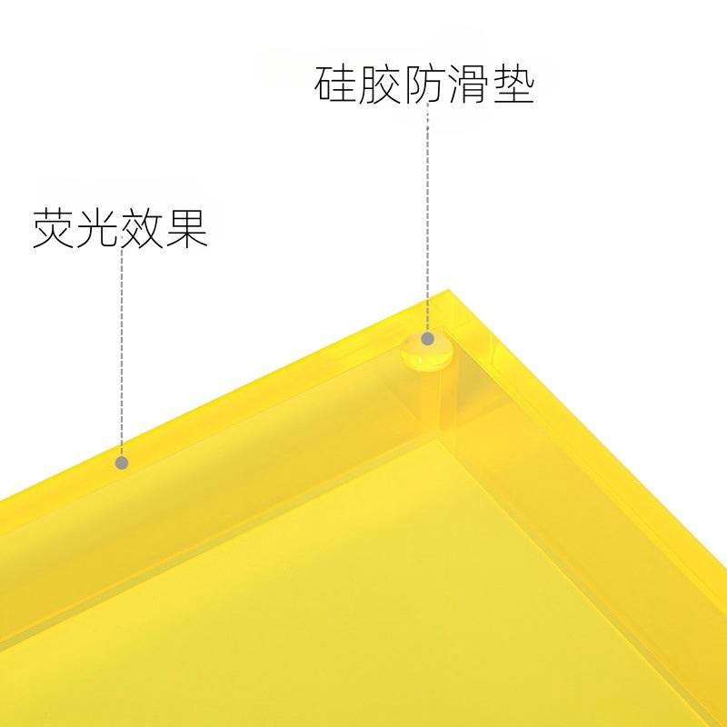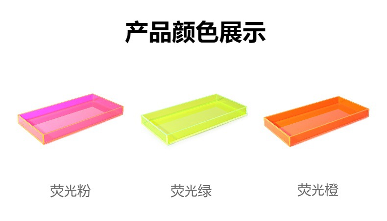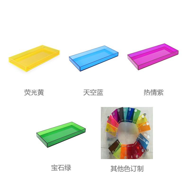 采用透明彩色和莹光色加工订制而成的小托盘, 用5MM的厚度,45度的斜接和四边导角工艺精致加工而成。 底部用了透明的硅胶垫以防止刮划。每个细节都是用心去做。 也是用简单的产品彰显出精美的工艺细节。