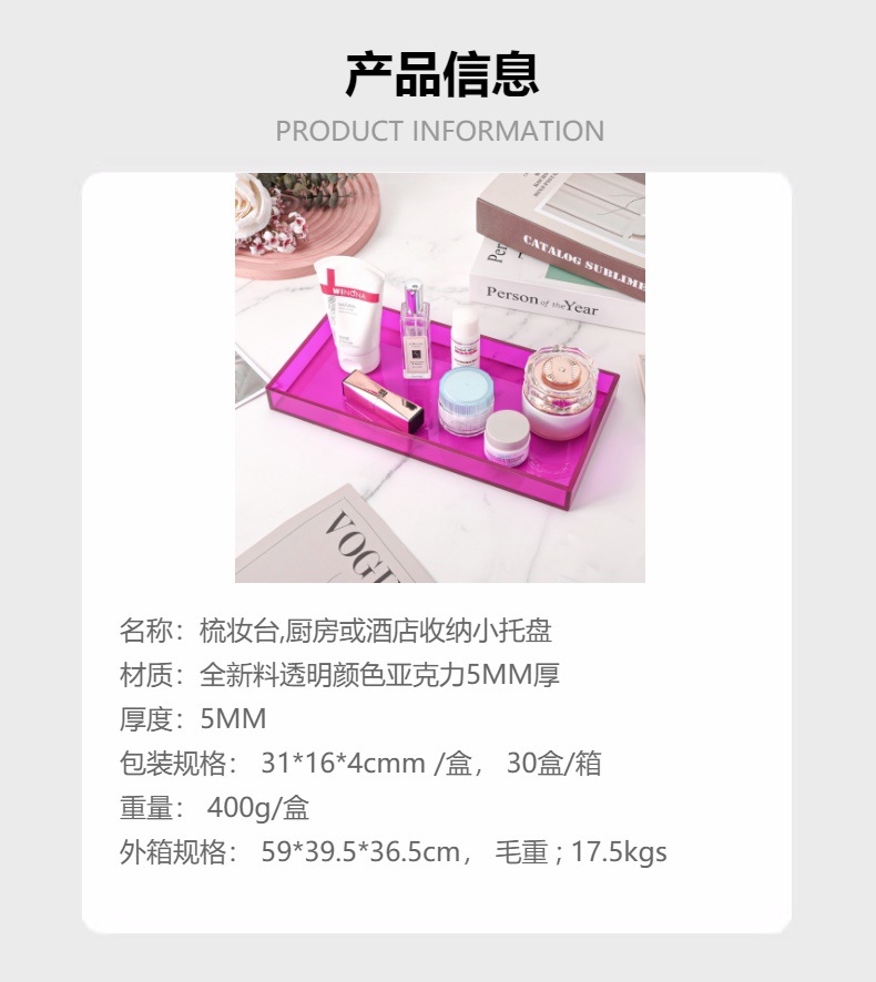 彩色亚克力梳妆台,浴室或厨房收纳小托盘