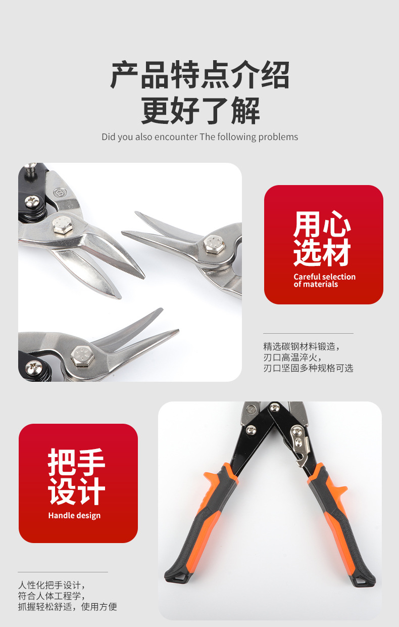 직선형 우회전 좌회전 레버로 힘을 절약하는 항공용 가위, 경강 뼈대, 산업용 스테인리스 철판용 10inch 항공용 가위스토어 가기