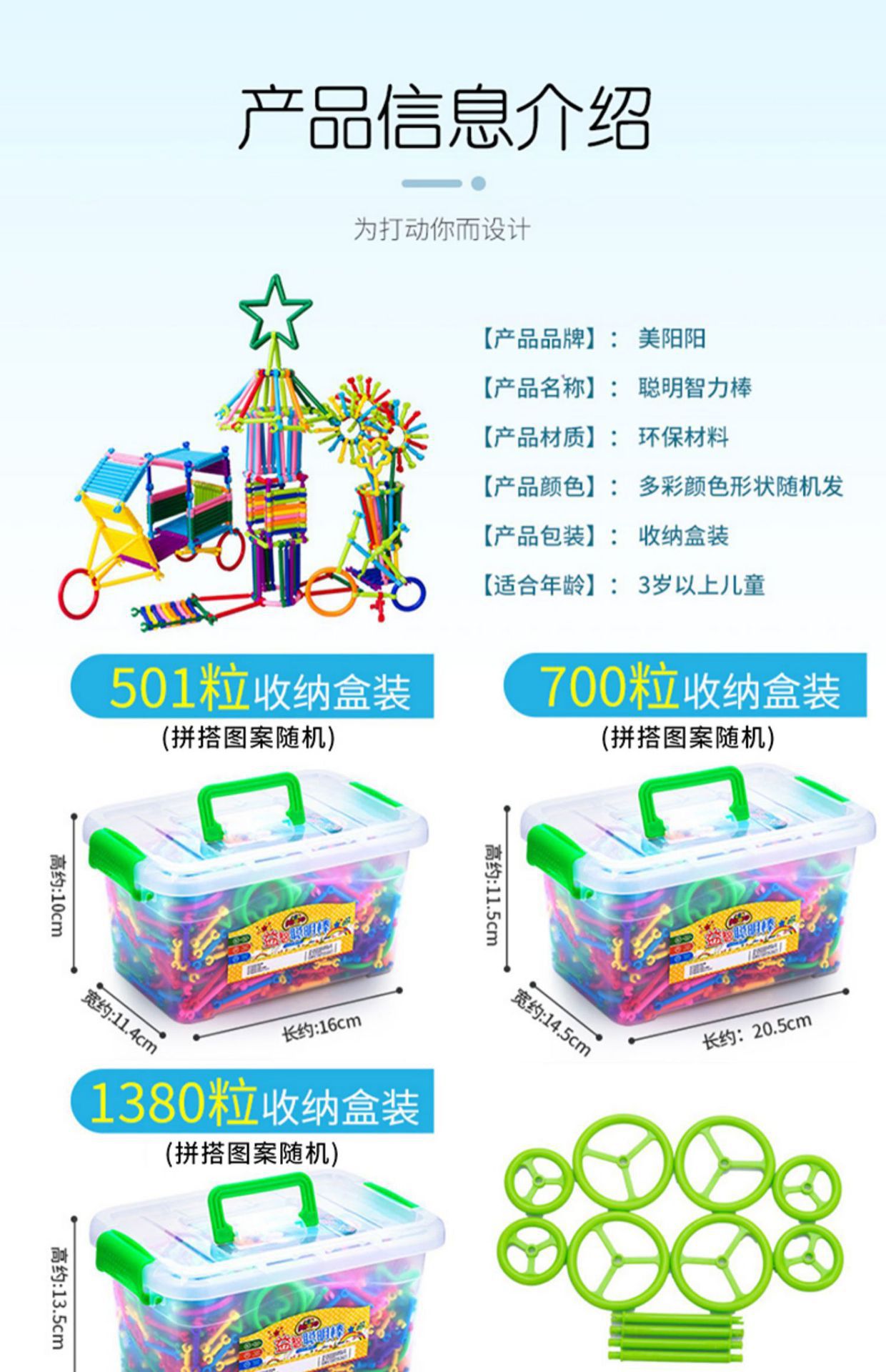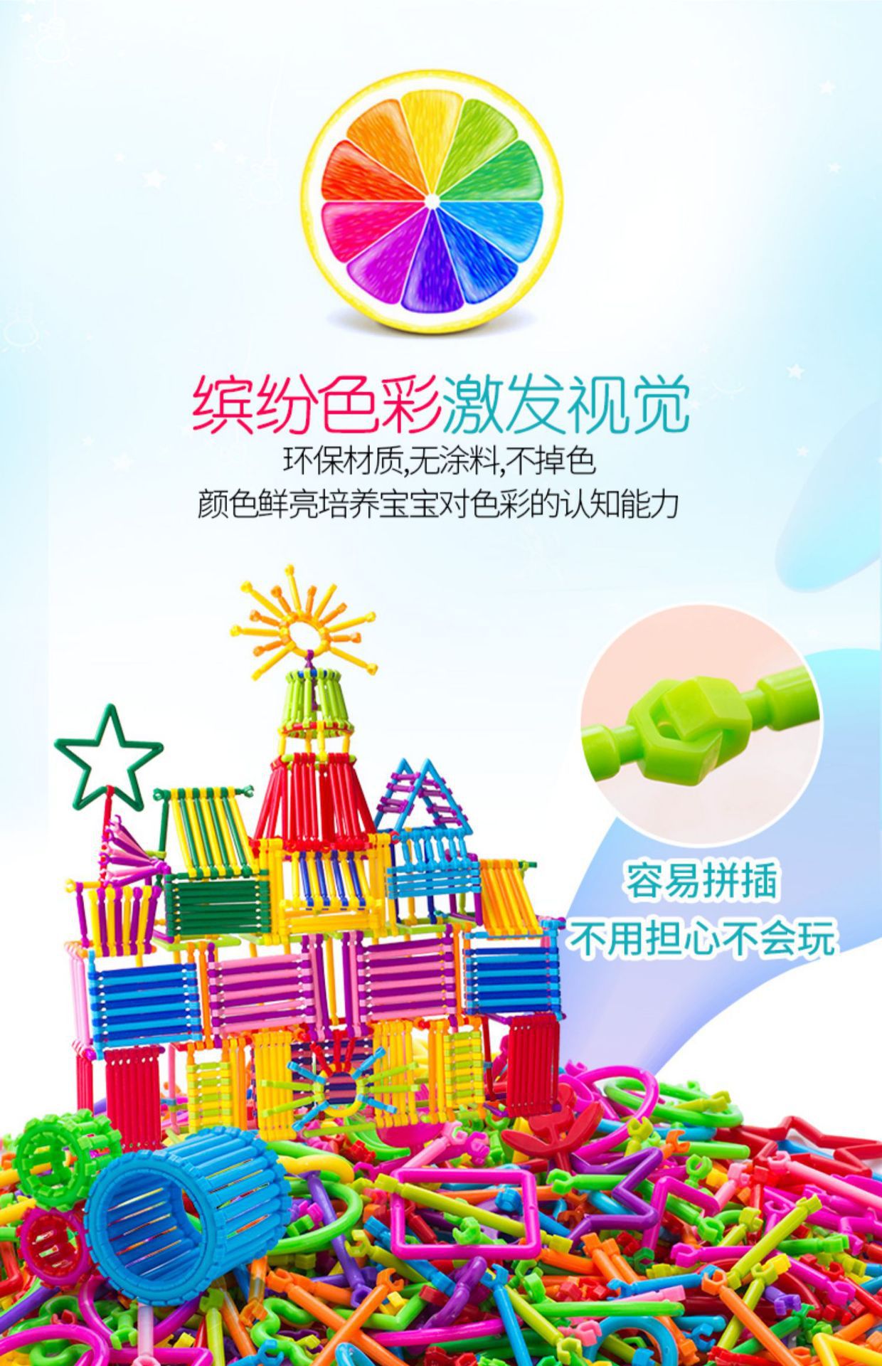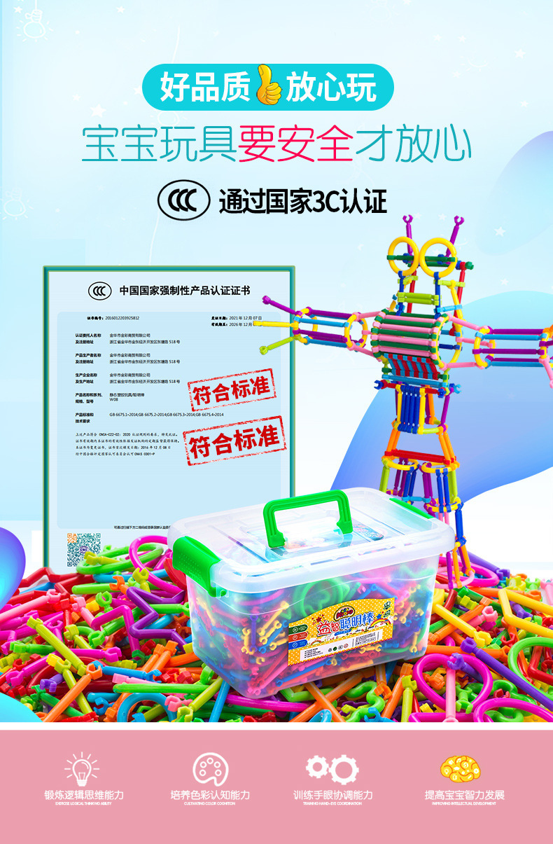 어린이 교육용 마법 지능봉 블록 조립 완구 DIY 조립식 유치원 부모-자녀 상호작용