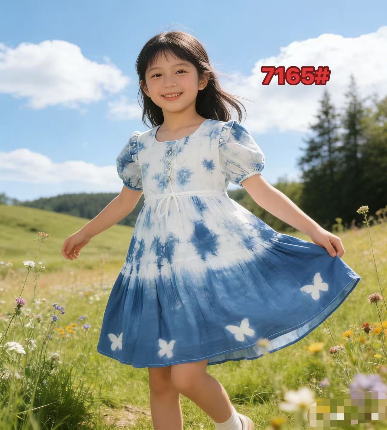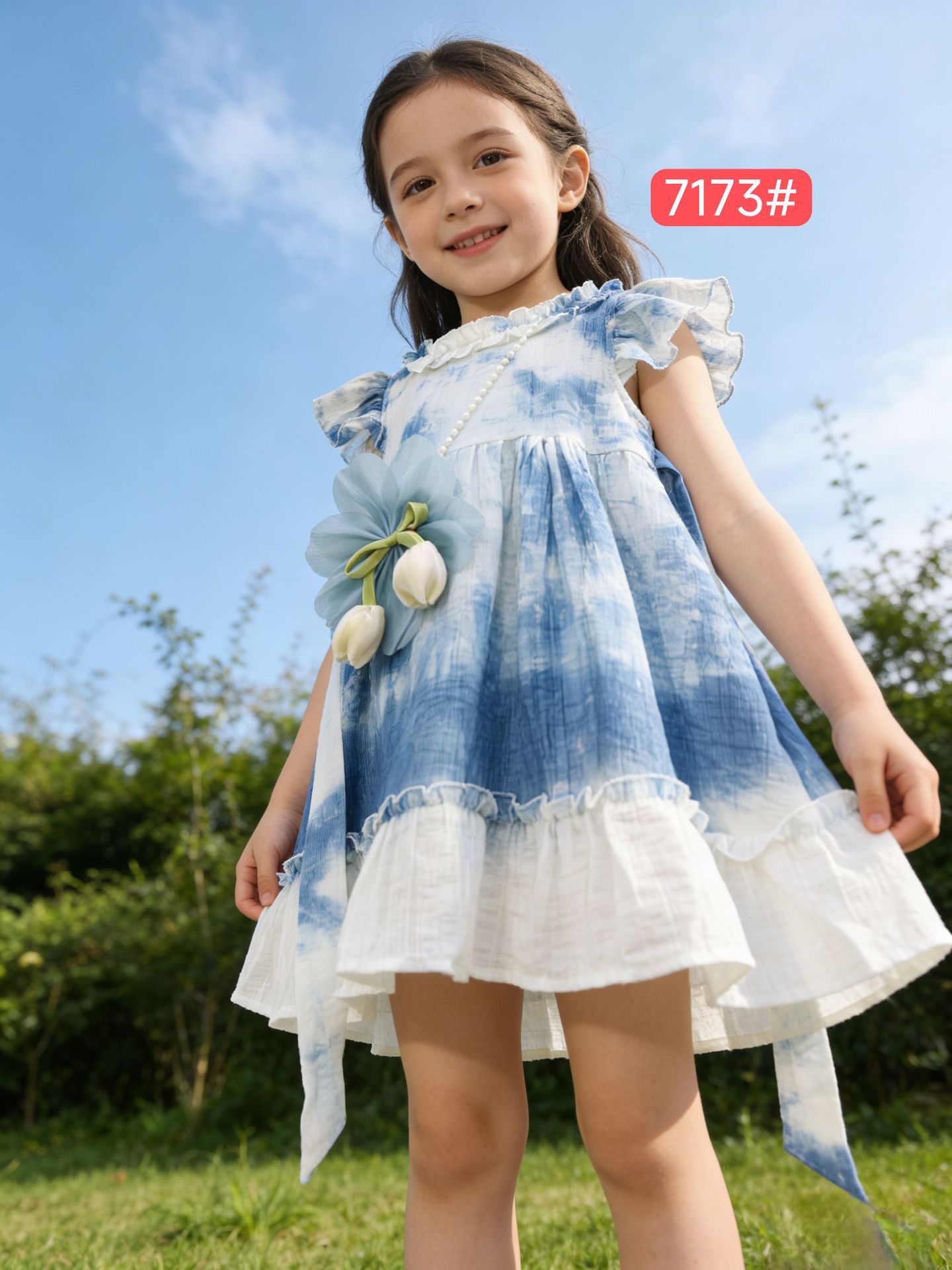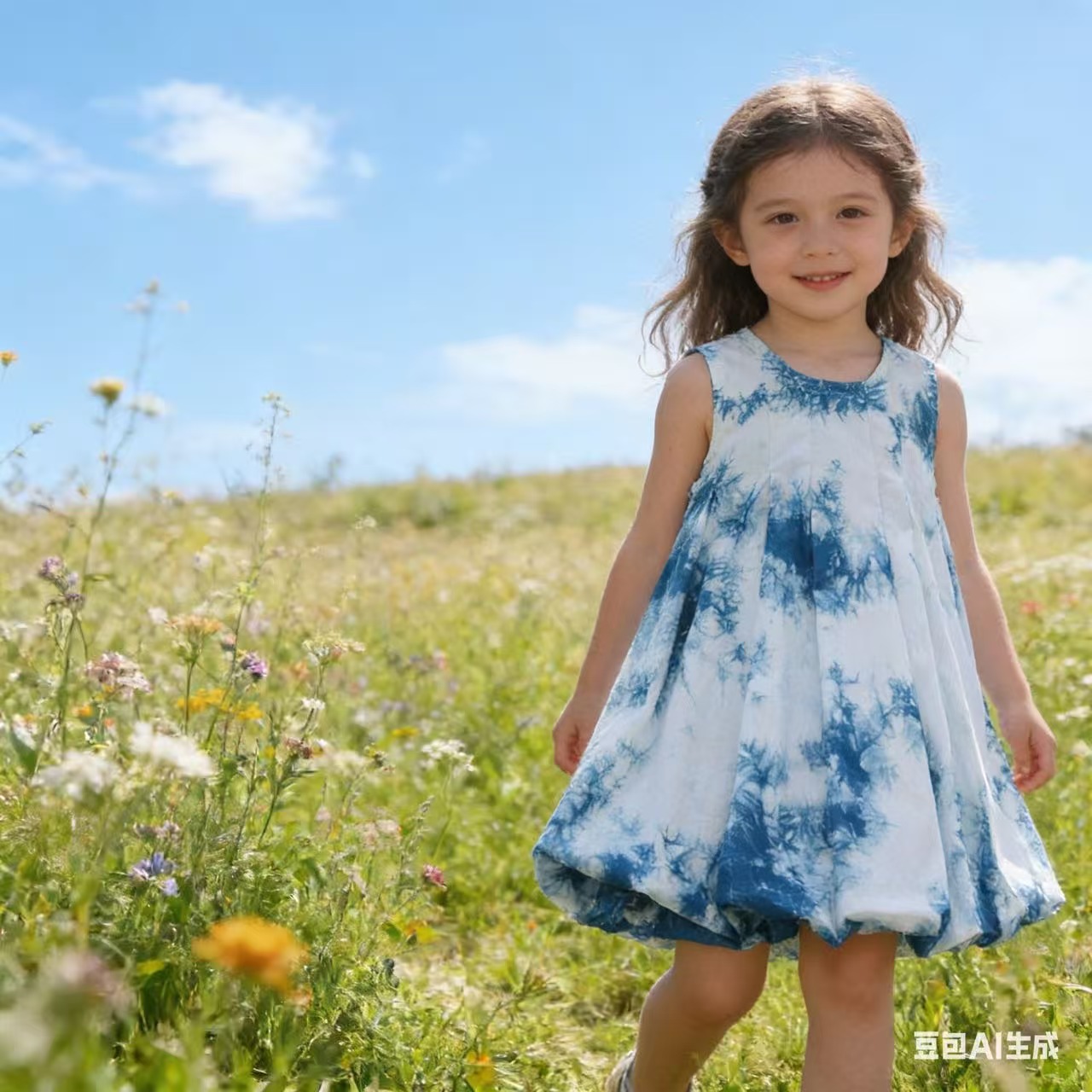 여자 드레스 여름 보드 뿌리 식물 수제 타이 염색 어린이 드레스 공주 드레스 스커트 어린이 소녀 의류