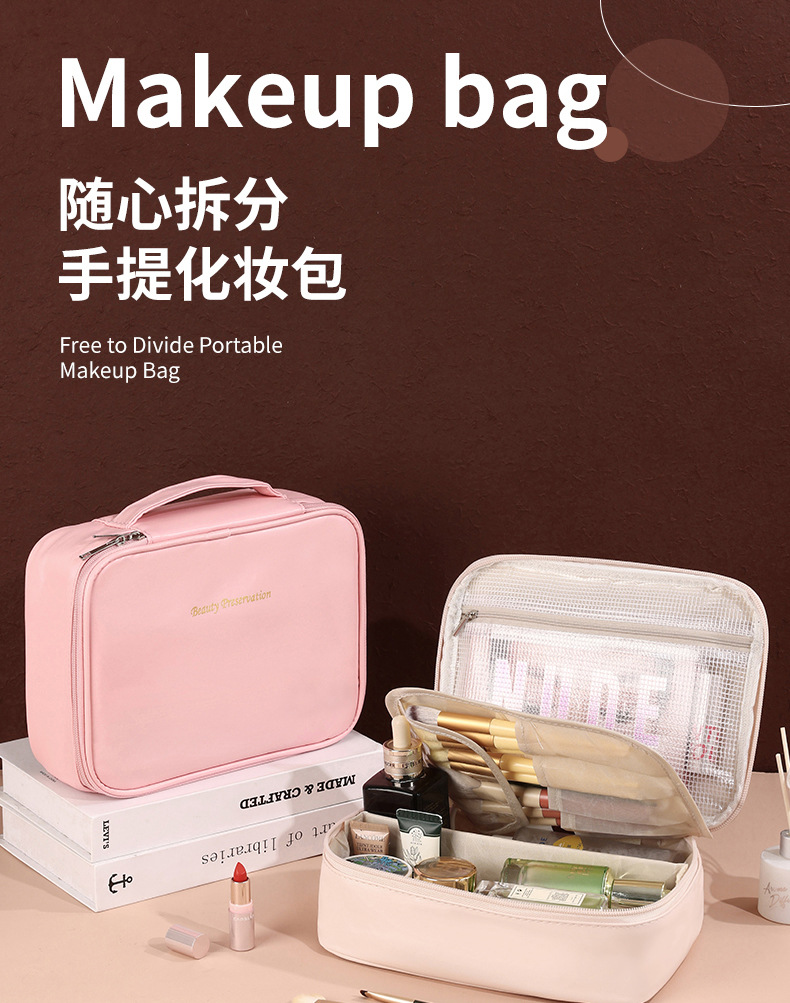 국경을 넘는 새로운 디자인의 분리형 화장품 가방, 방수 대용량 수납 가방, 휴대용 자유분할 세면도구 가방