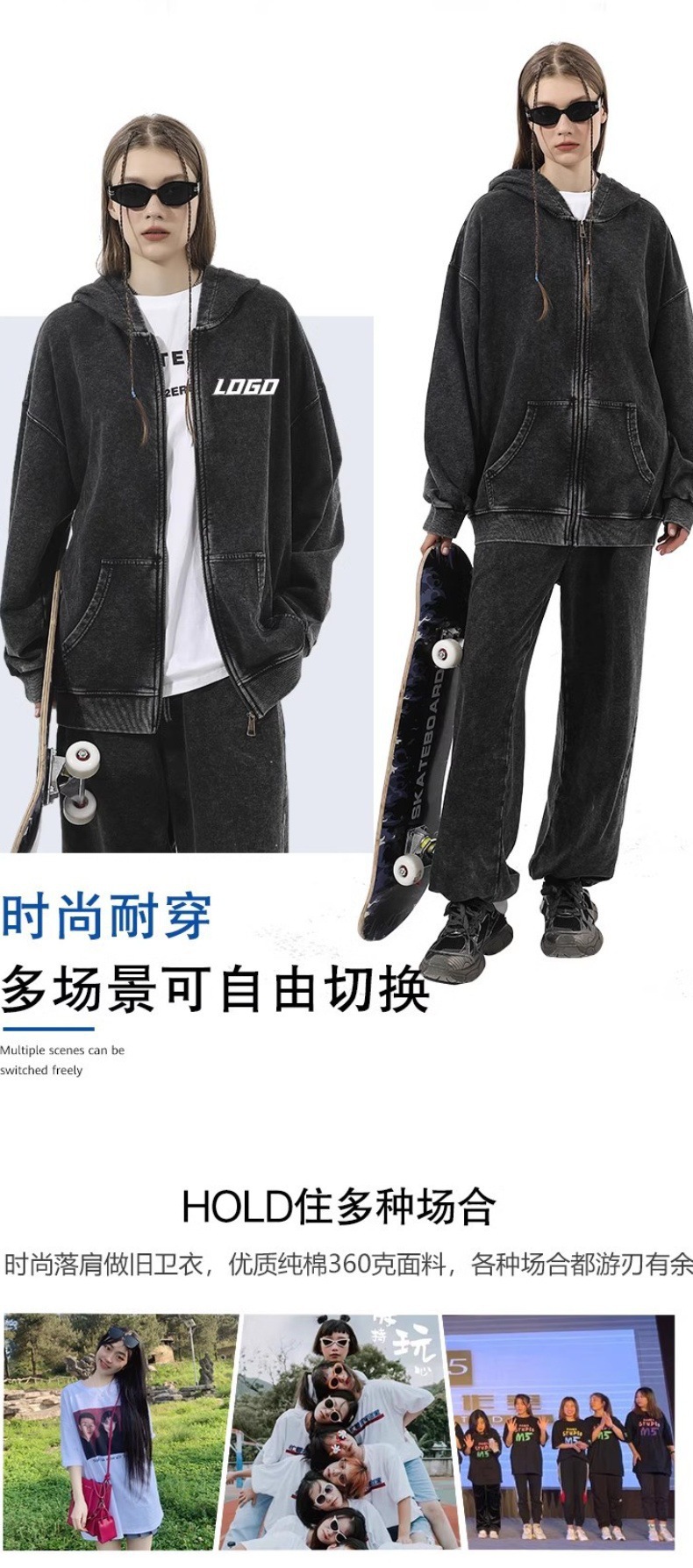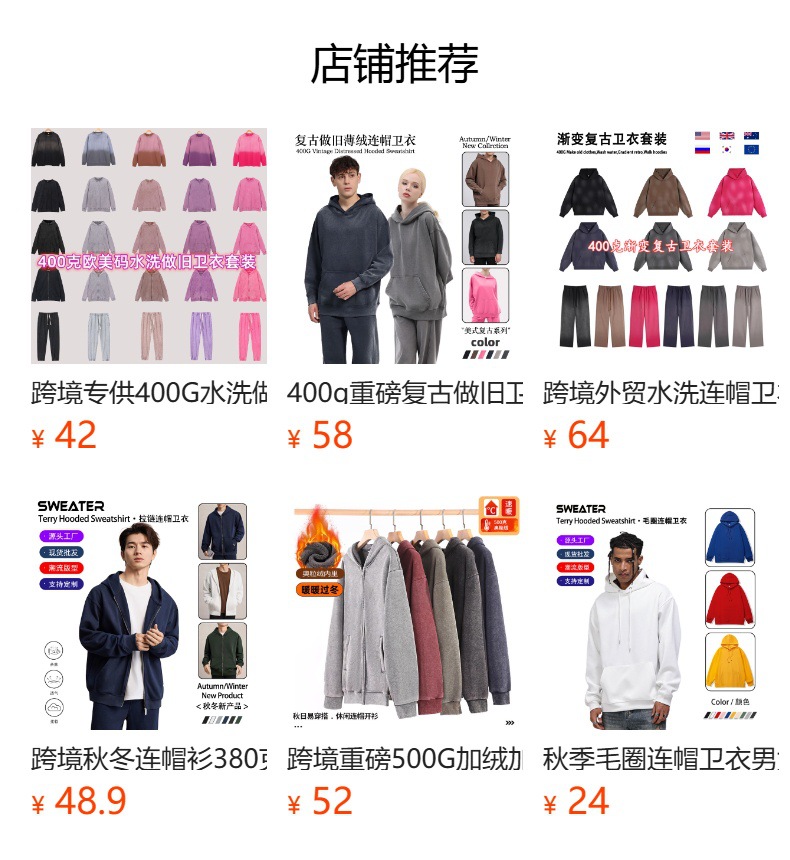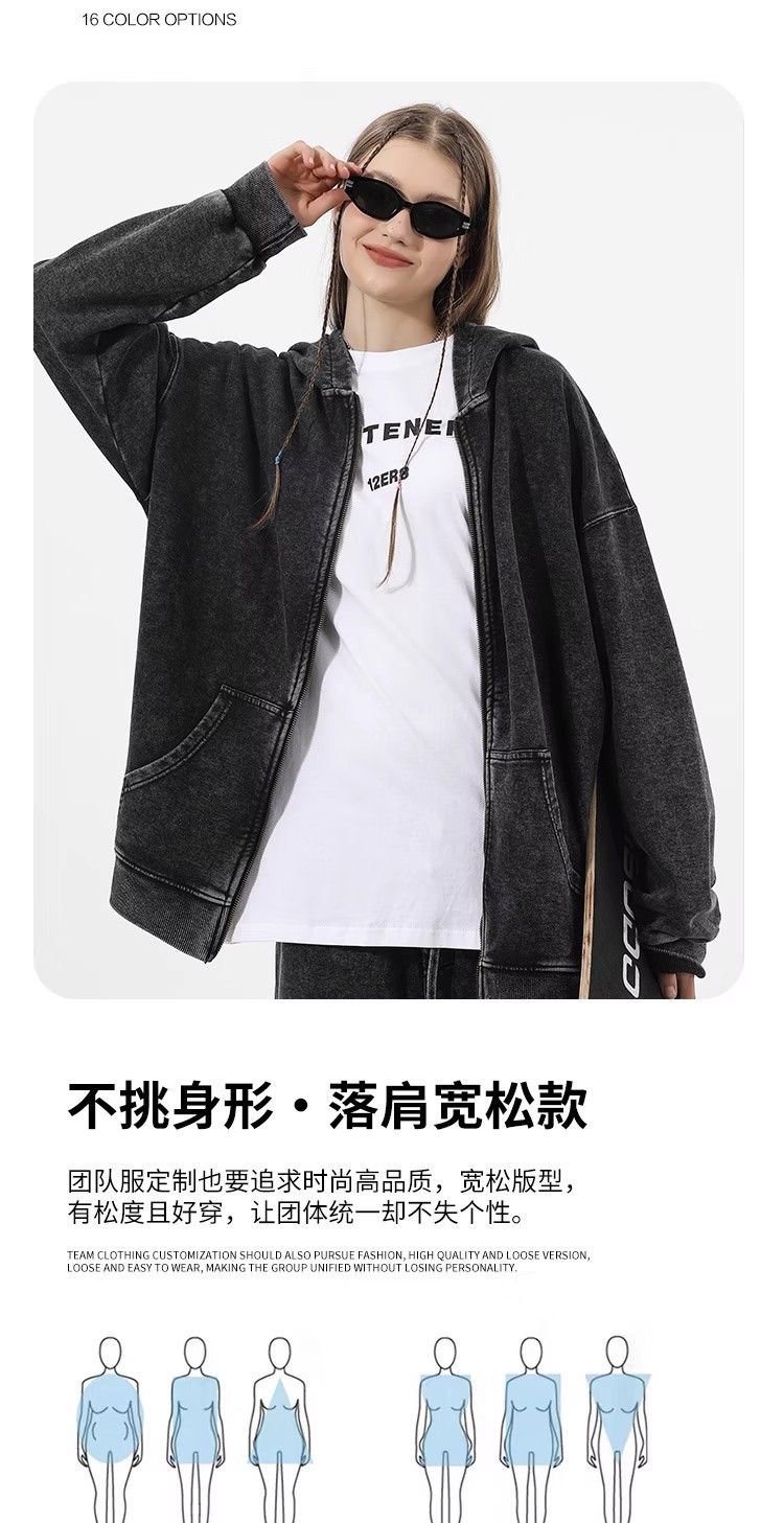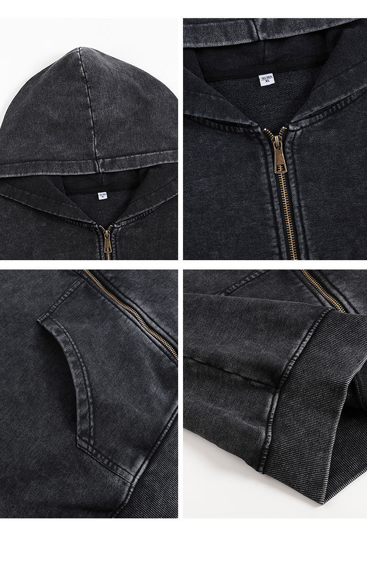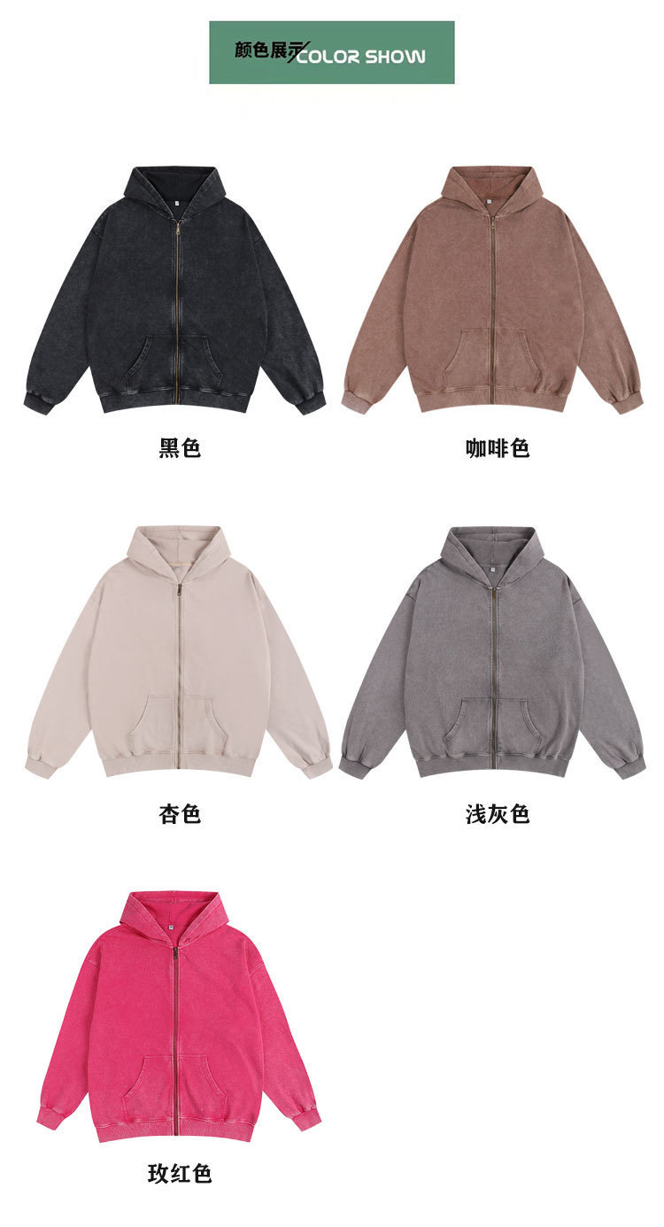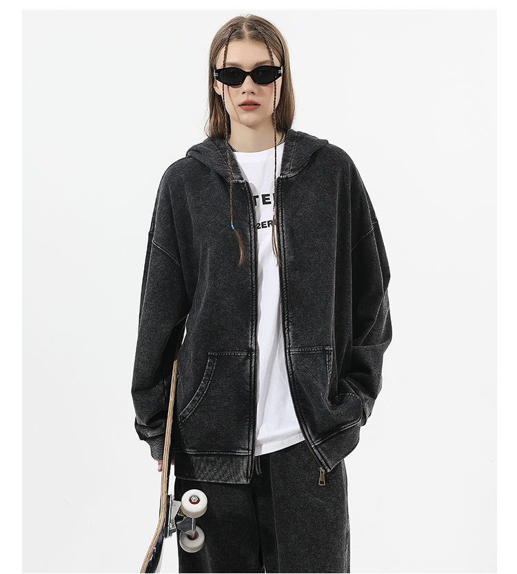 크로스보더 레트로 빈티지 후드티와 스웨트팬츠 커플용 지퍼 후드티 350G 아메리칸 스타일 워싱 후드티 세트스토어 가기