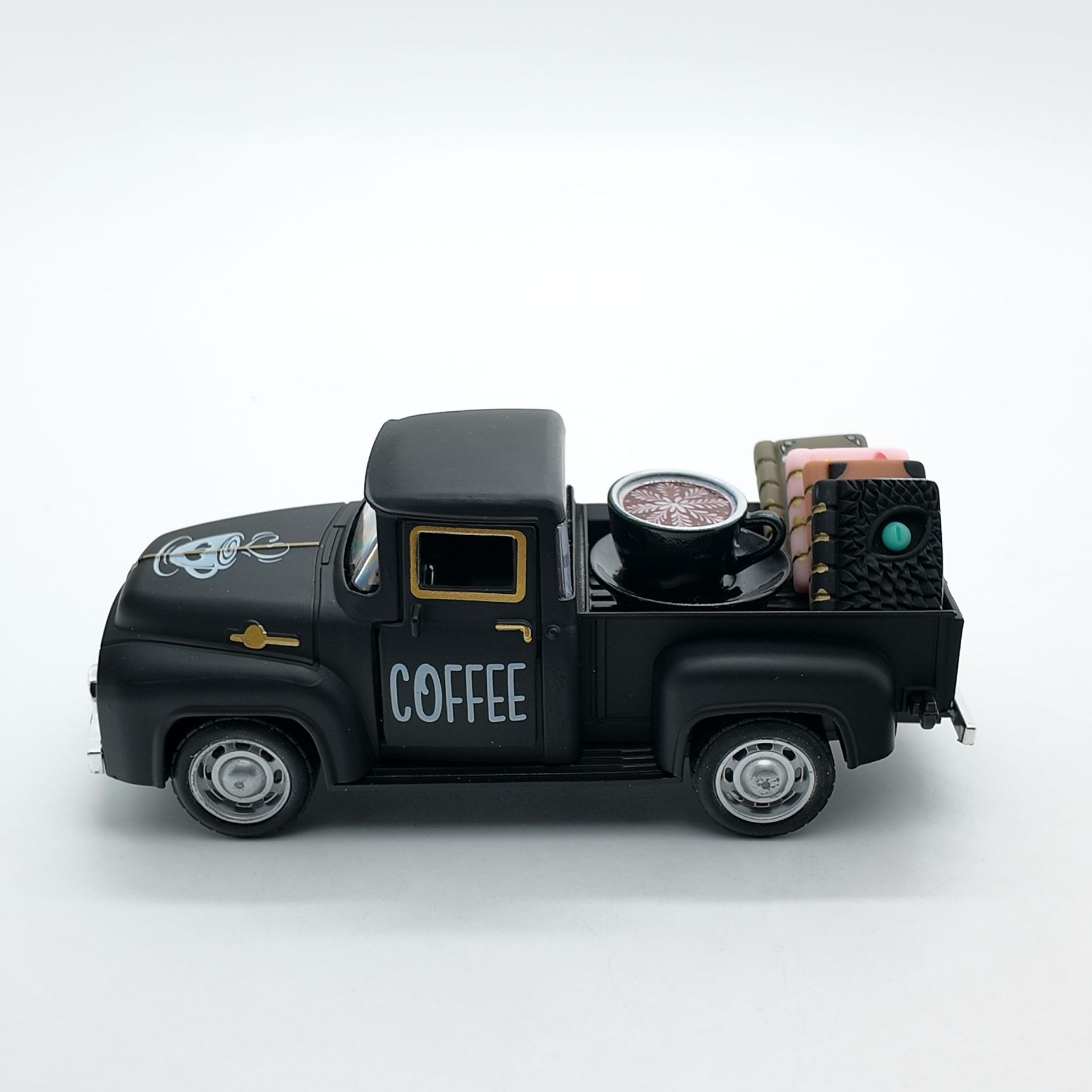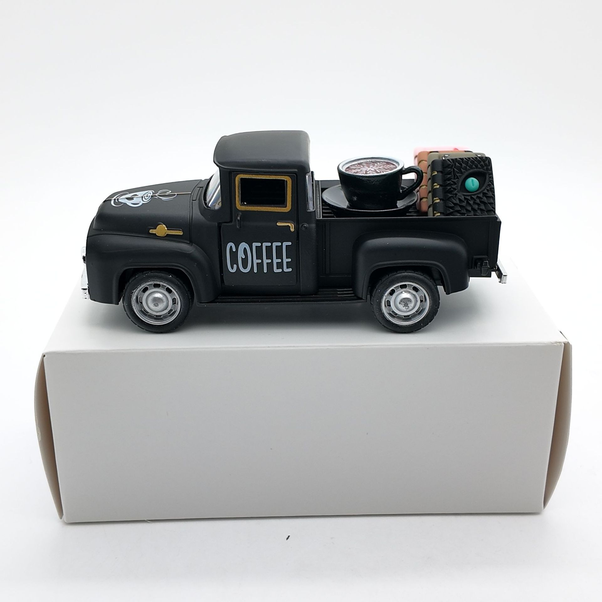 • 블랙 픽업트럭 12.5cm + 커피 1세트 + 책 4권(밀봉된 흰색 상자)