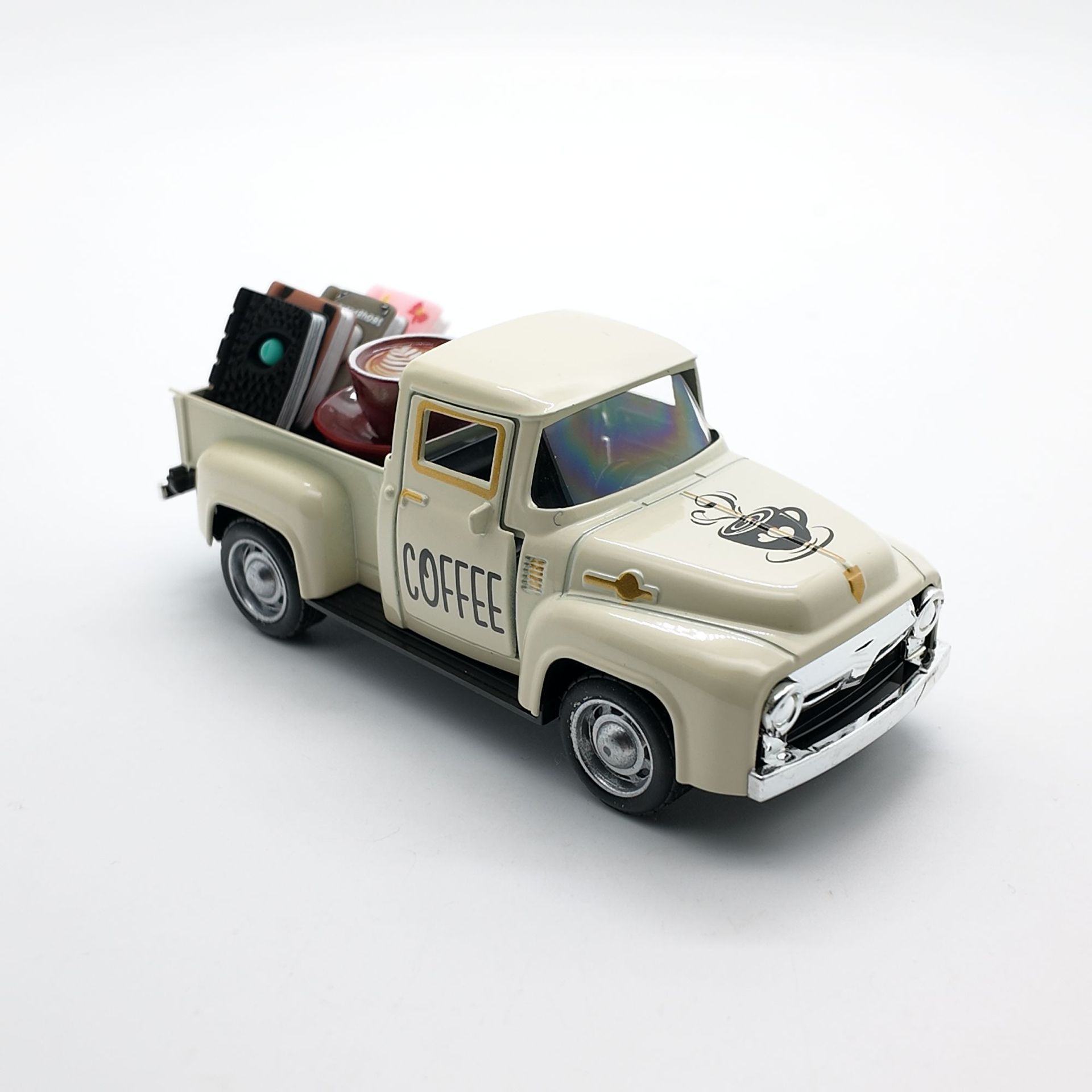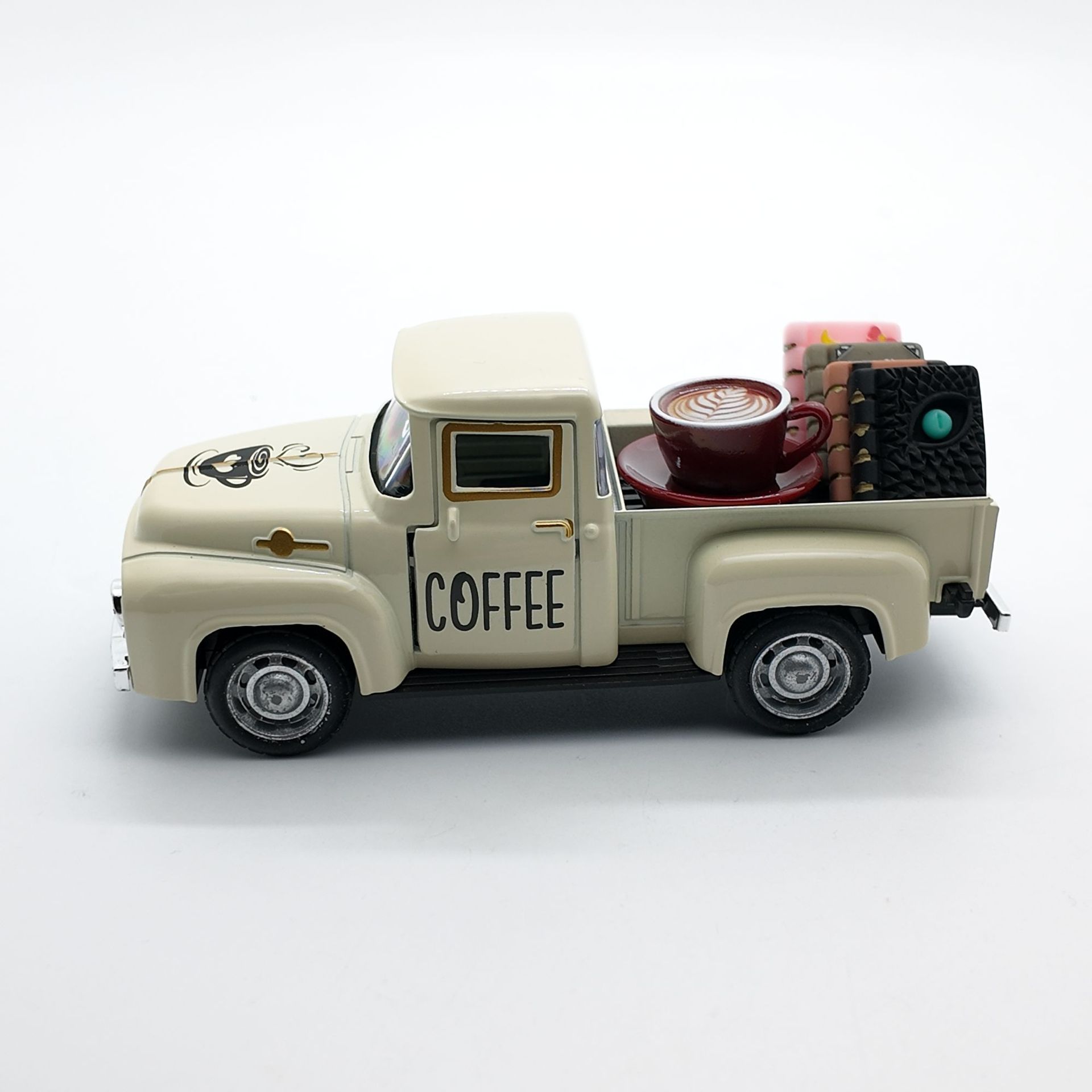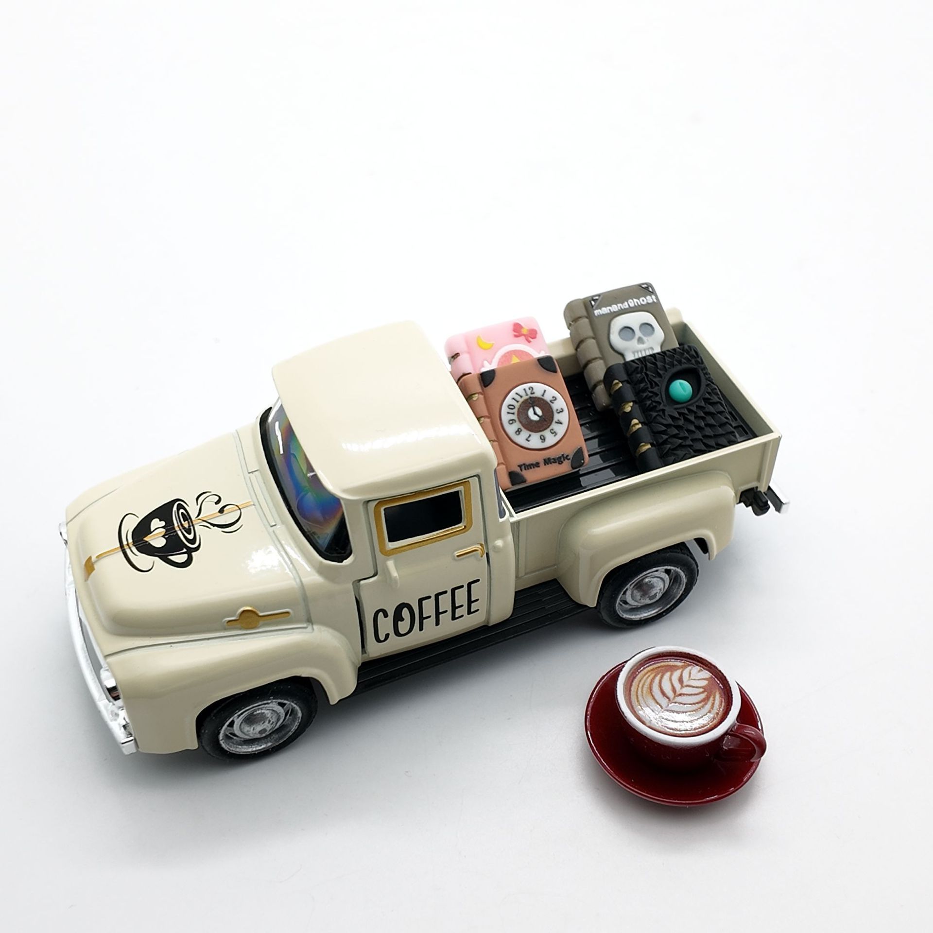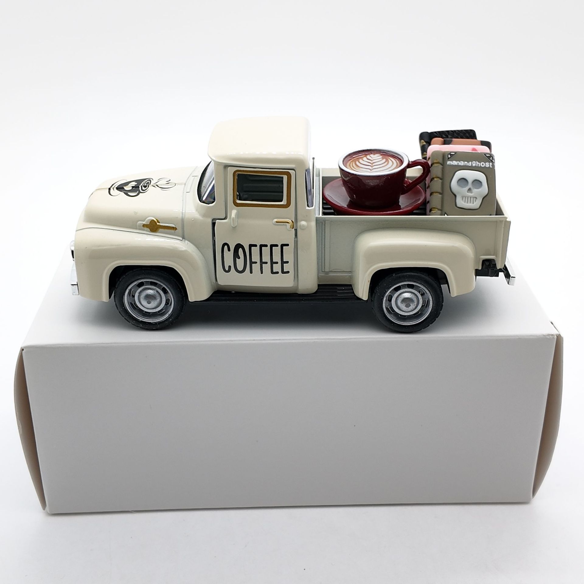 • 오프화이트 픽업트럭 12.5cm + 커피 1세트 + 책 4권(밀봉된 흰색 상자)