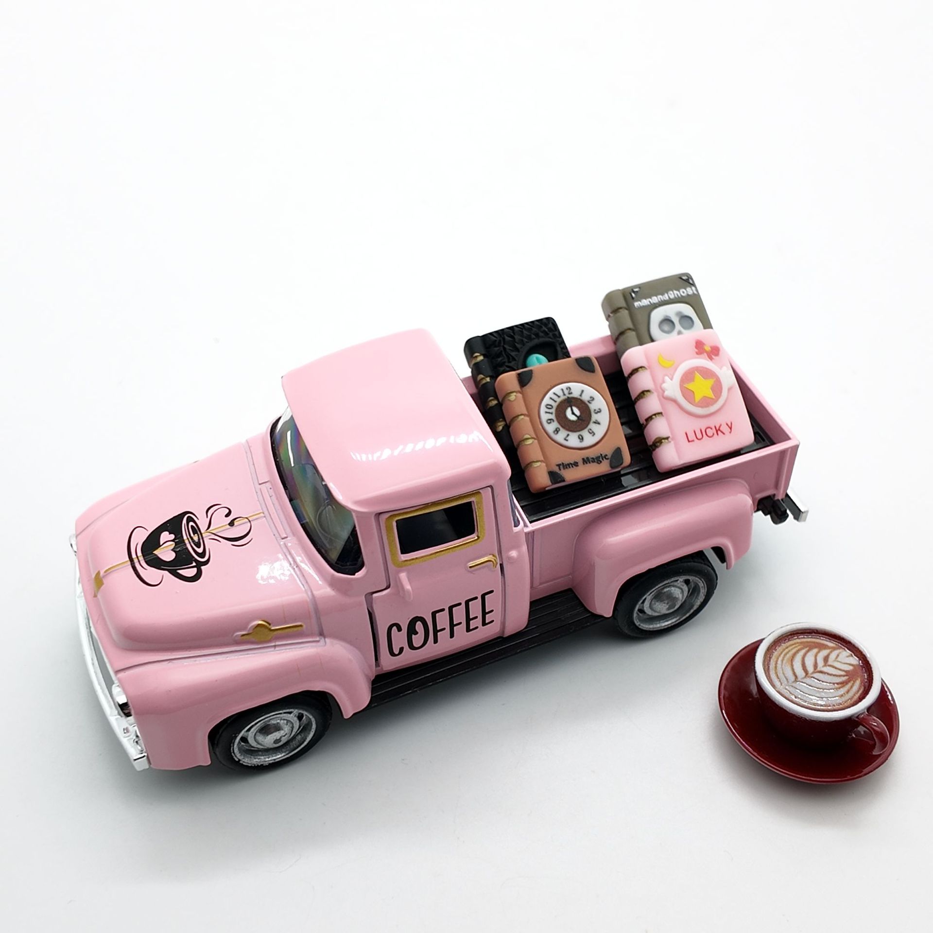 • 핑크 픽업트럭 12.5cm + 커피 1잔 + 책 4권 (밀봉된 흰색 상자)